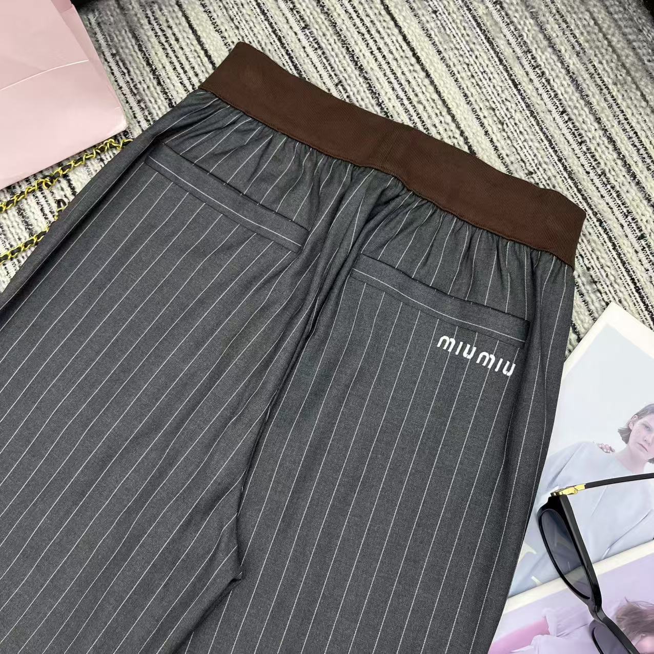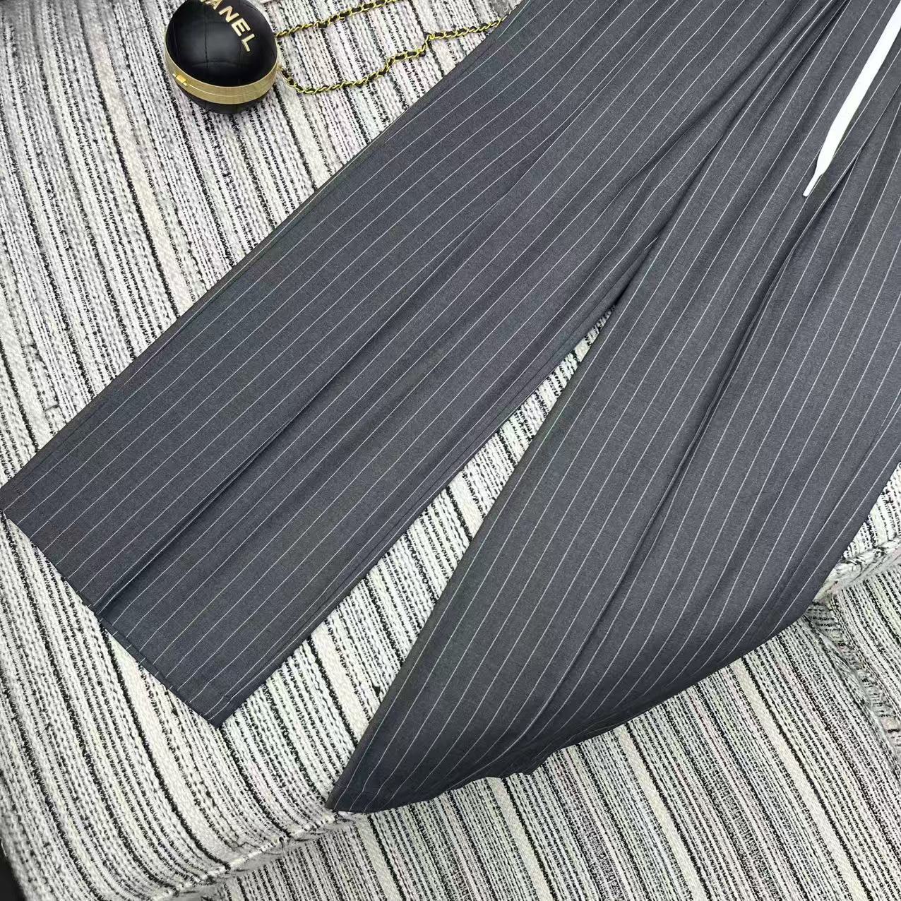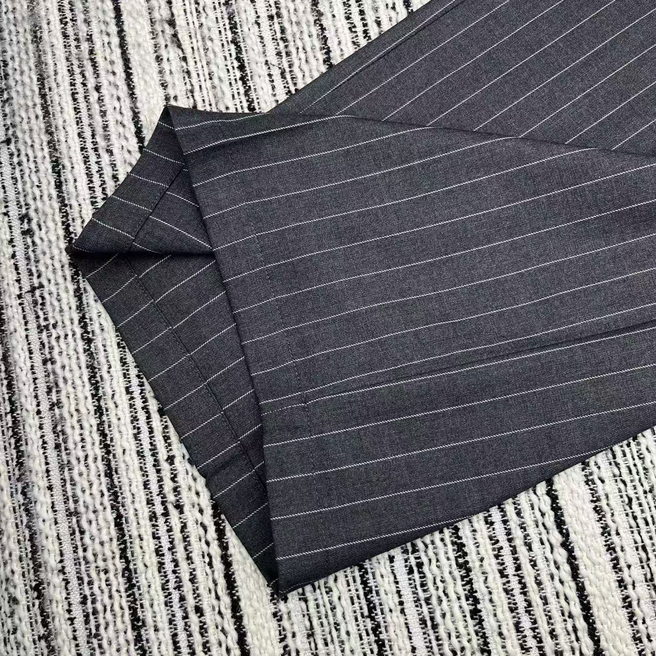 Details: Highly recommended early autumn spliced color-blocking ribbed elastic waist striped suit straight-leg pants with embroidered letters, available in S, M, L