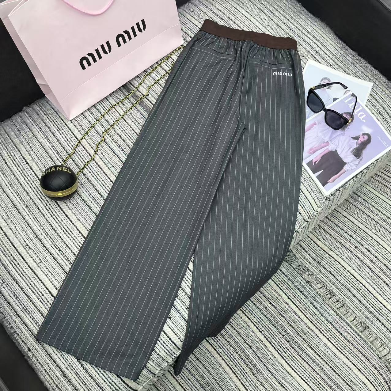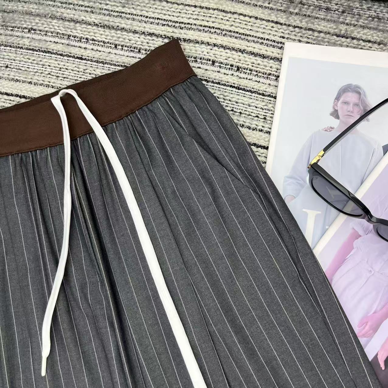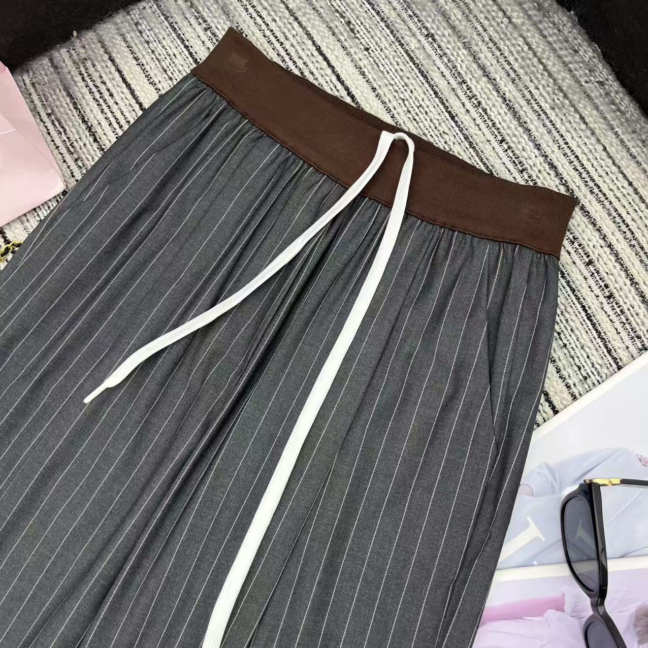 Details: Highly recommended early autumn spliced color-blocking ribbed elastic waist striped suit straight-leg pants with embroidered letters, available in S, M, L