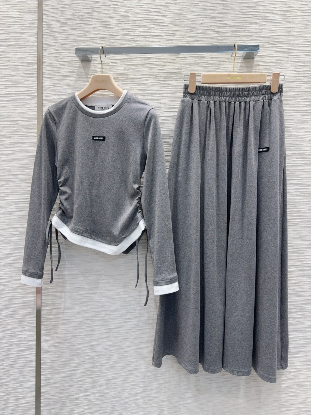 Details: FW new irregular two-piece set consisting of a top and a long skirt, featuring a drawstring and logo, available in SML
