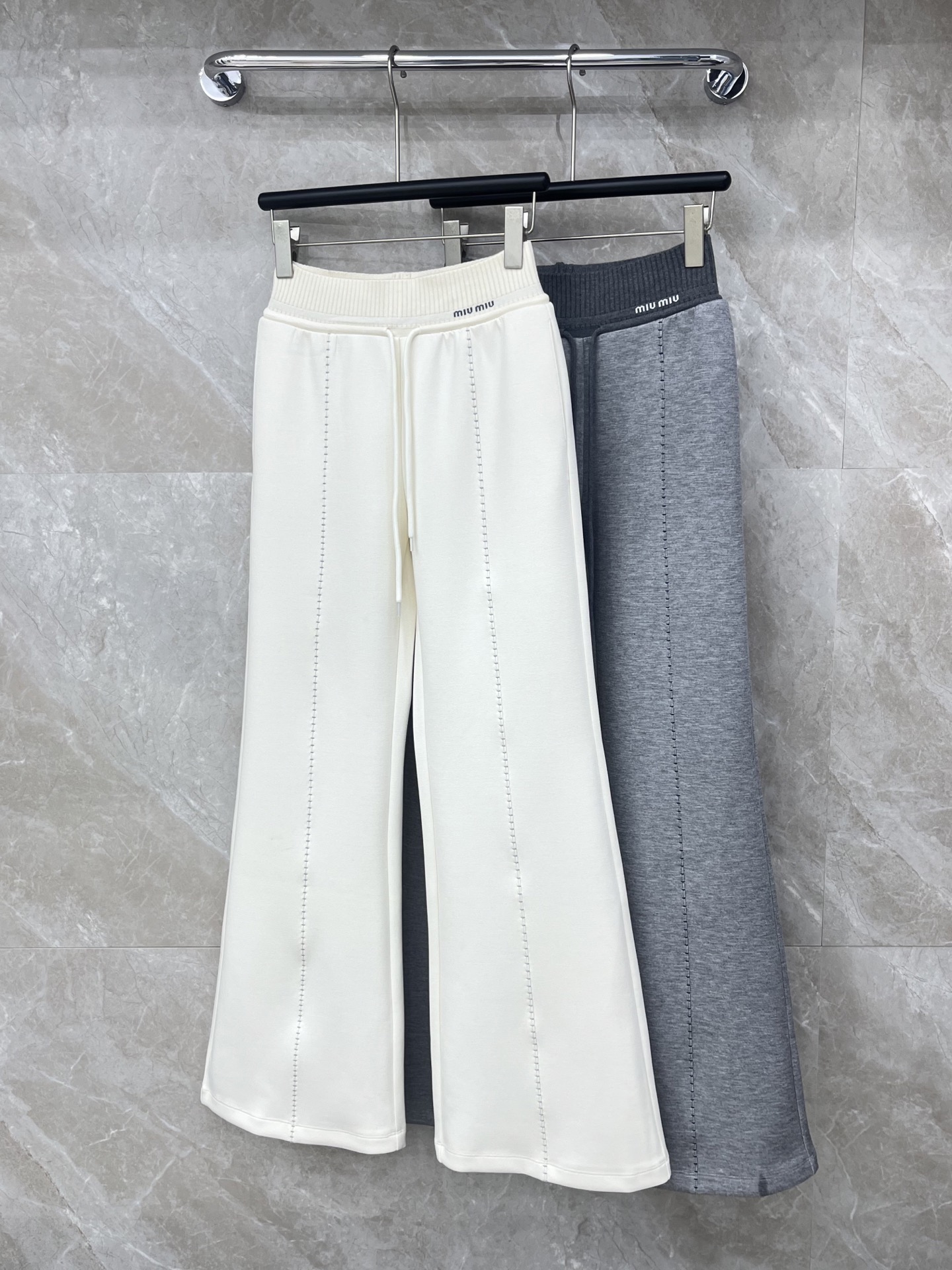 Details: Designer Flared Drawstring Casual Pants, Minimalist French Elegance, Slim and Tall, High-Quality Elastic Fabric.