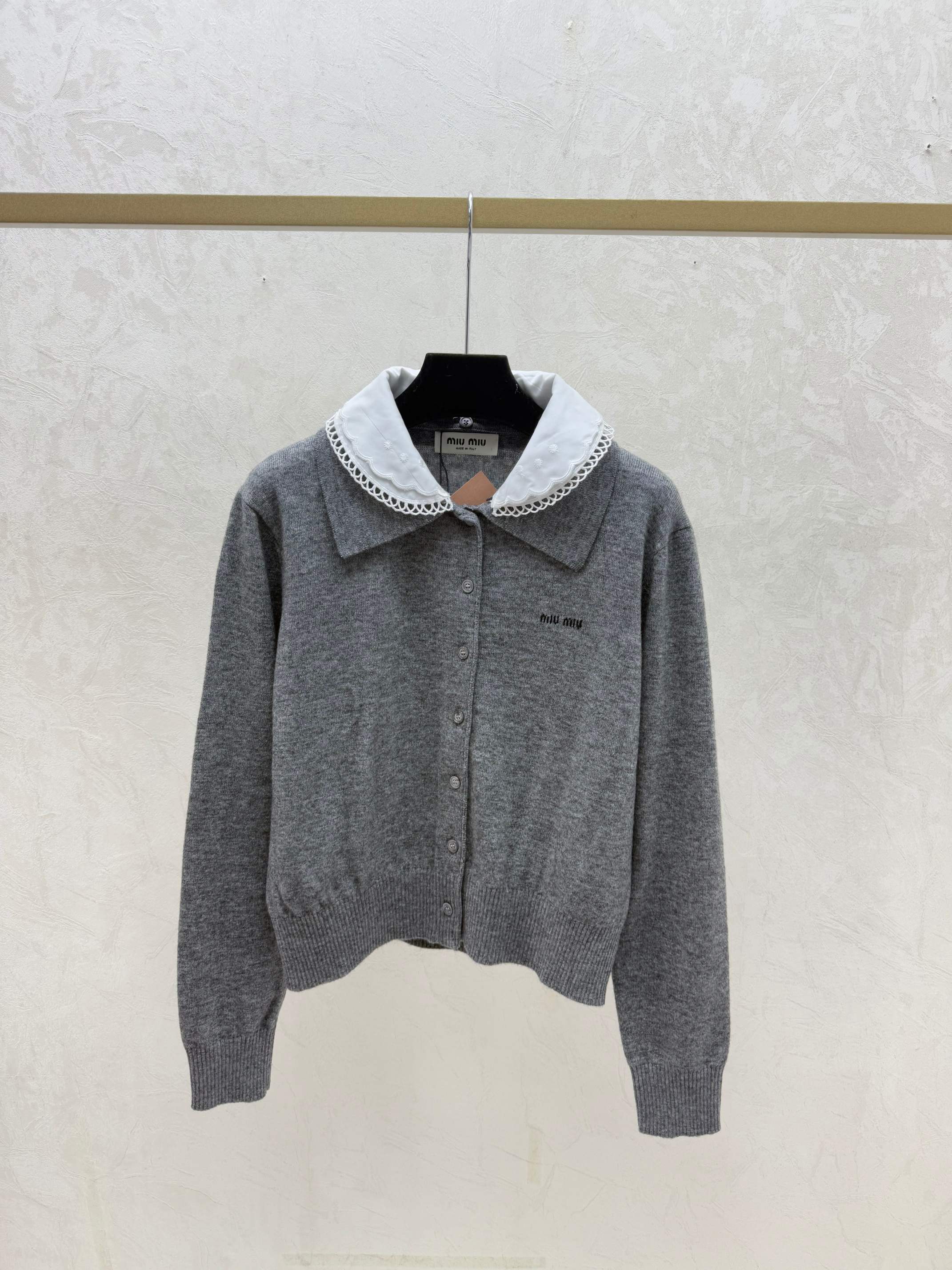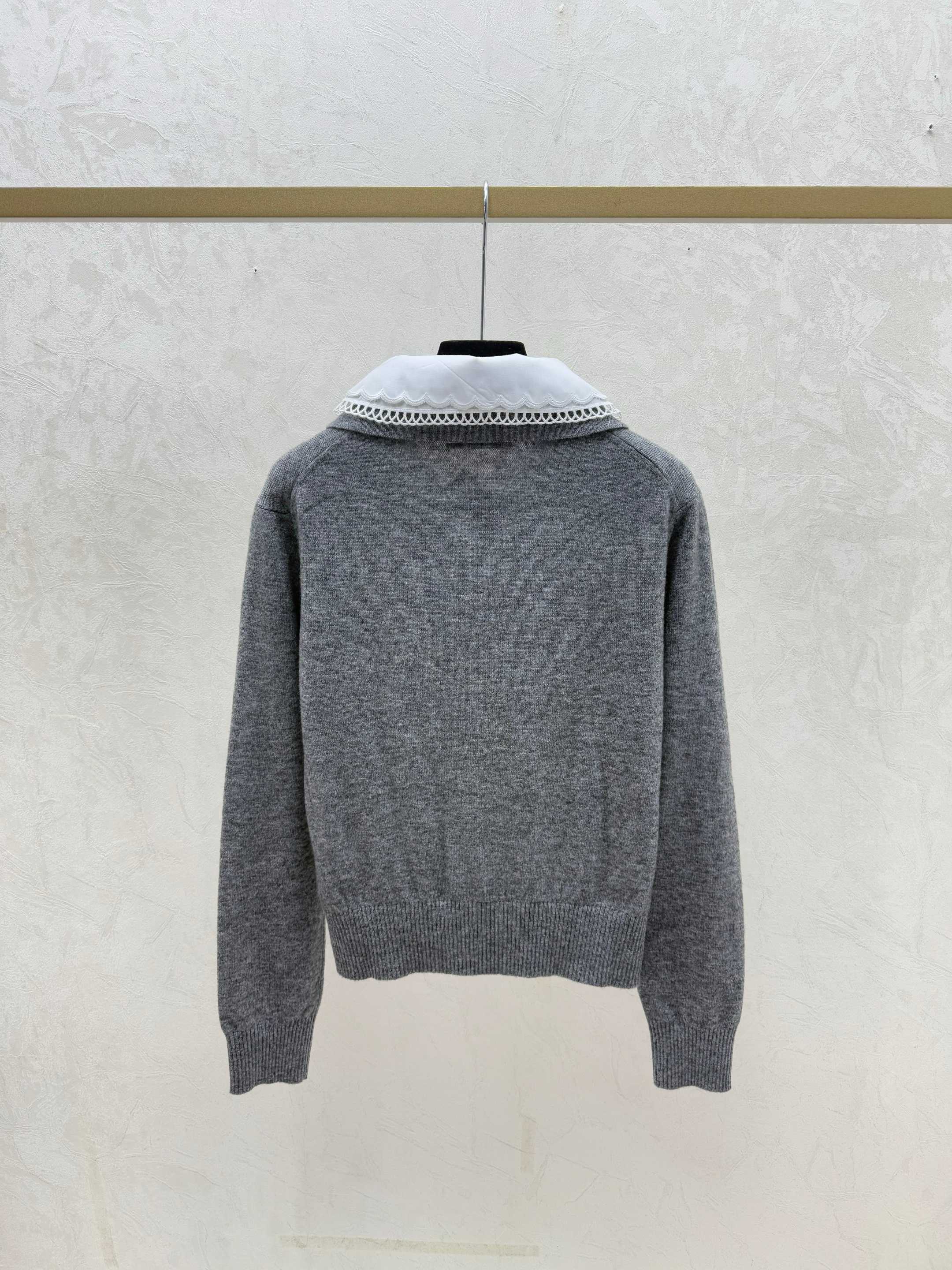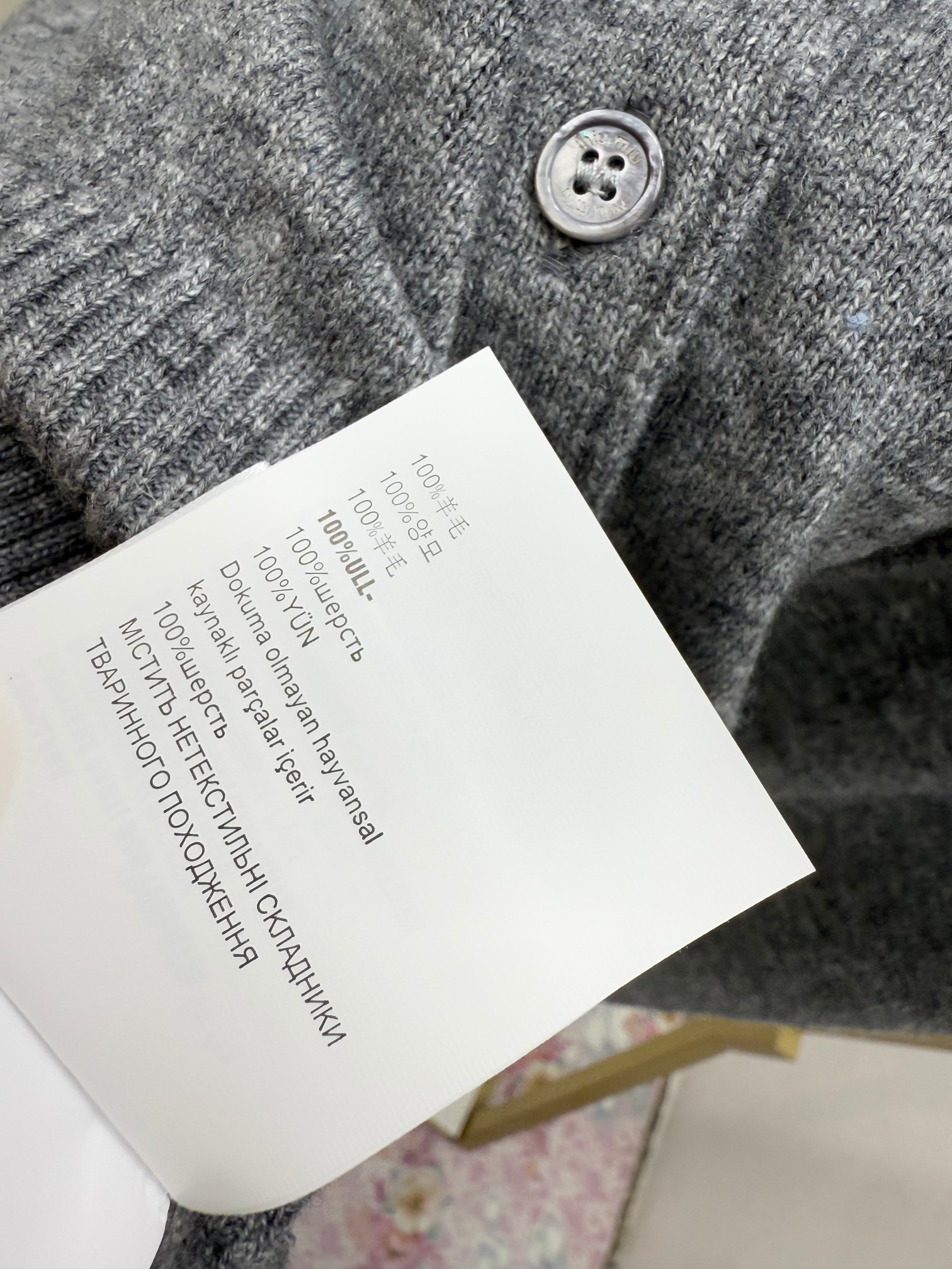 Details: Autumn new gray color block lapel simple knitted long sleeve cardigan, sizes 36, 38, 40.