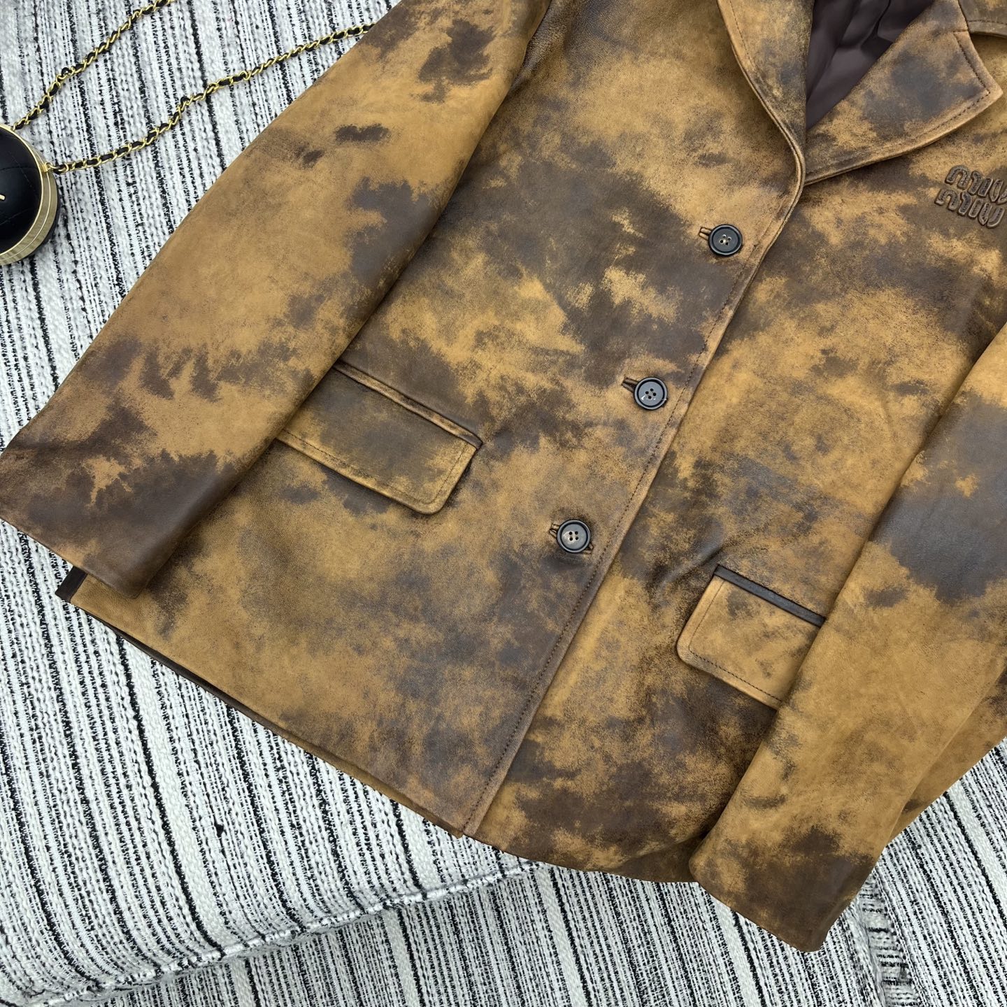Details: Highly recommended for early autumn and winter: Lapel silhouette suit, lambskin, gradient, with letter patch embroidery, available in S, M, L sizes.