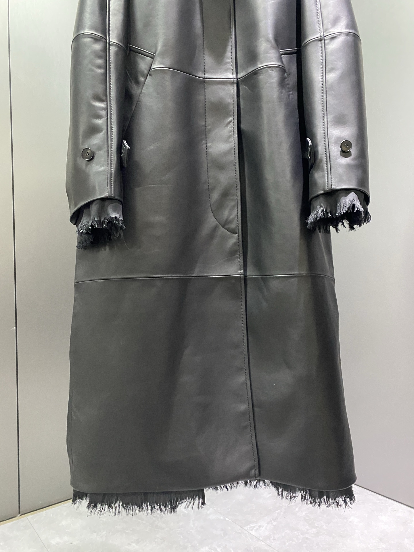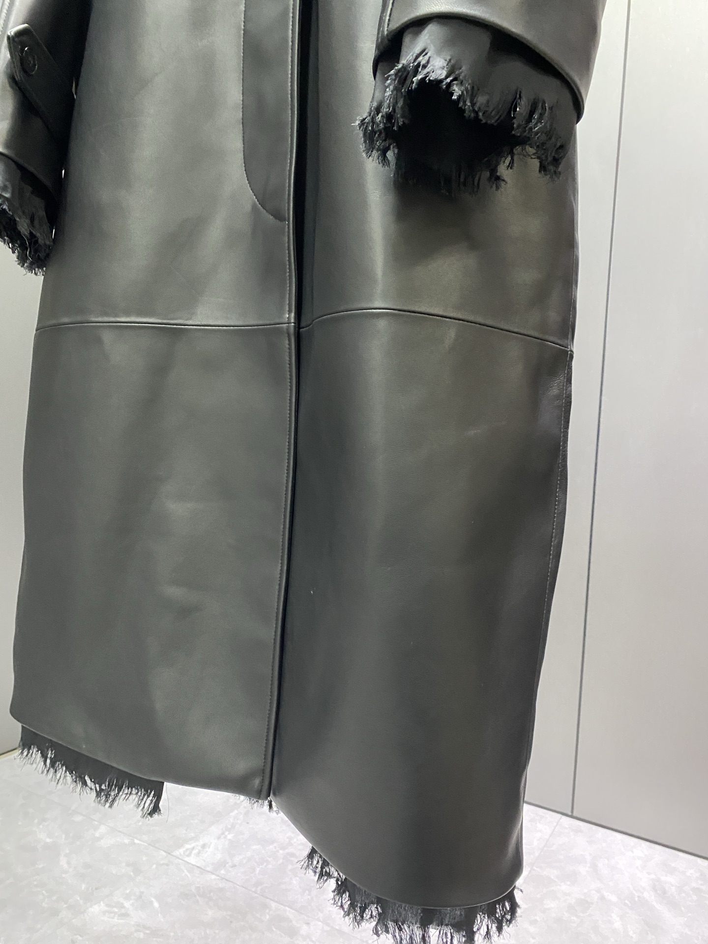 Details: Women s Long Sheepskin Trench Coat, Chest Embroidery