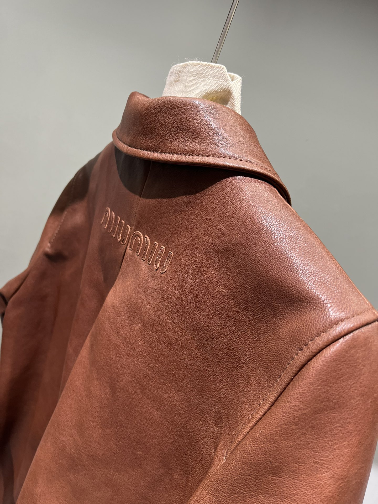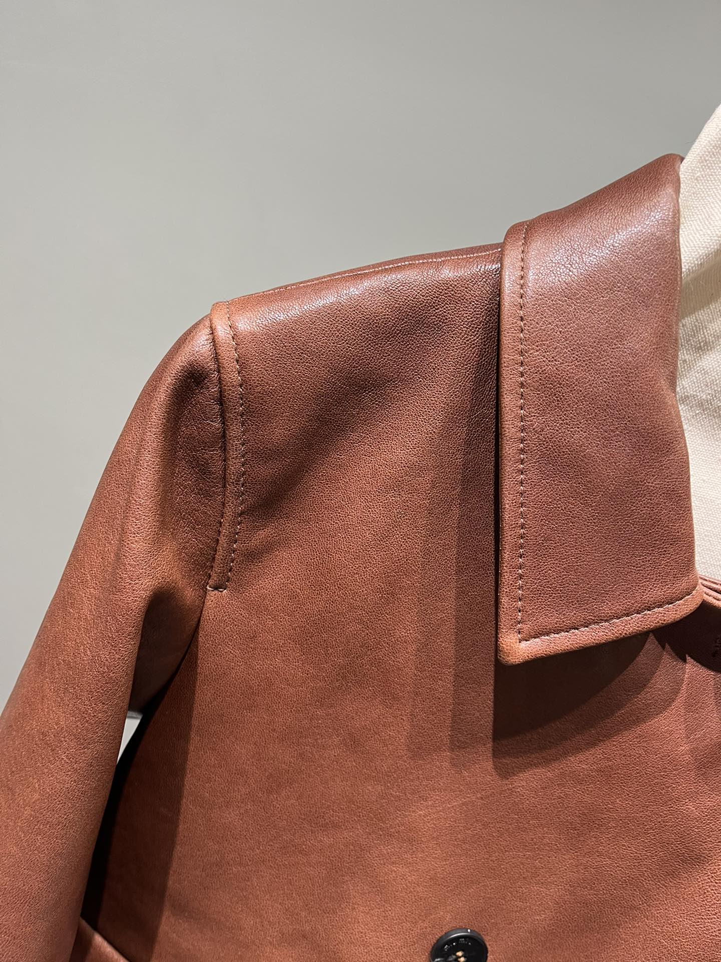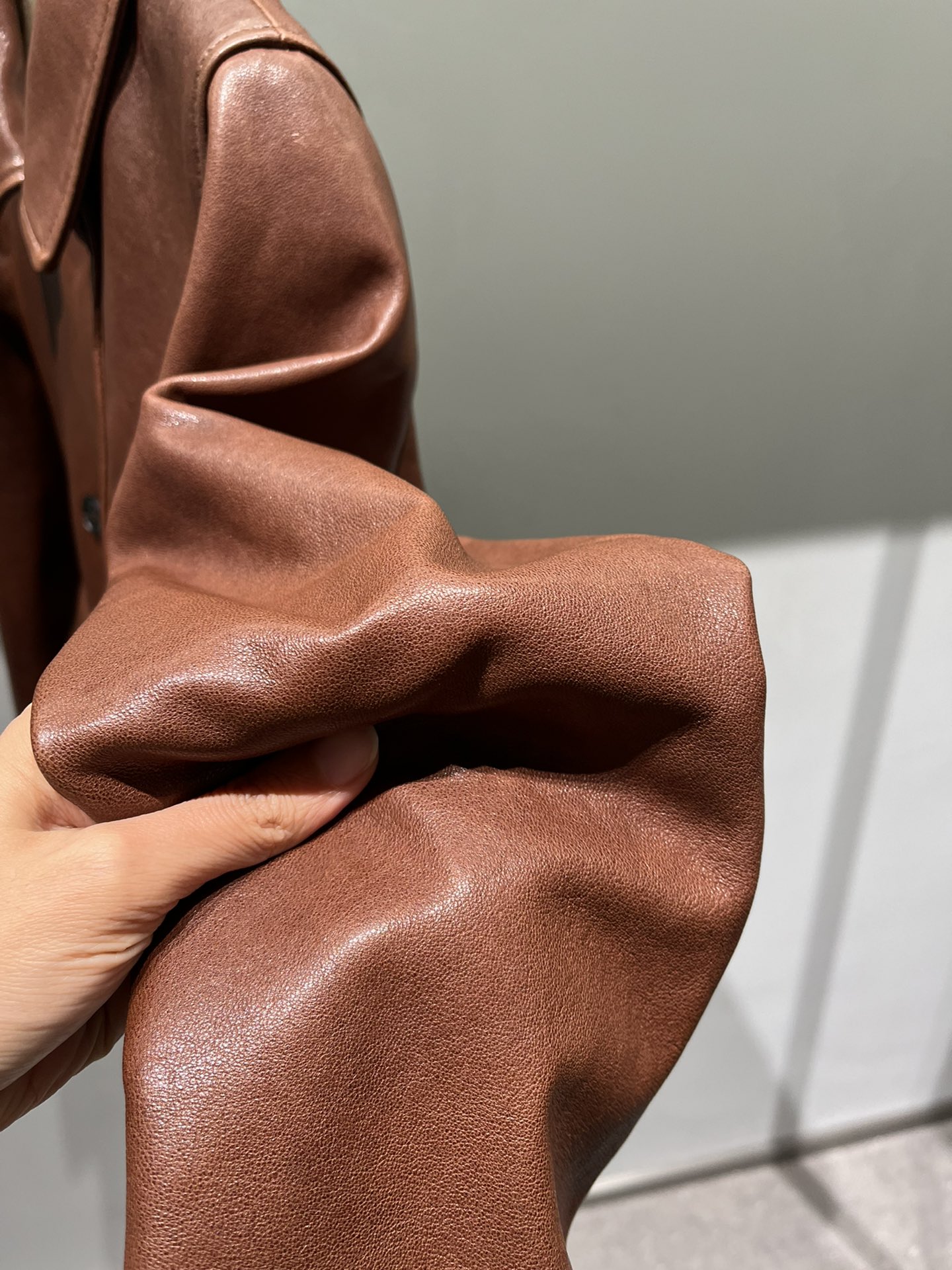 Details: Oil-wax sheepskin jacket with natural marks, good texture