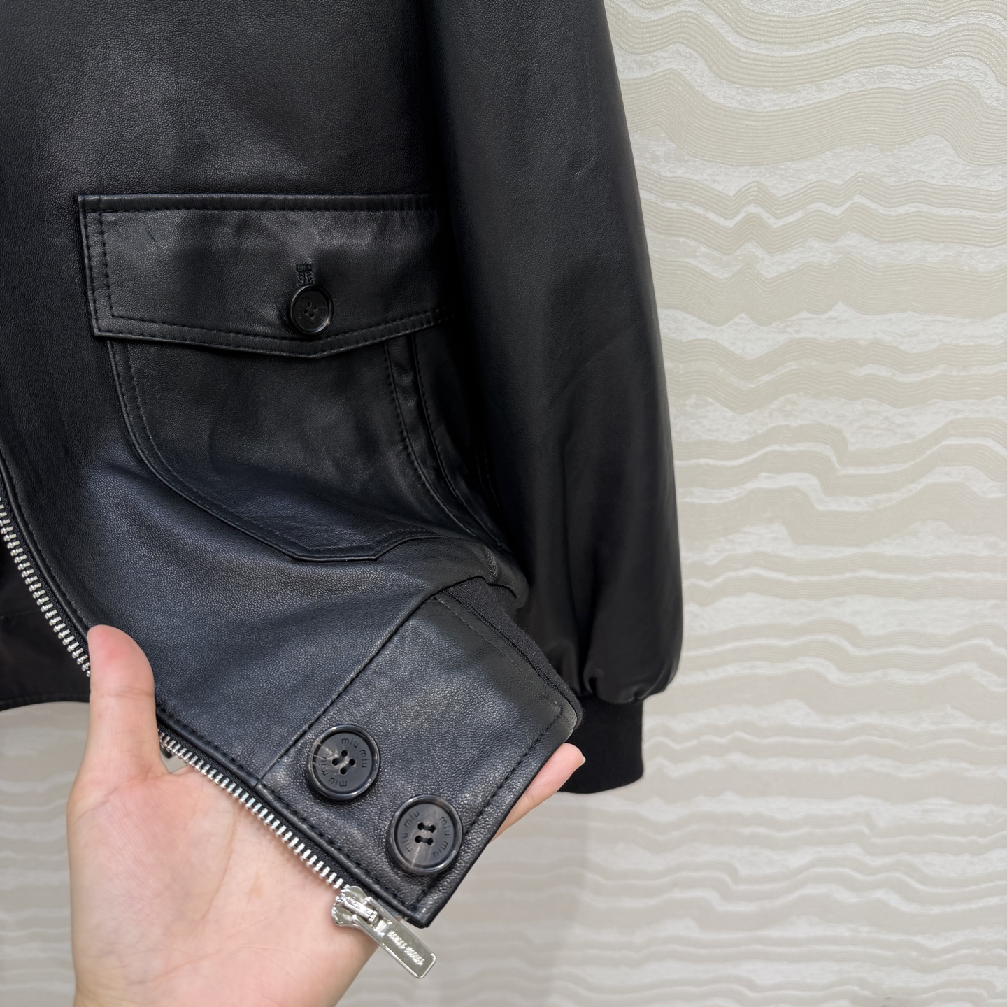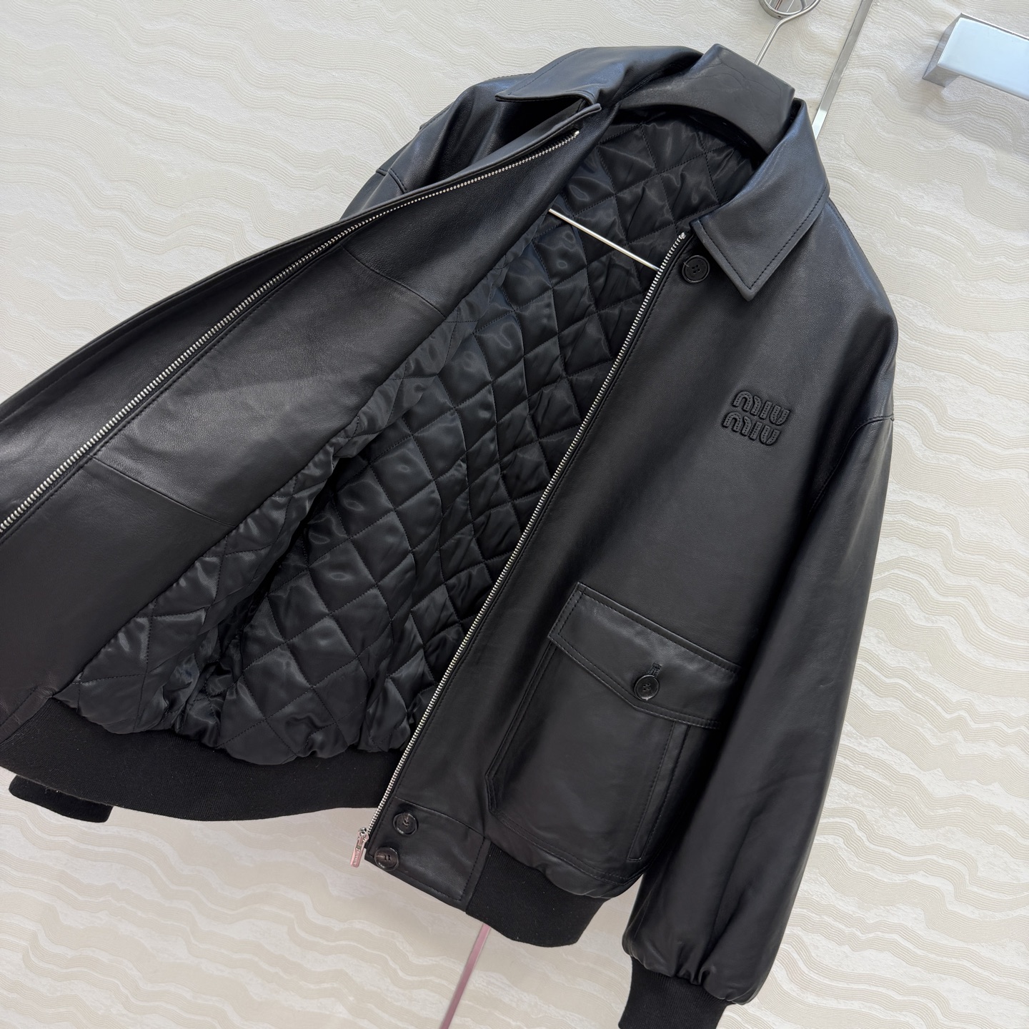 Details: Vintage lambskin cotton jacket, classic motorcycle silhouette, warm and slimming, one color, three sizes. High-end custom, fine workmanship