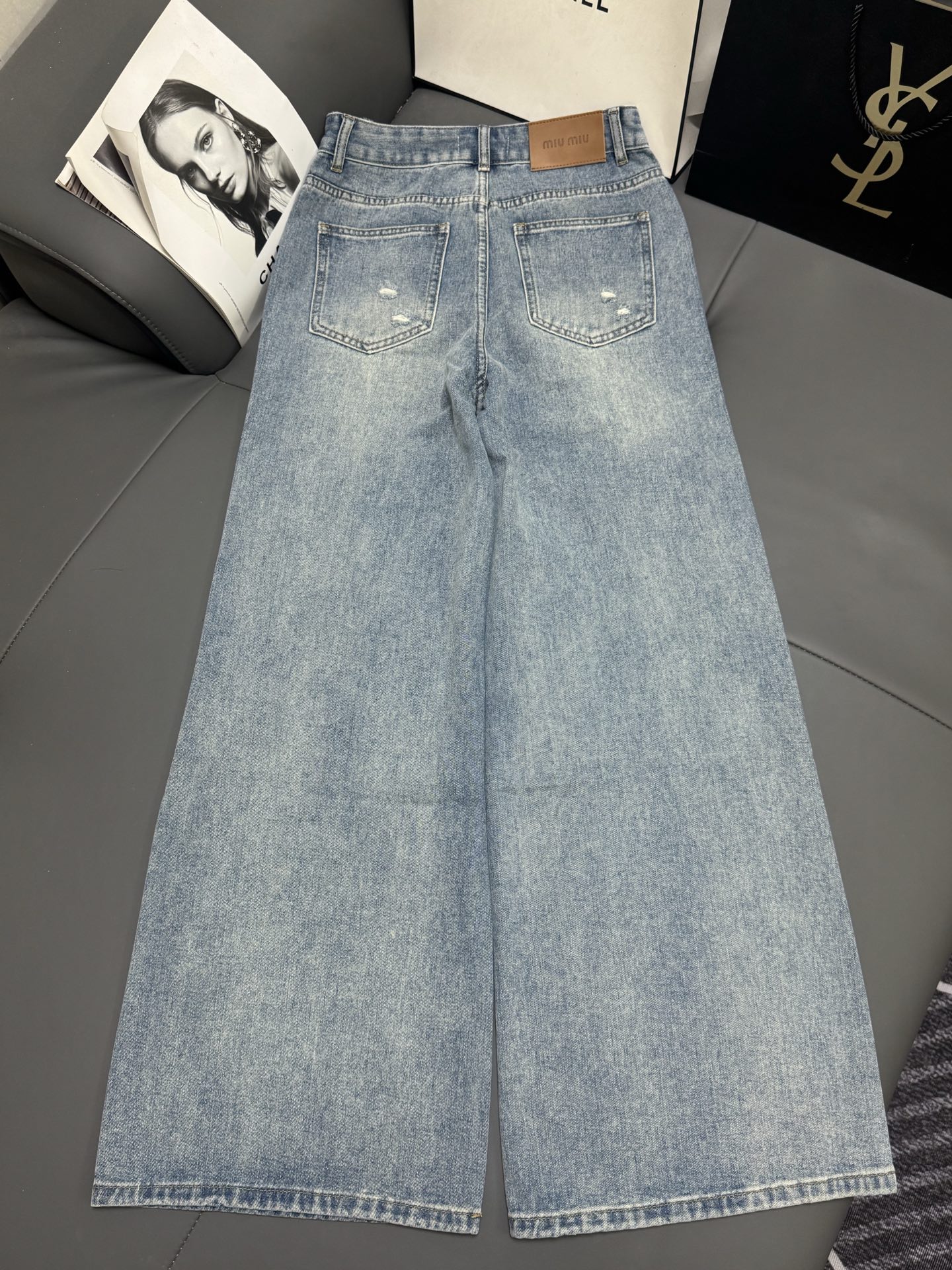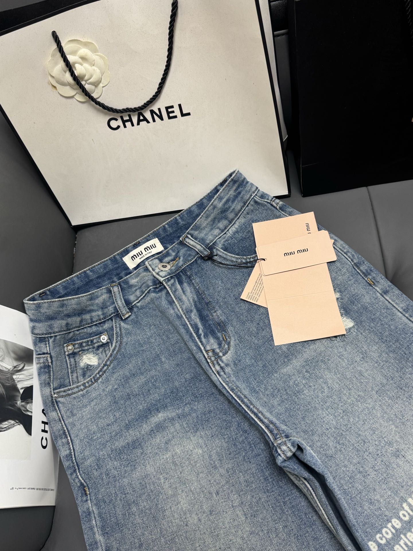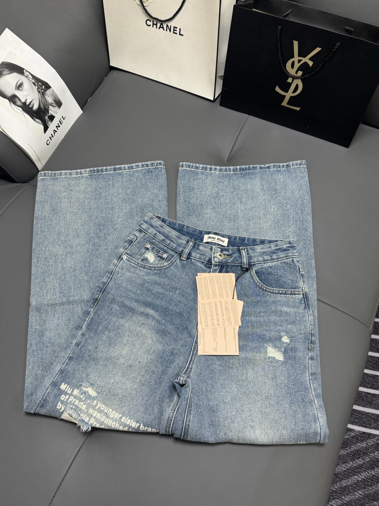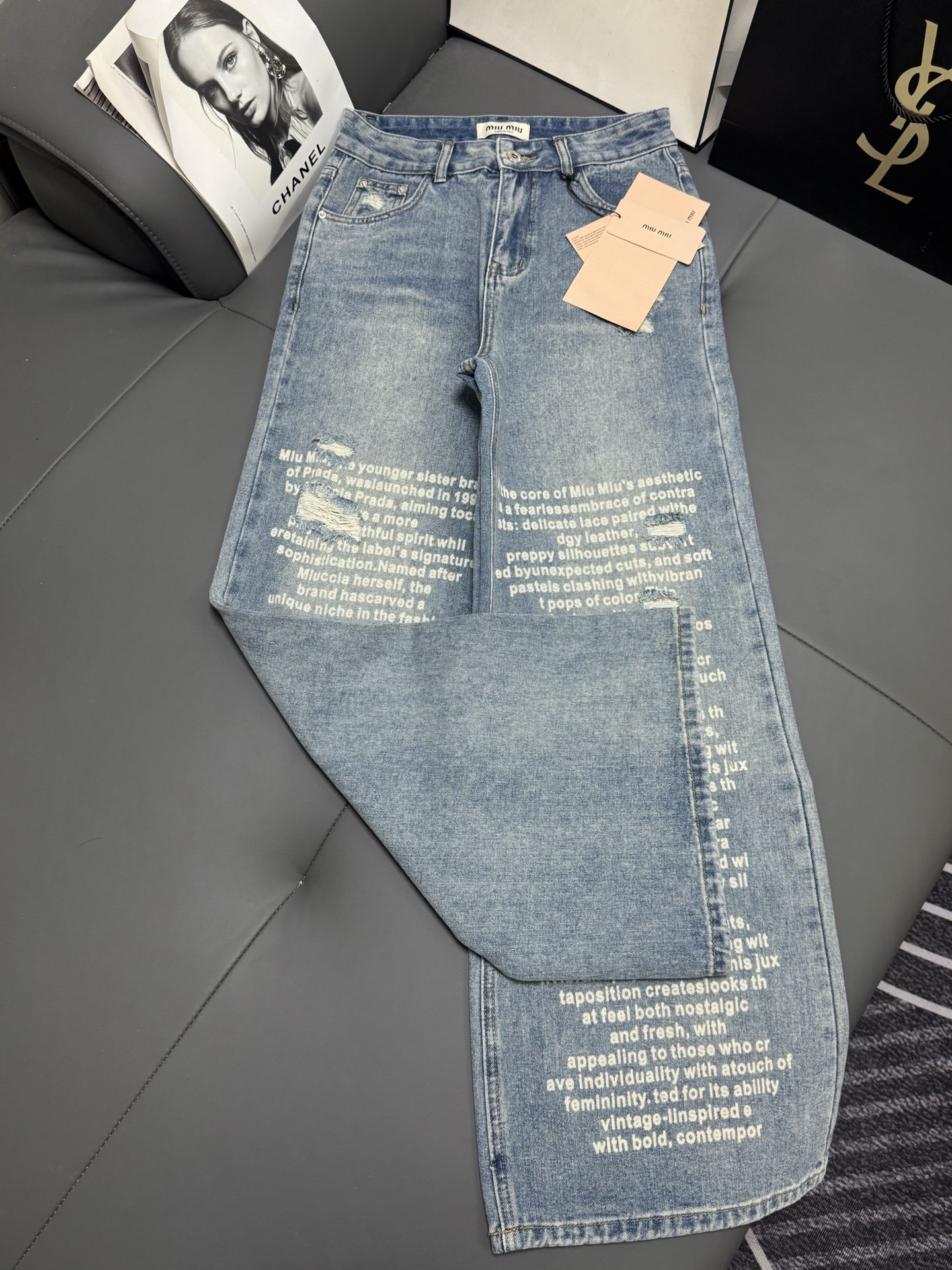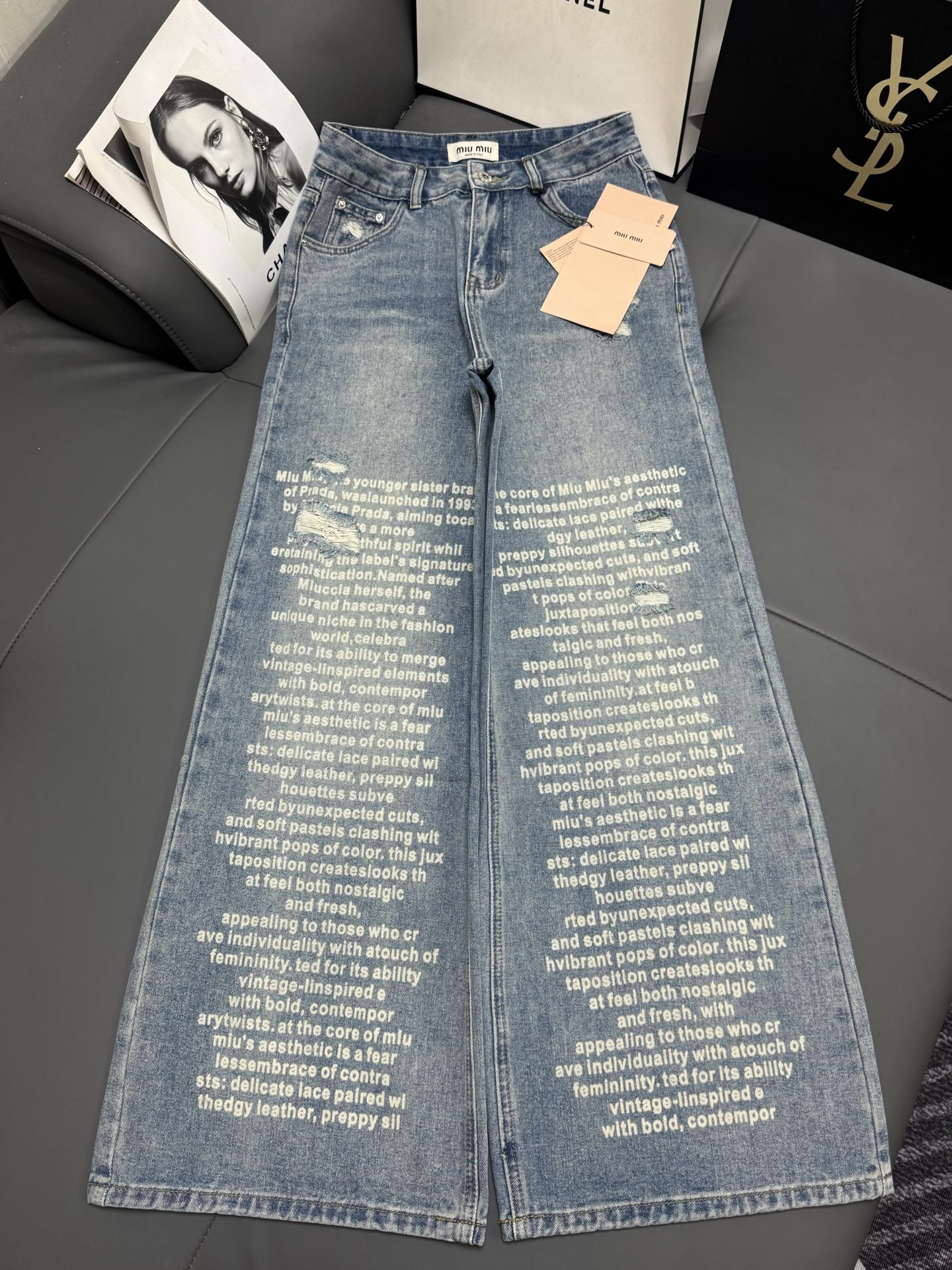 Details: Fall/Winter Miu Letter Print Wide - Leg Jeans, Slimming and Comfortable, Advanced Customization, Fine Workmanship