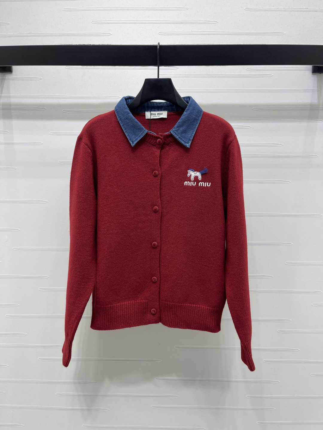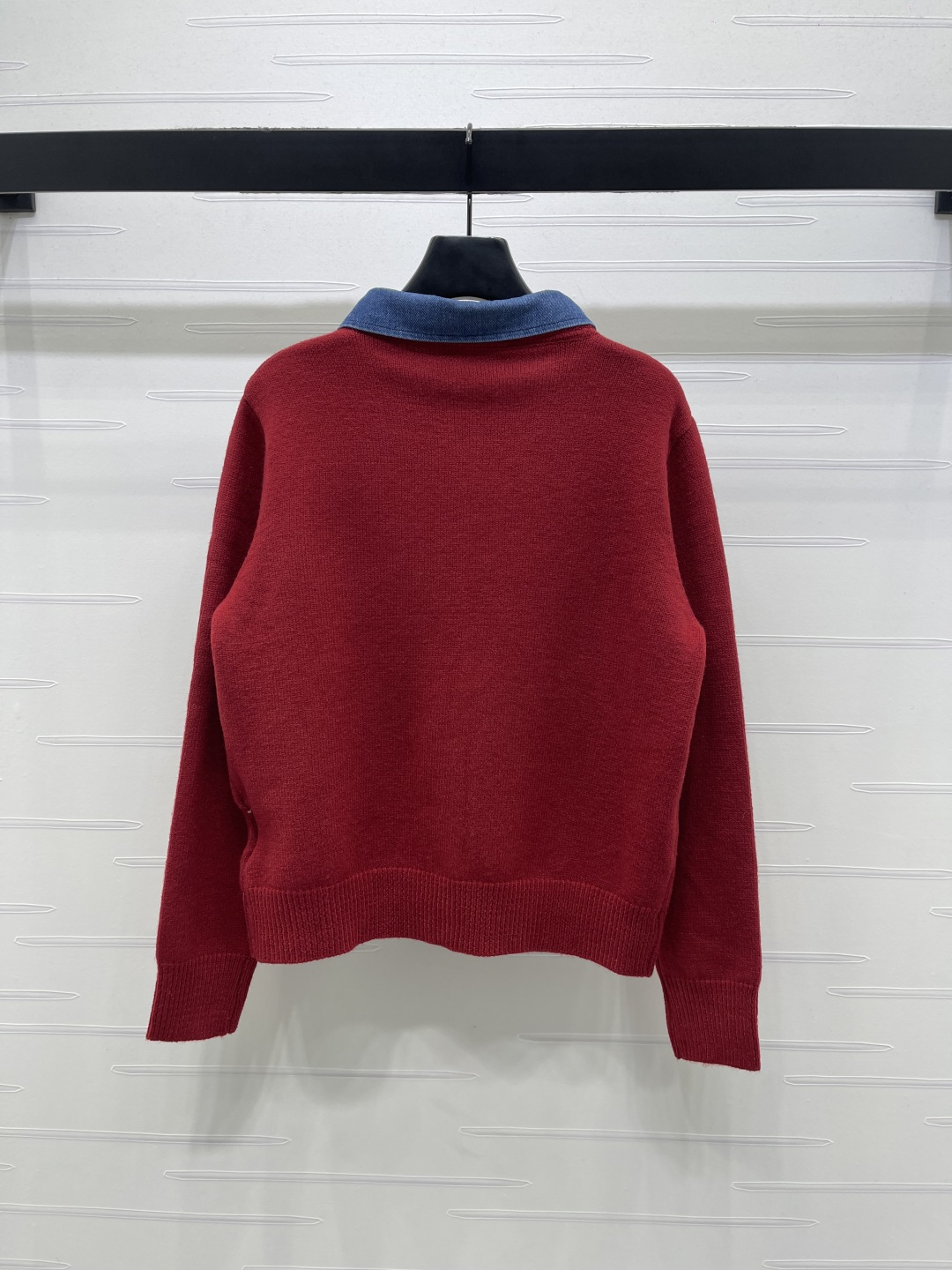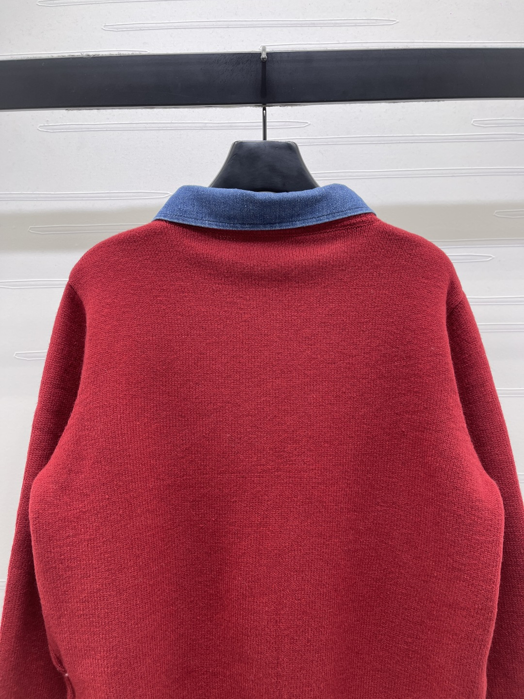 Details: Spring denim spliced knitted cardigan, with embroidered logo, fashionable and relaxing.