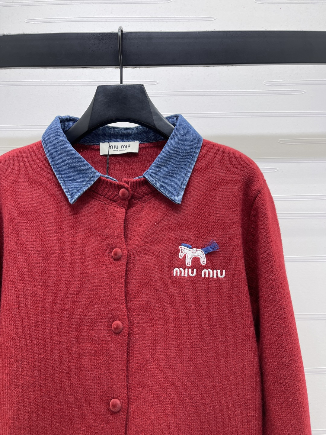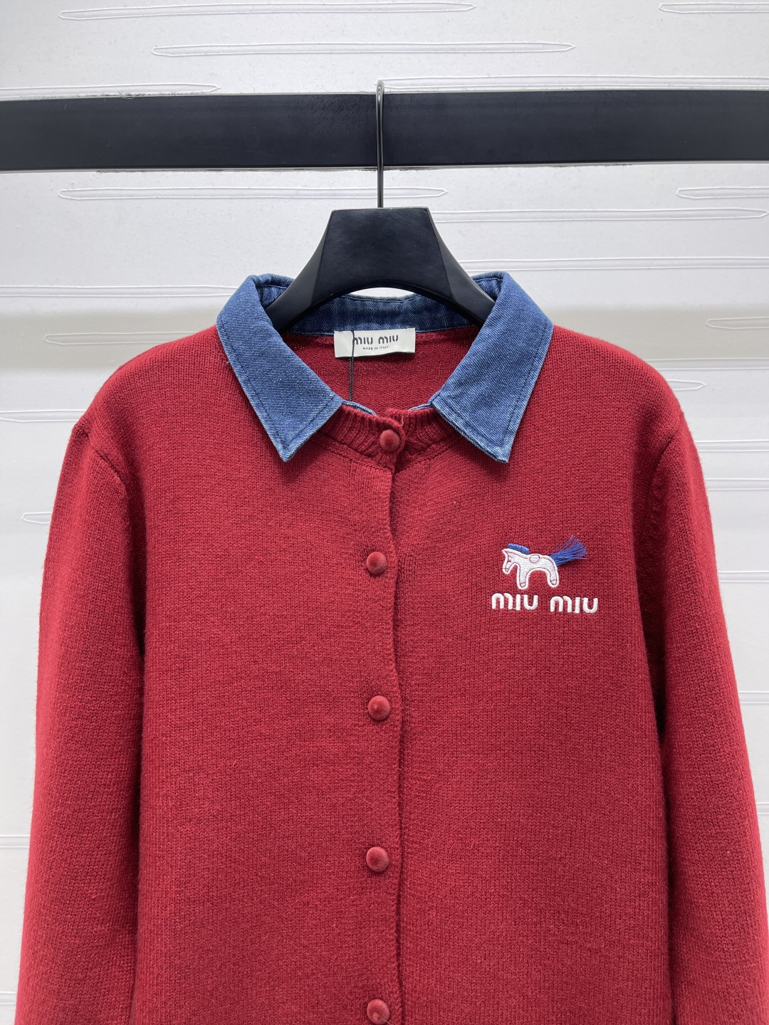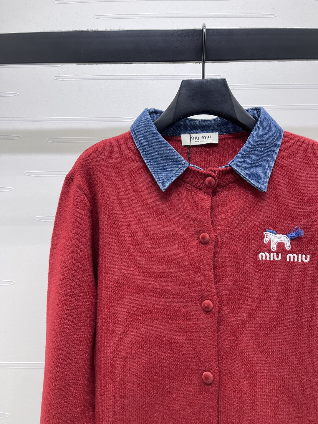 Details: Spring denim spliced knitted cardigan, with embroidered logo, fashionable and relaxing.