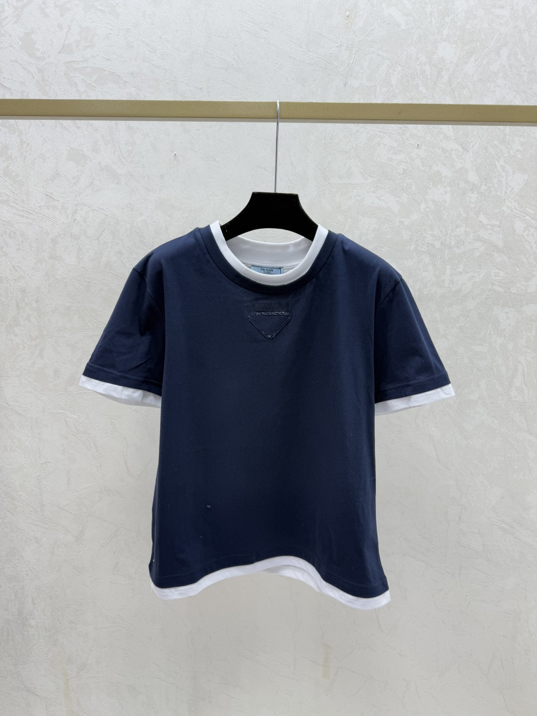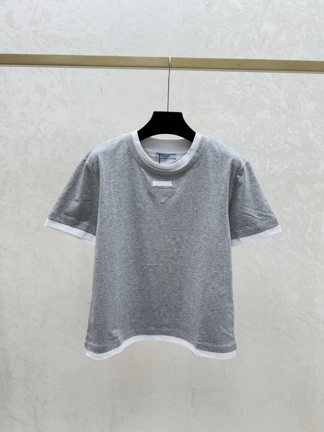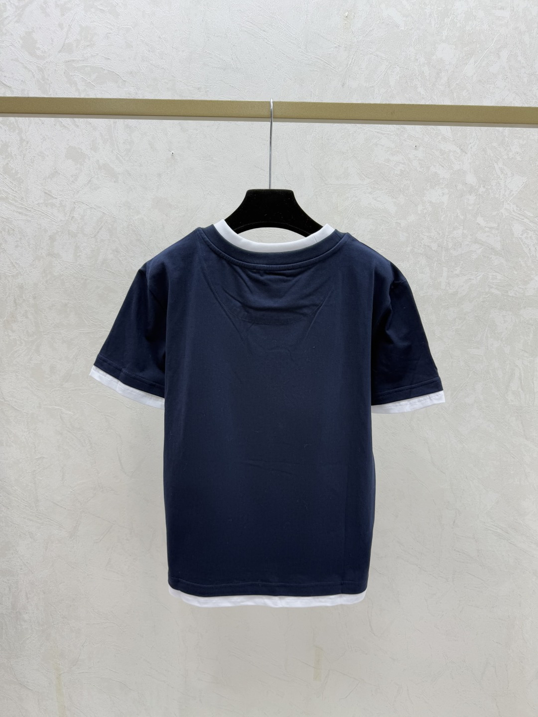 Details: Early spring new style color-blocked fake two-piece round-neck knitted short sleeves in gray and sapphire, sizes 36-40