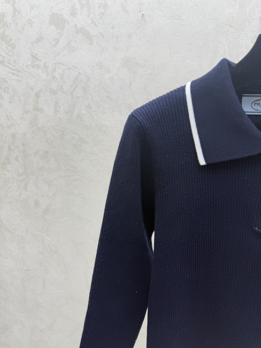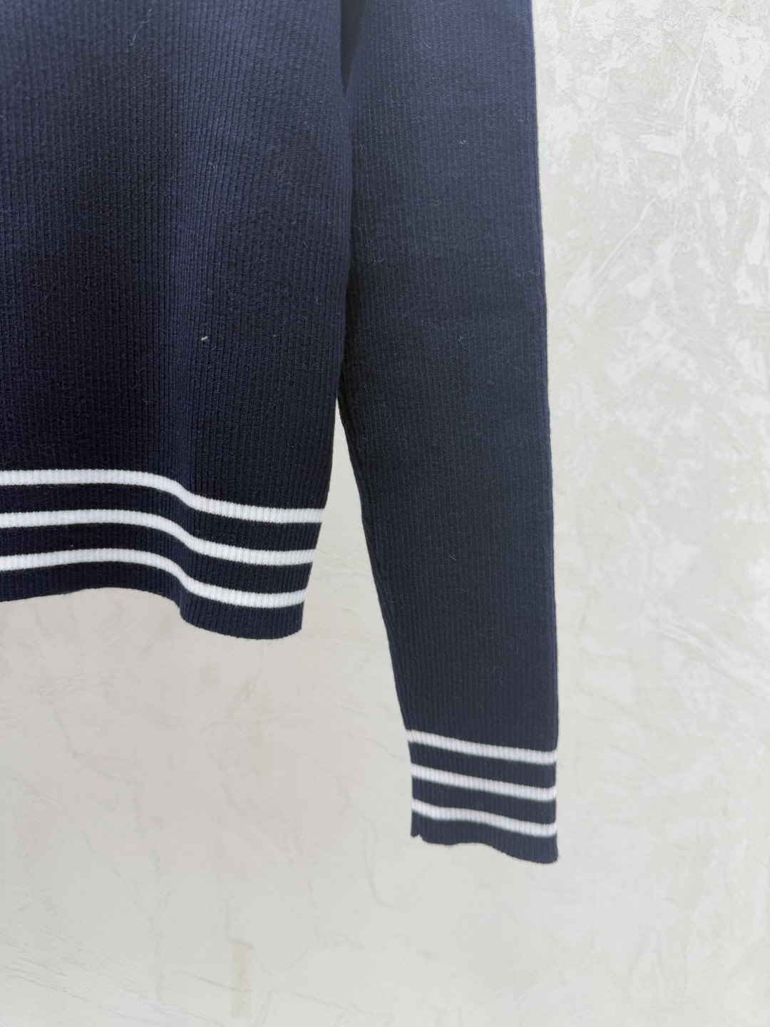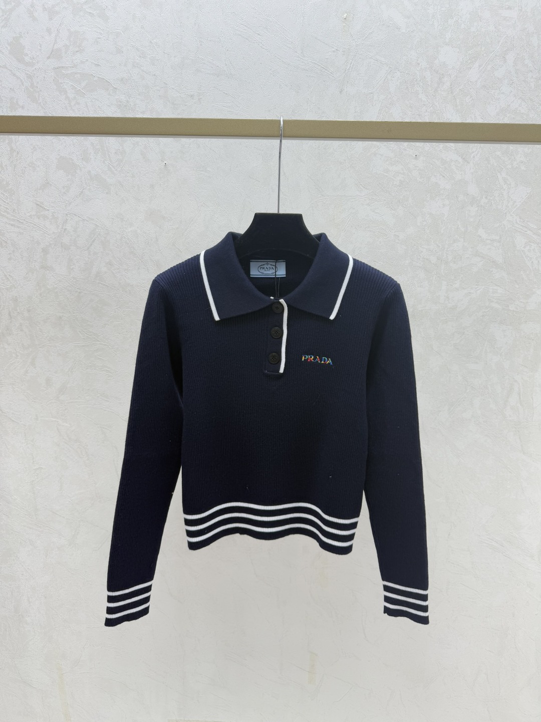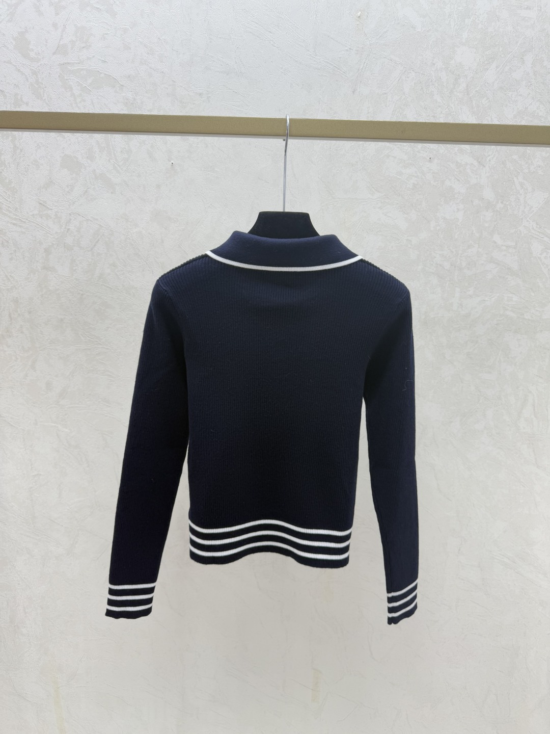 Details: Early Autumn s Fresh Look: Color-blocked Stripe Lapel Knit Long-sleeved Top in Royal Blue, Sizes 36, 38, 40. High-end Customization with Meticulous Craftsmanship Assured.