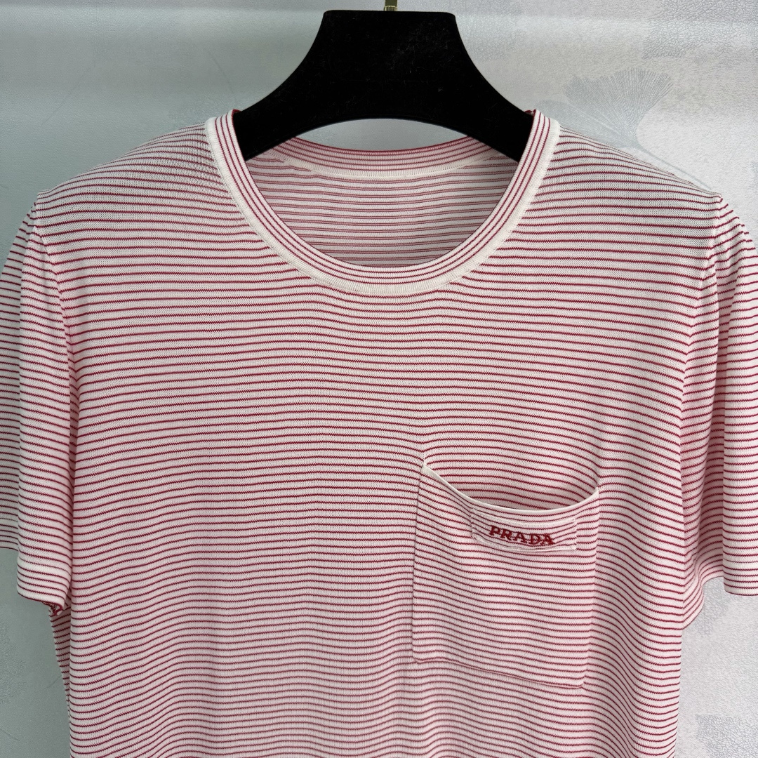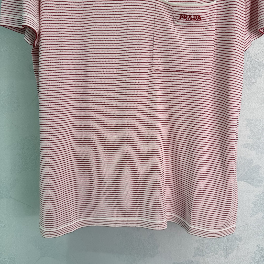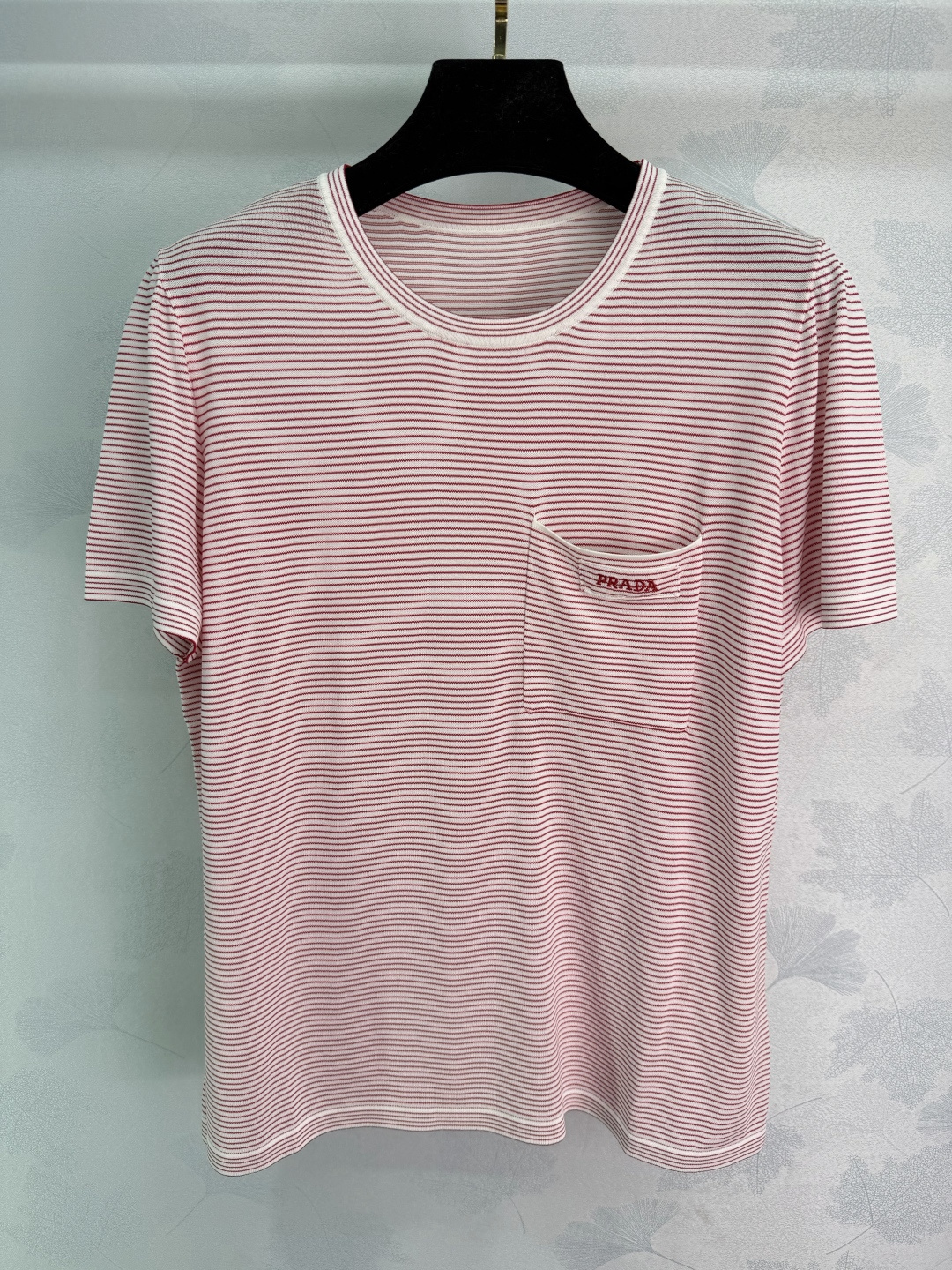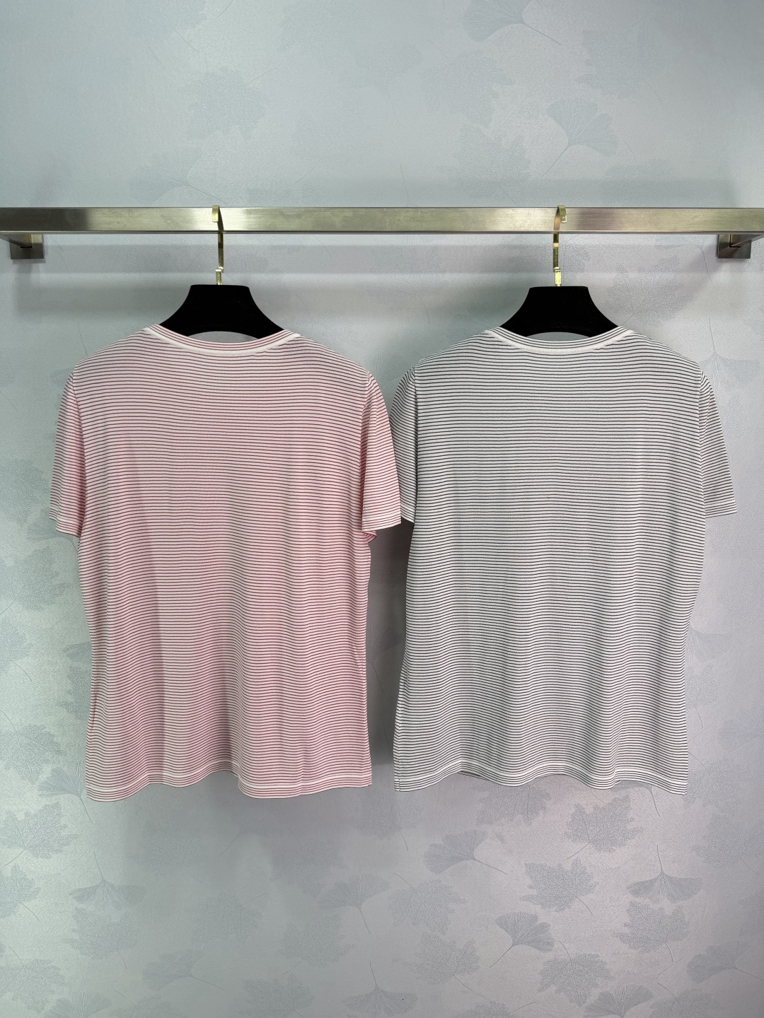 Details: Early spring striped knitted short-sleeved top made of soft yarn, available in 2 colors and 3 sizes.