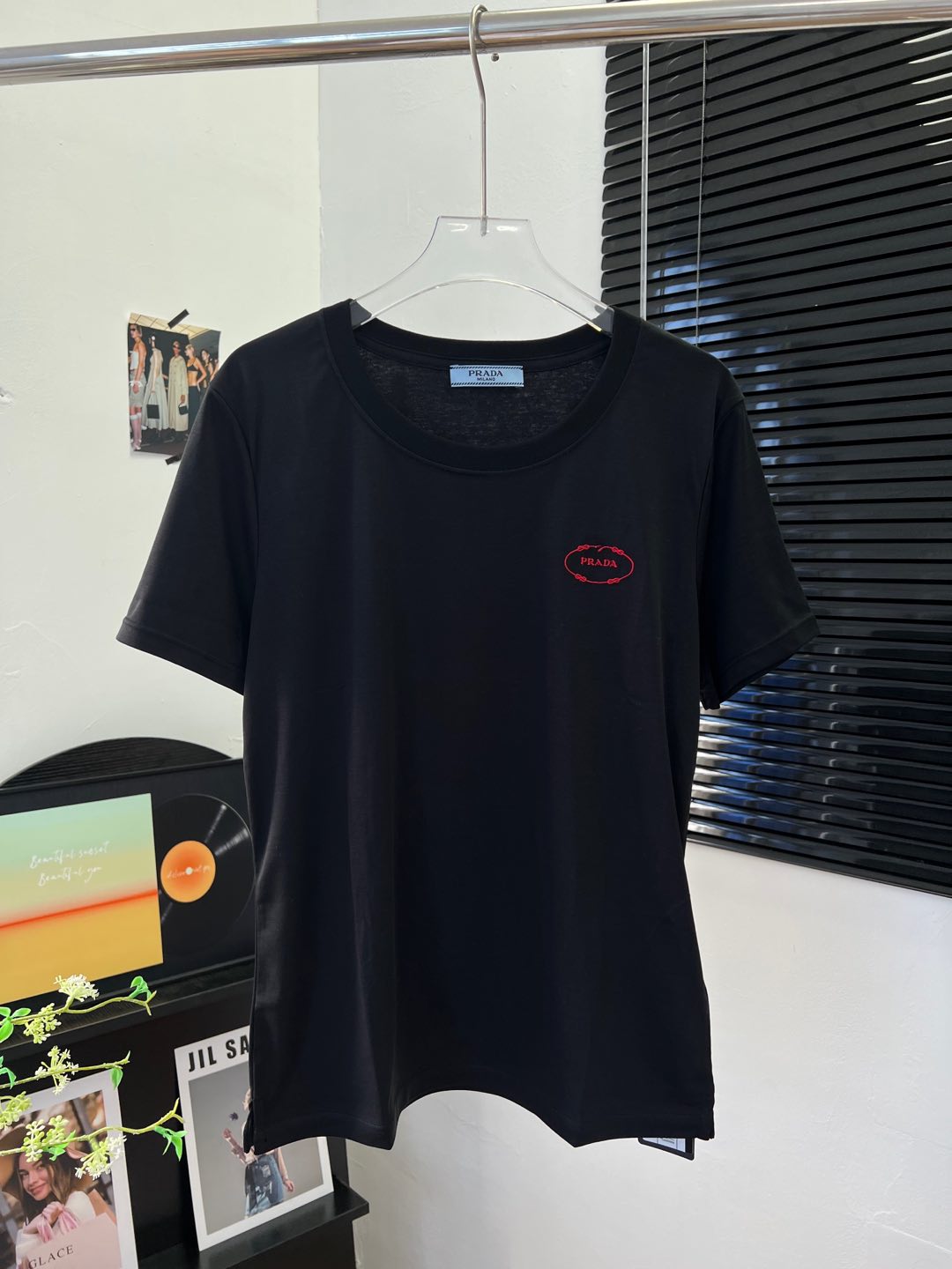 Details: Two-tone embroidered letter short-sleeve T-shirt, pure cotton fabric, soft and comfortable, slim fit.