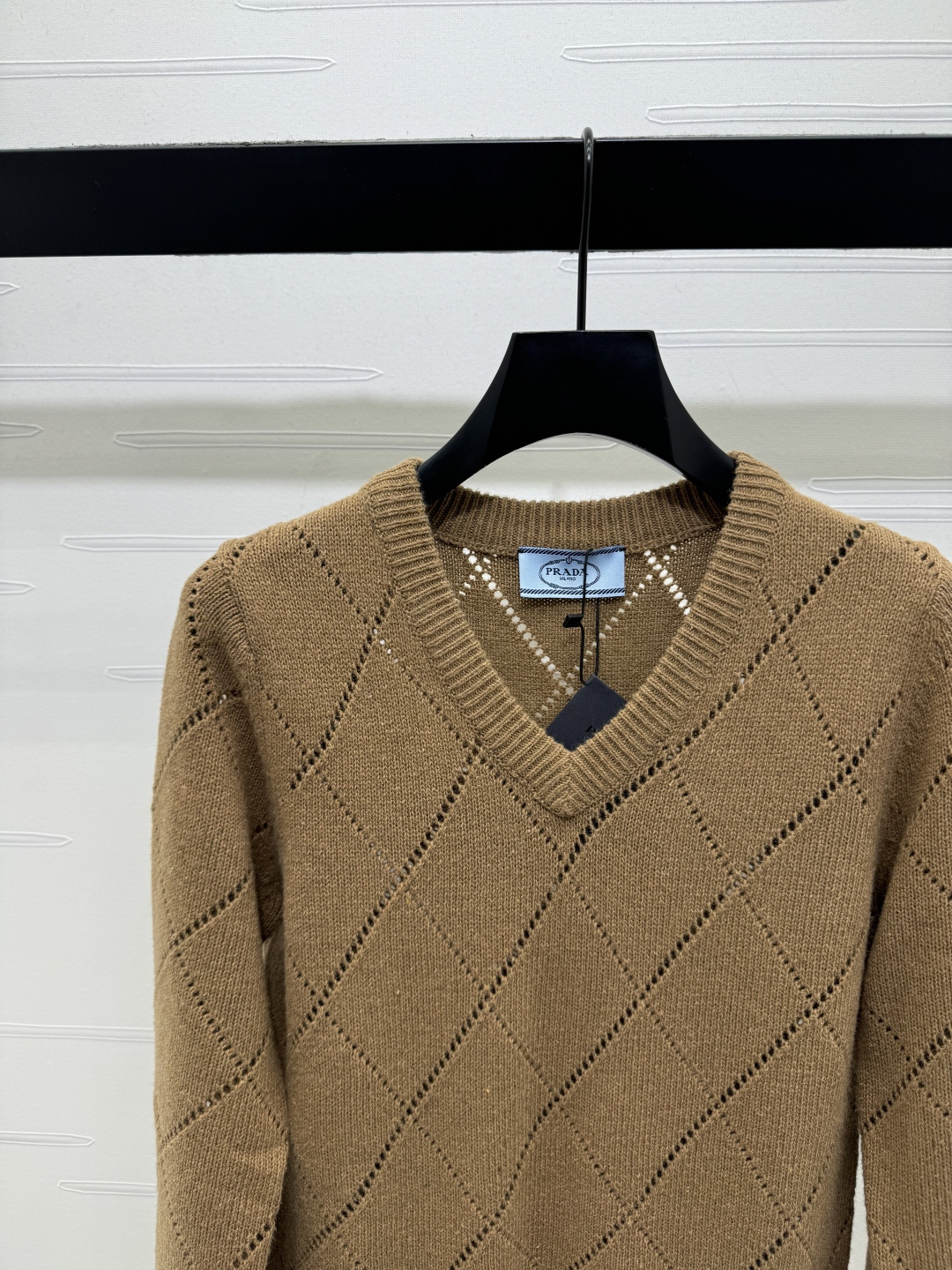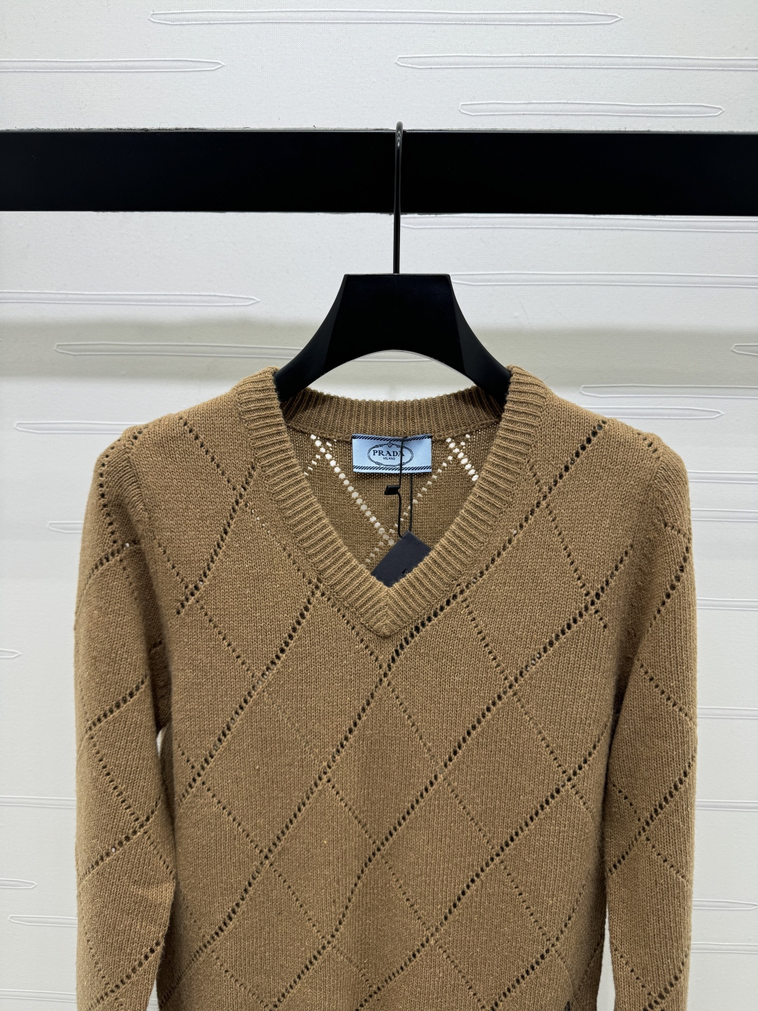 Details: Autumn-Winter V-neck Checkered Knit Top, made of customized wool, available in 3 colors and 3 sizes. fine craftsmanship