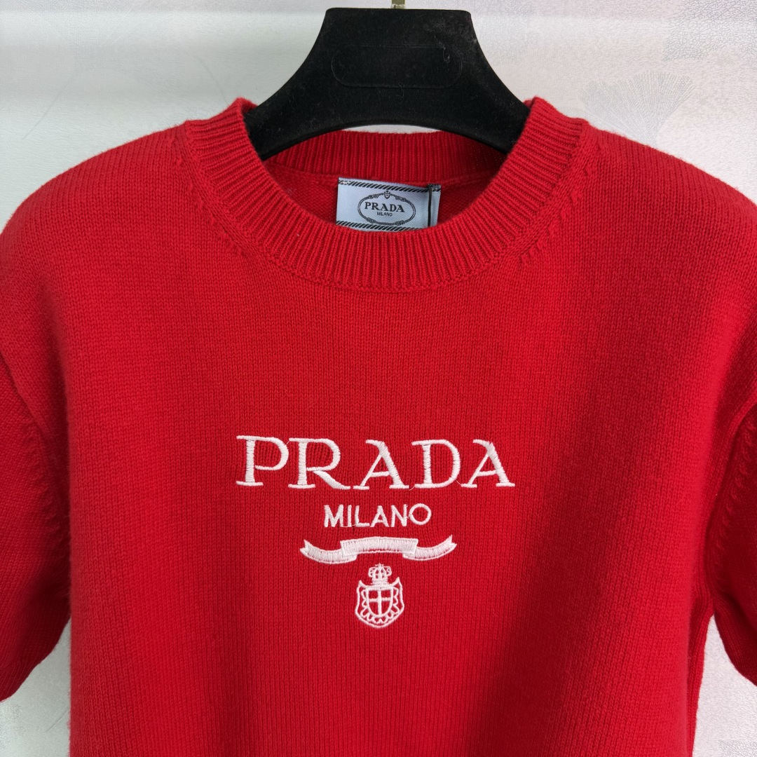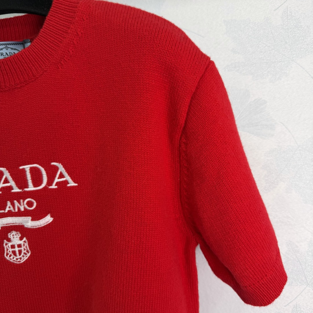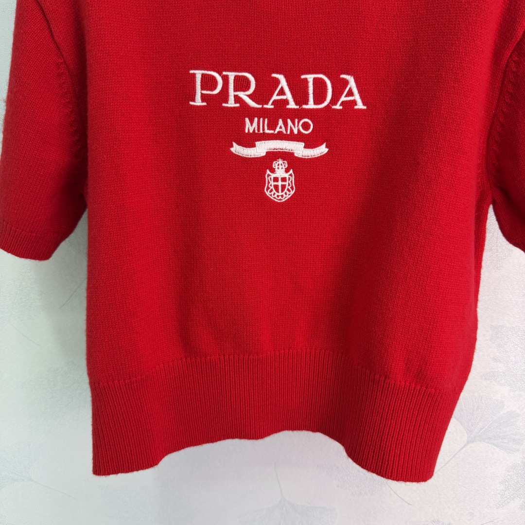 Details: Early spring round-neck knitted short sleeves featuring classic contrasting logo, simple and elegant, with youthful colors, versatile and fashionable.