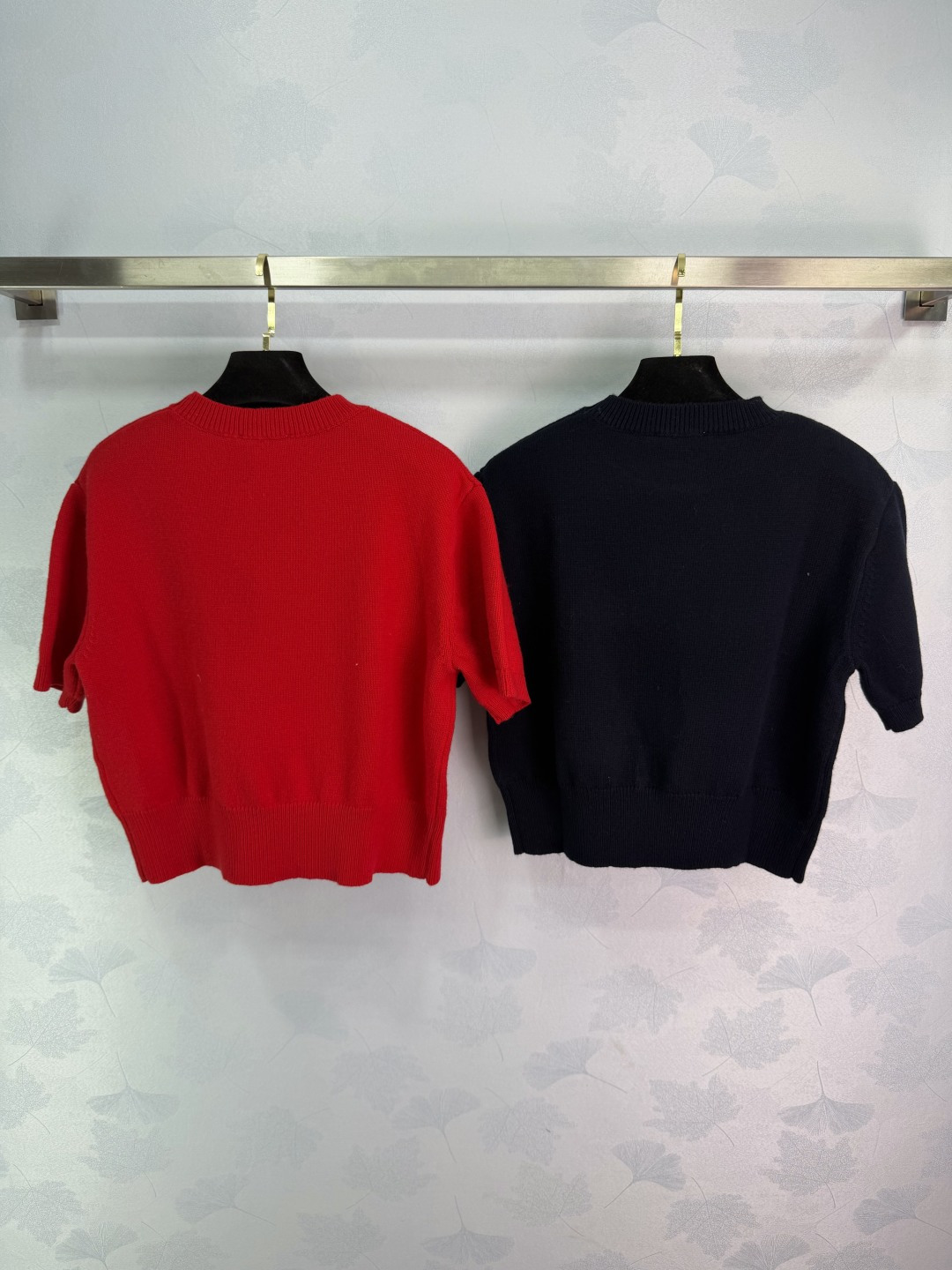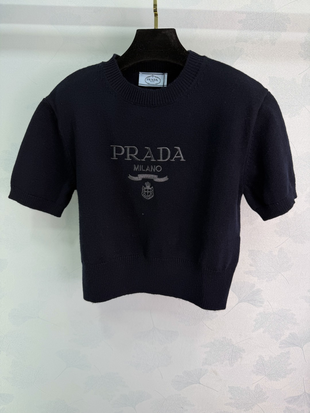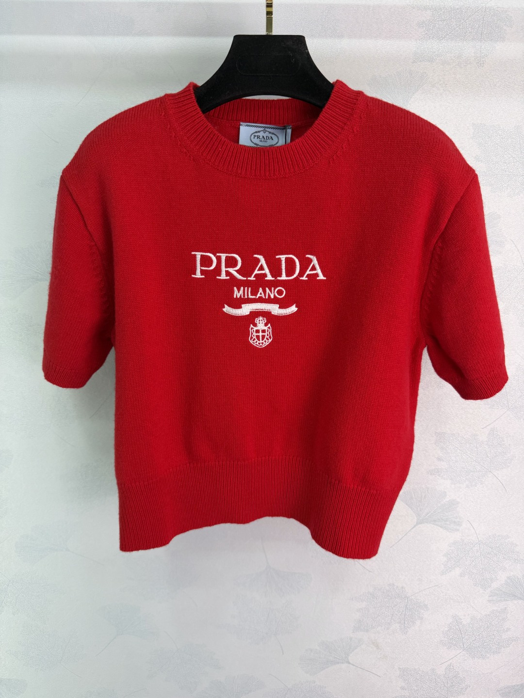 Details: Early spring round-neck knitted short sleeves featuring classic contrasting logo, simple and elegant, with youthful colors, versatile and fashionable.