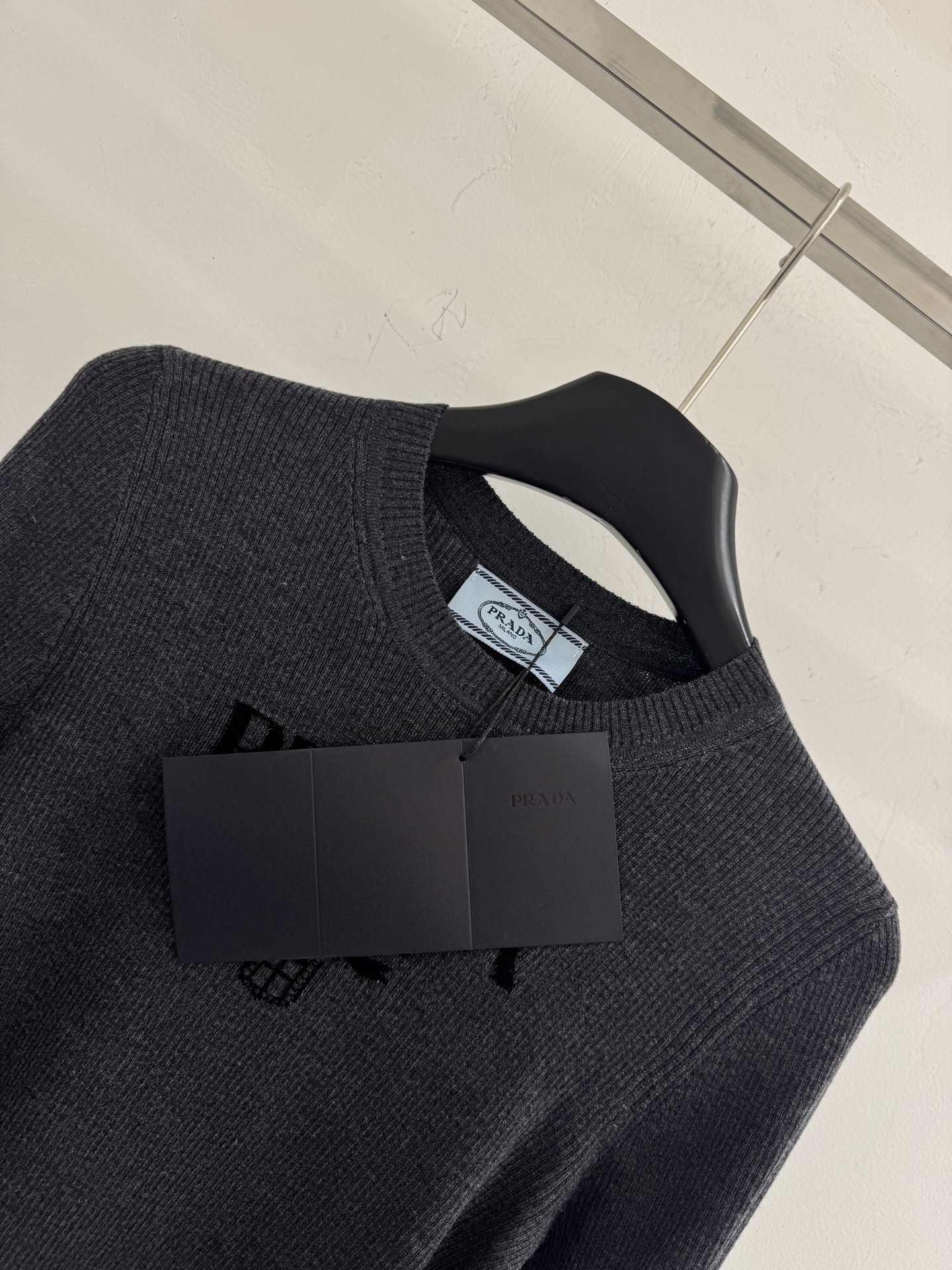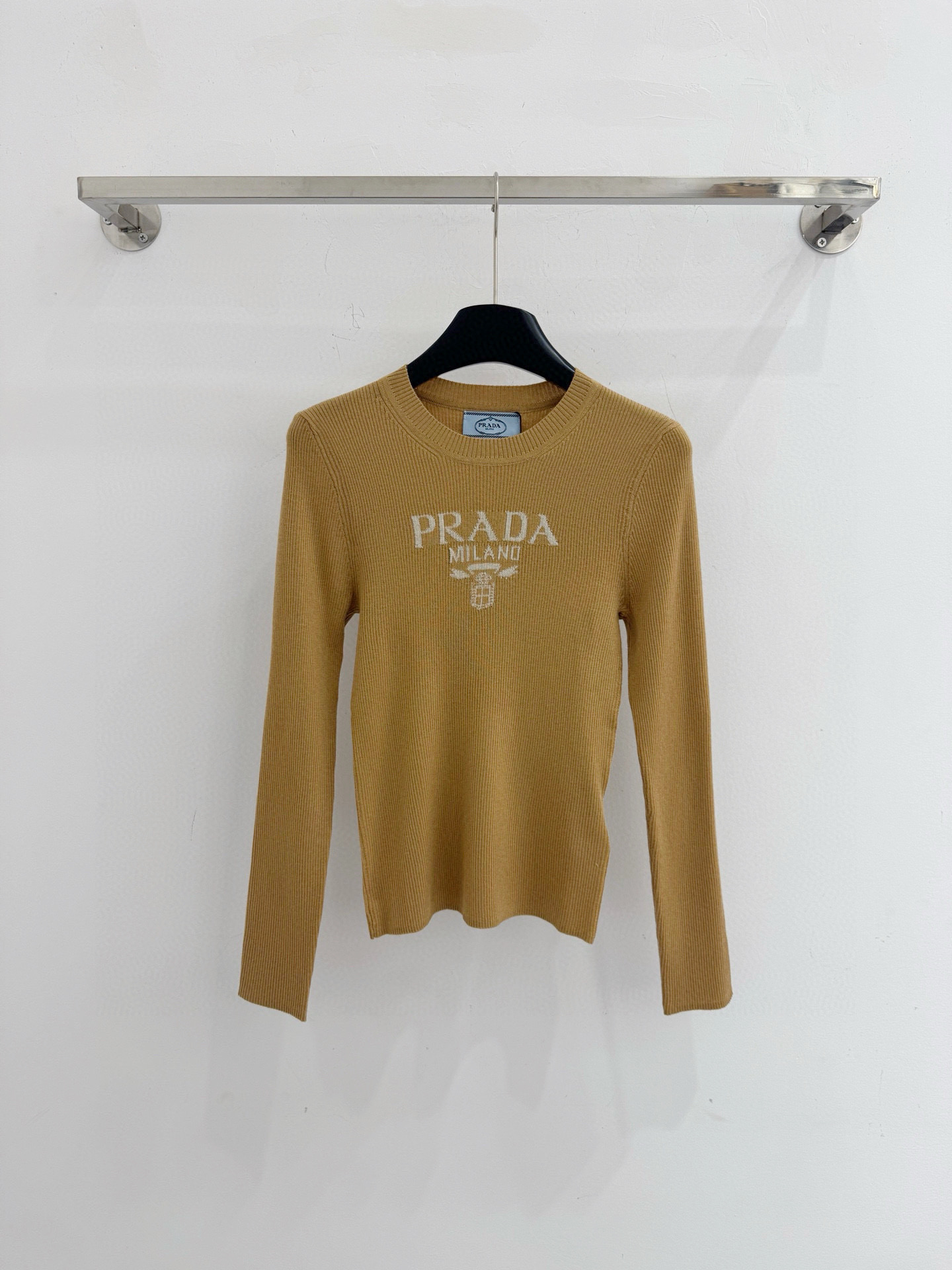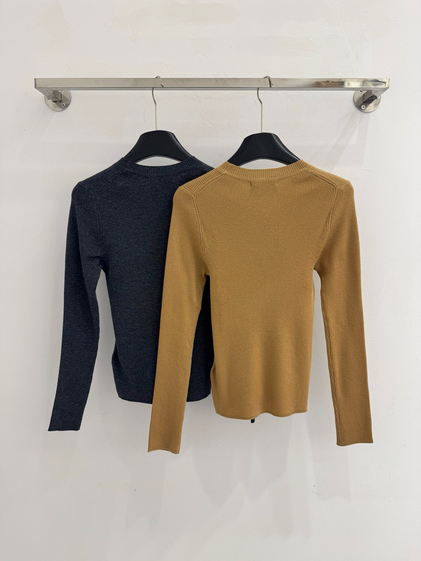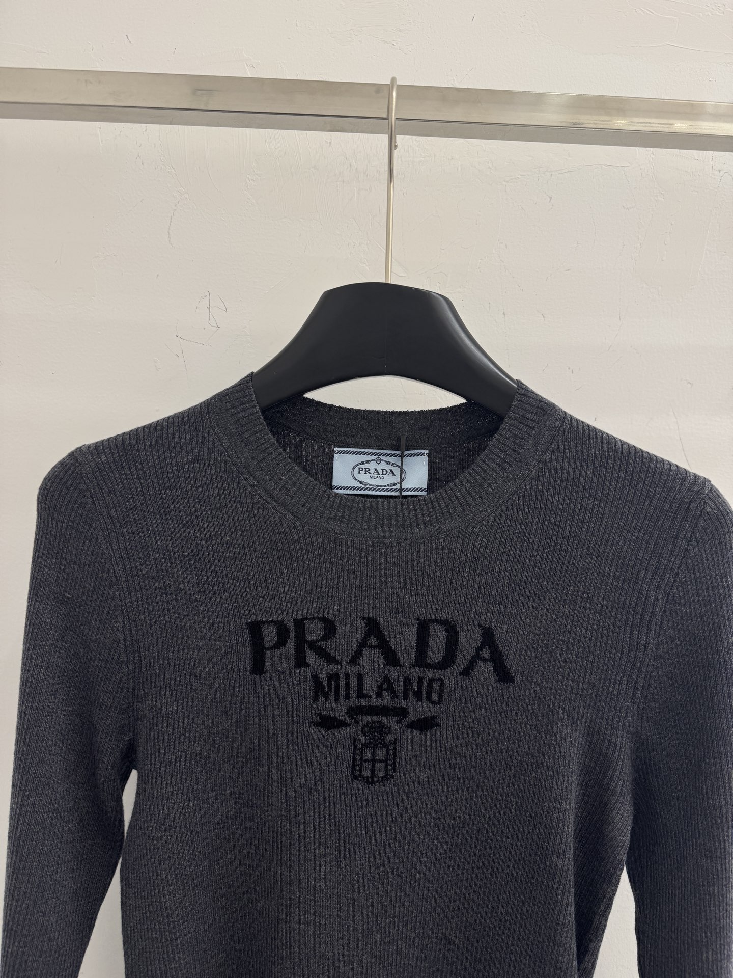 Details: Autumn-winter round-neck top with letter jacquard, gray and apricot, sizes S, M, L.