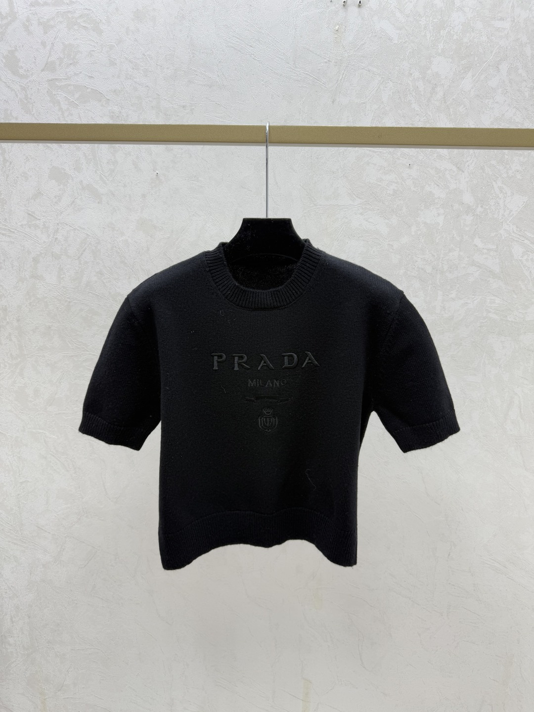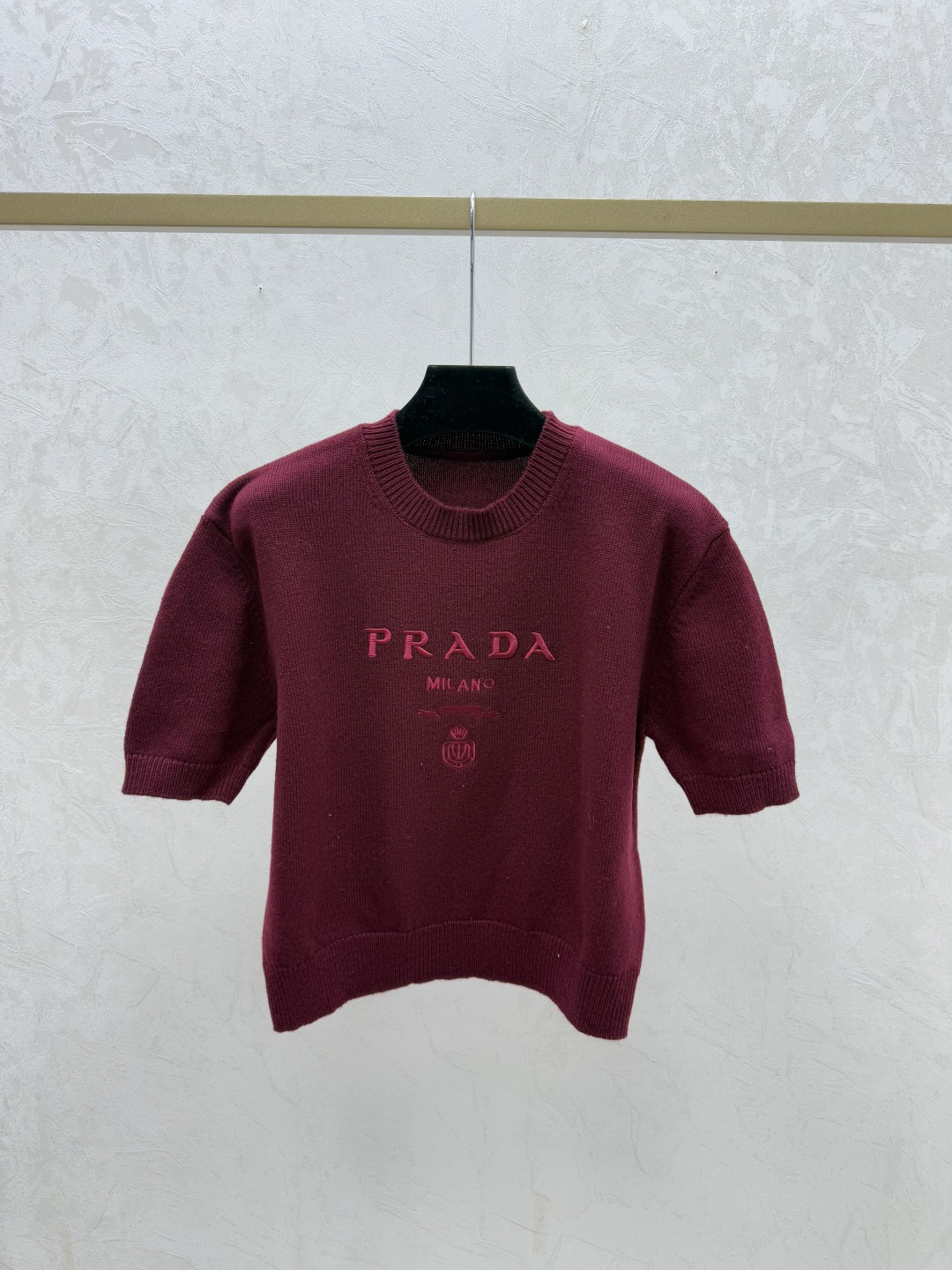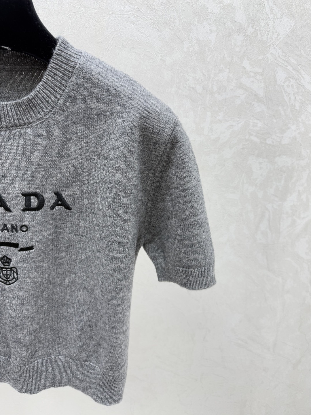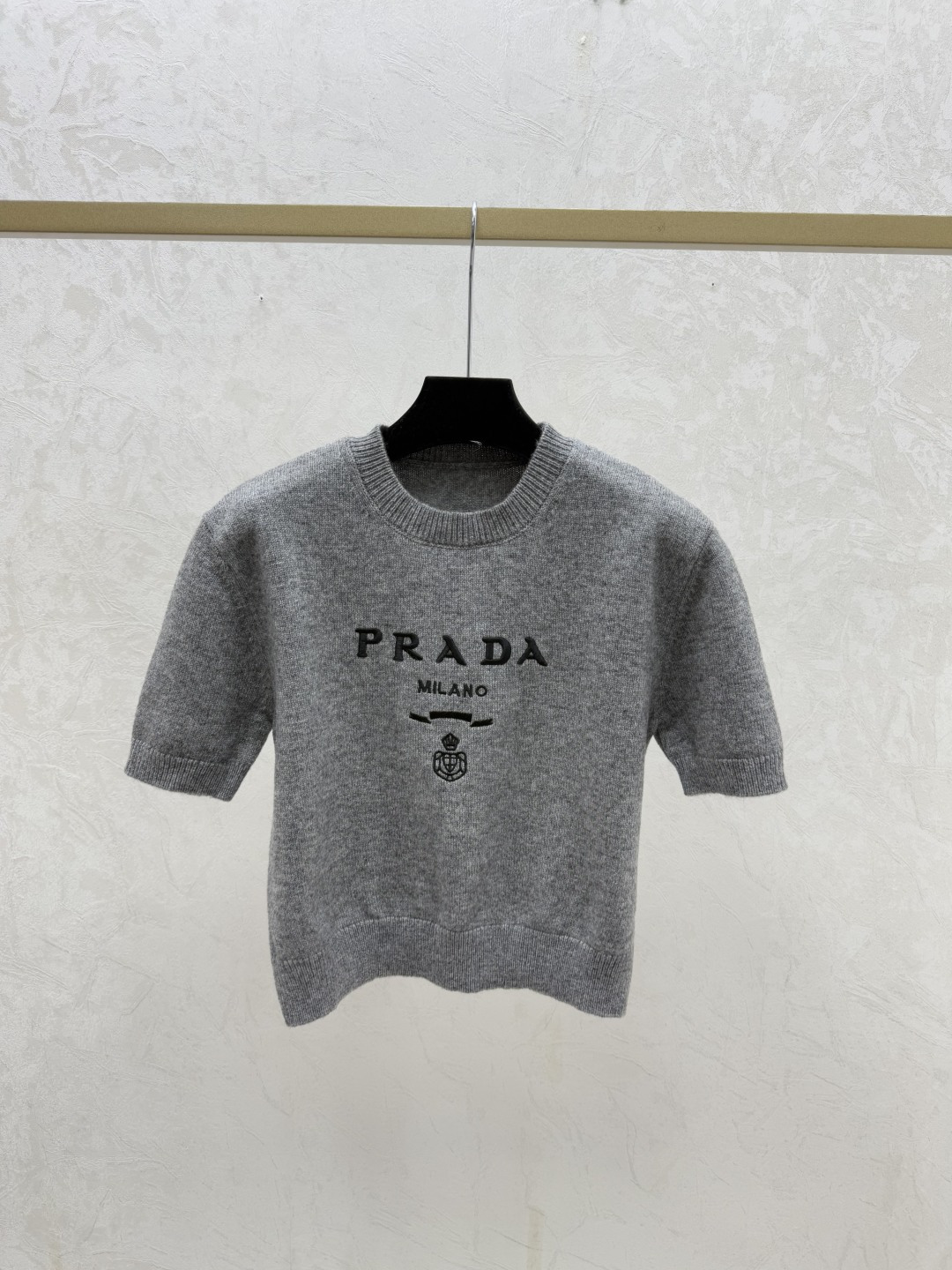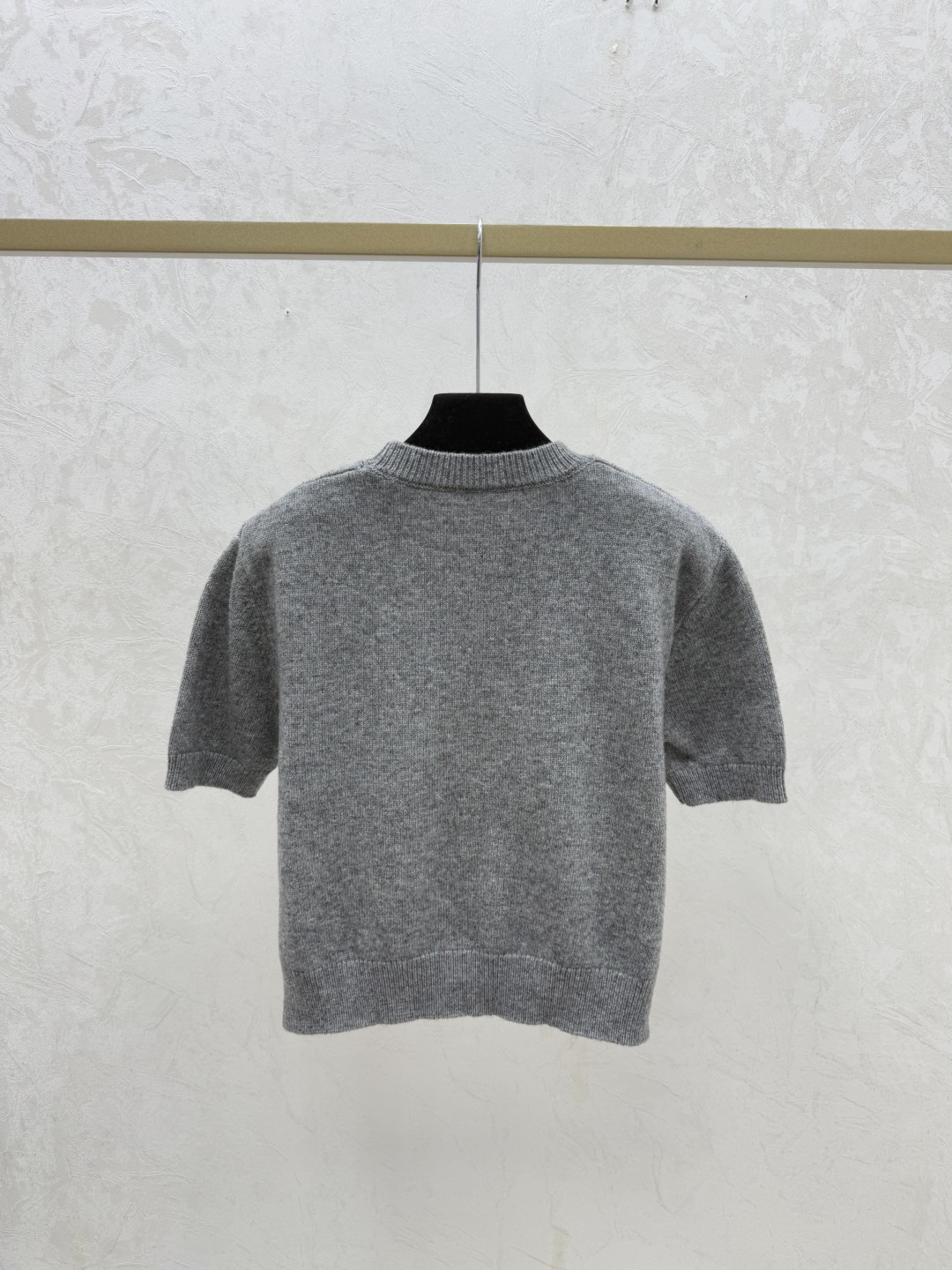 Details: Early spring new style, color-blocked letter round-neck knitted short-sleeved tops in gray, red, black, sizes 36, 38, 40