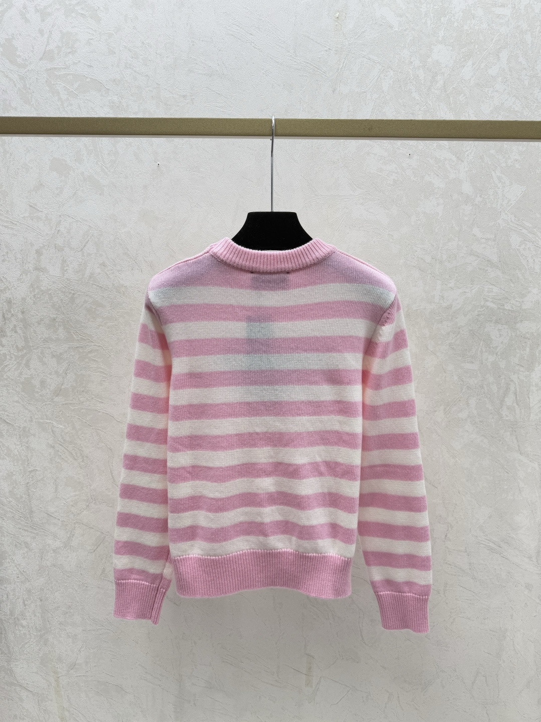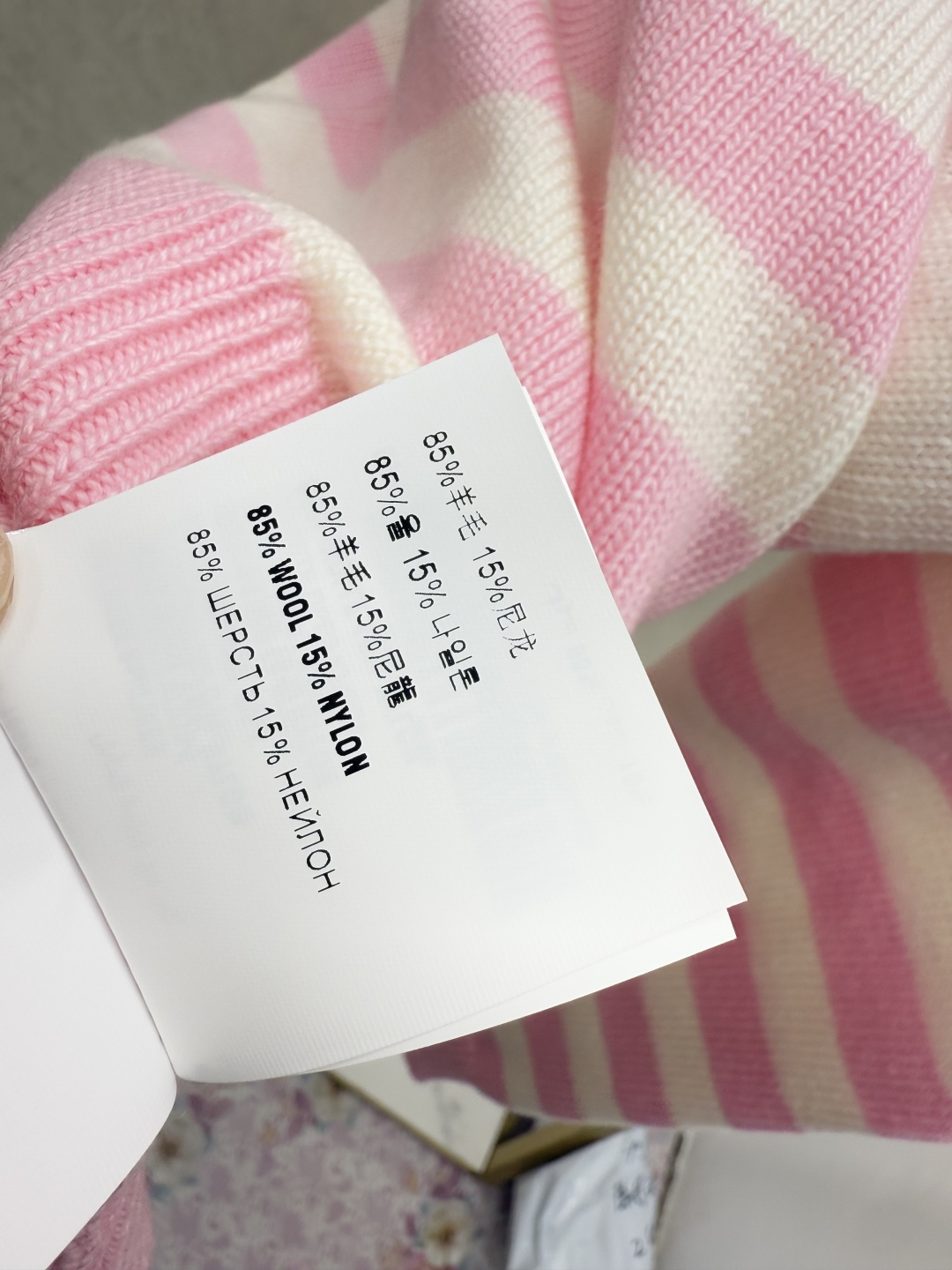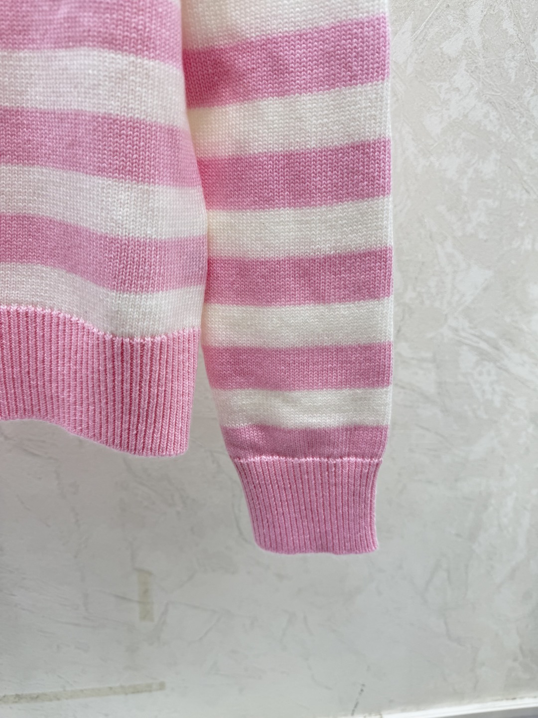 Details: Early autumn new arrival, pink color-blocked striped letter round-neck knitted long-sleeve, available in sizes 36 - 40.