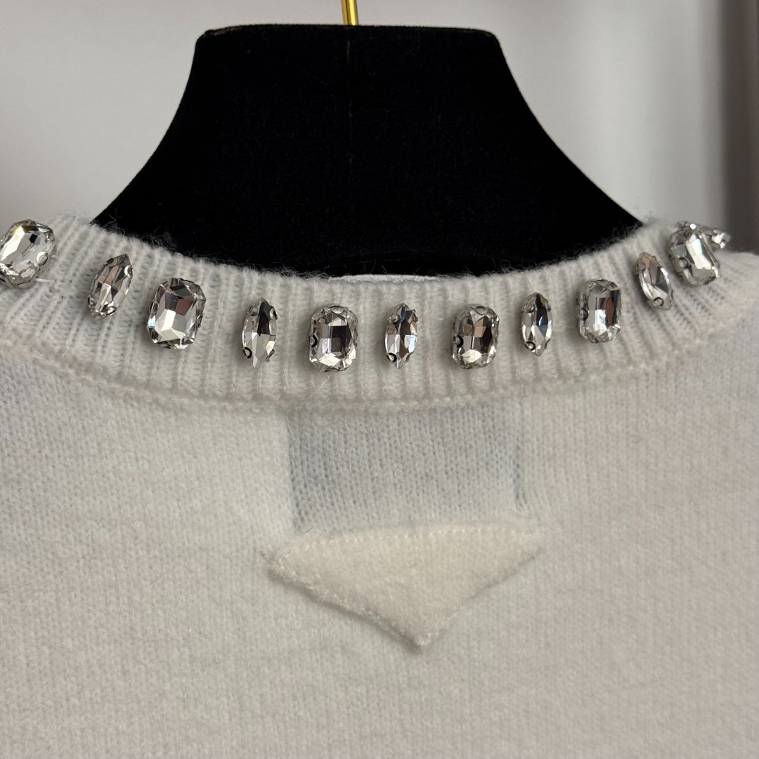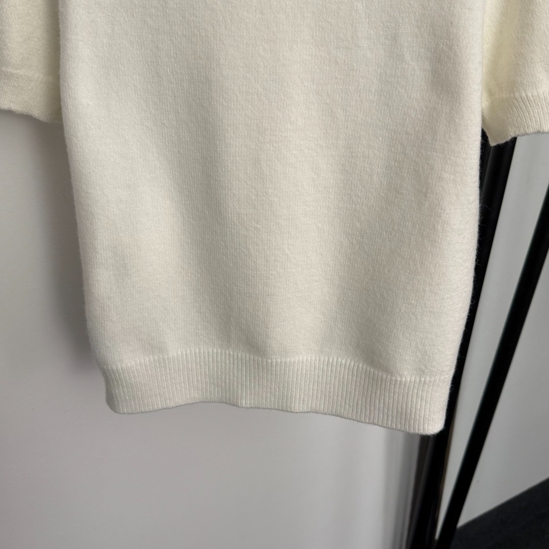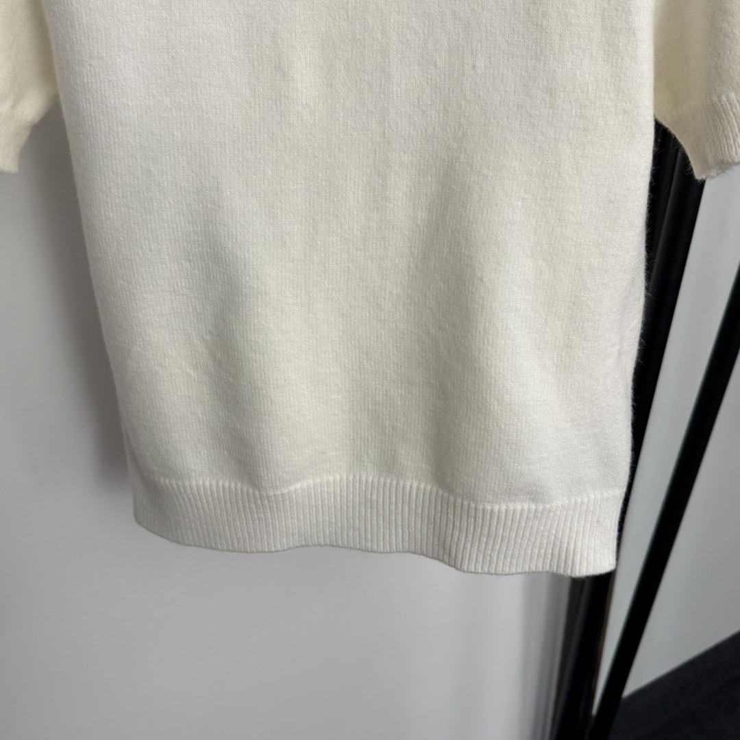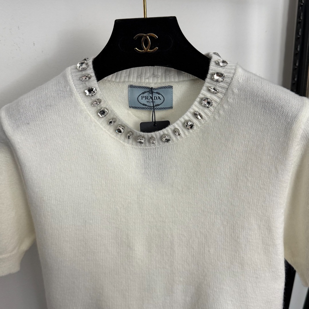 Details: New studded round-neck short-sleeved knitted top in white, red, etc., one size, high-end customization, fine workmanship
