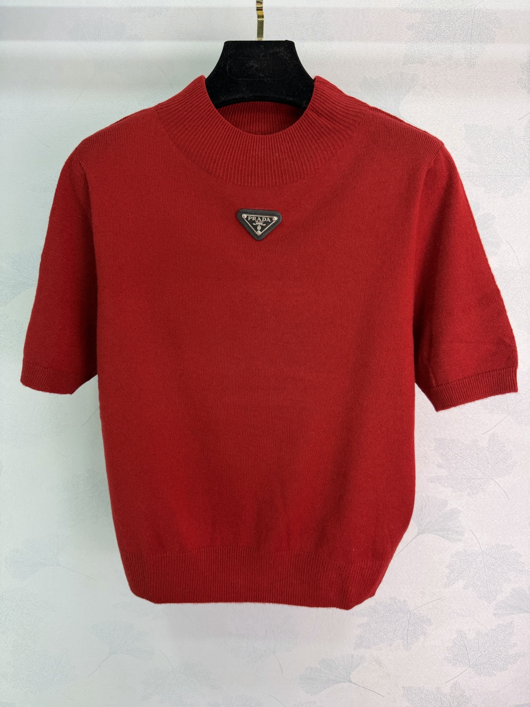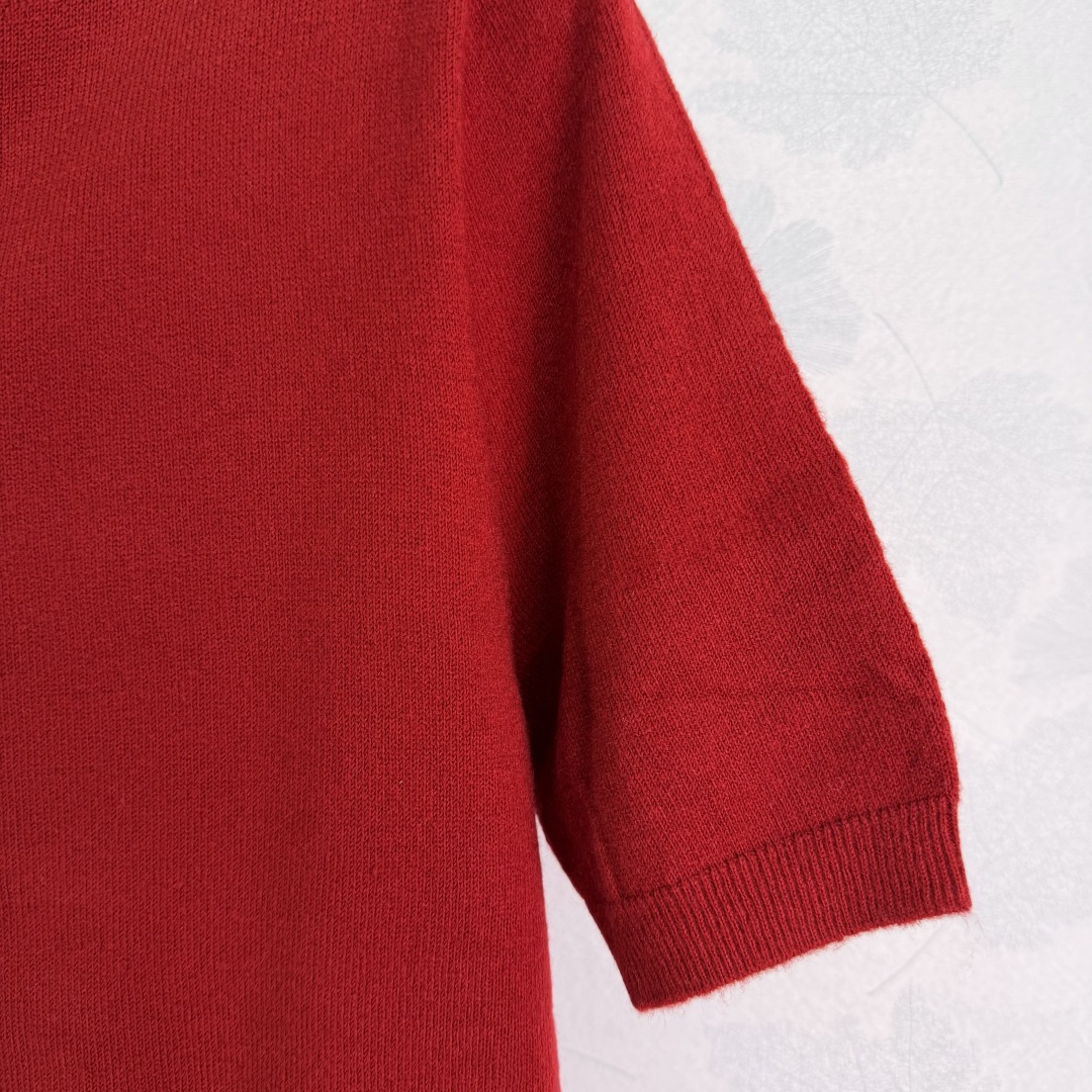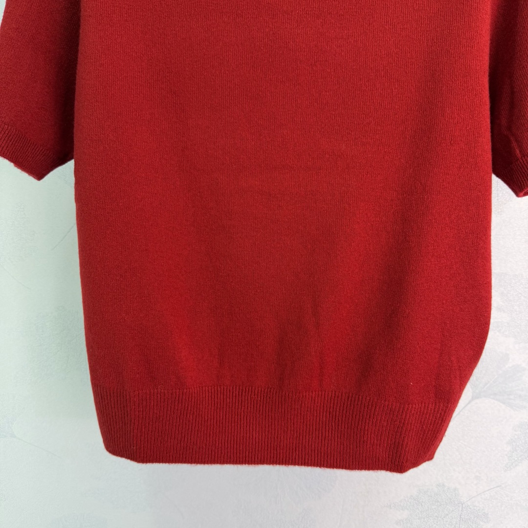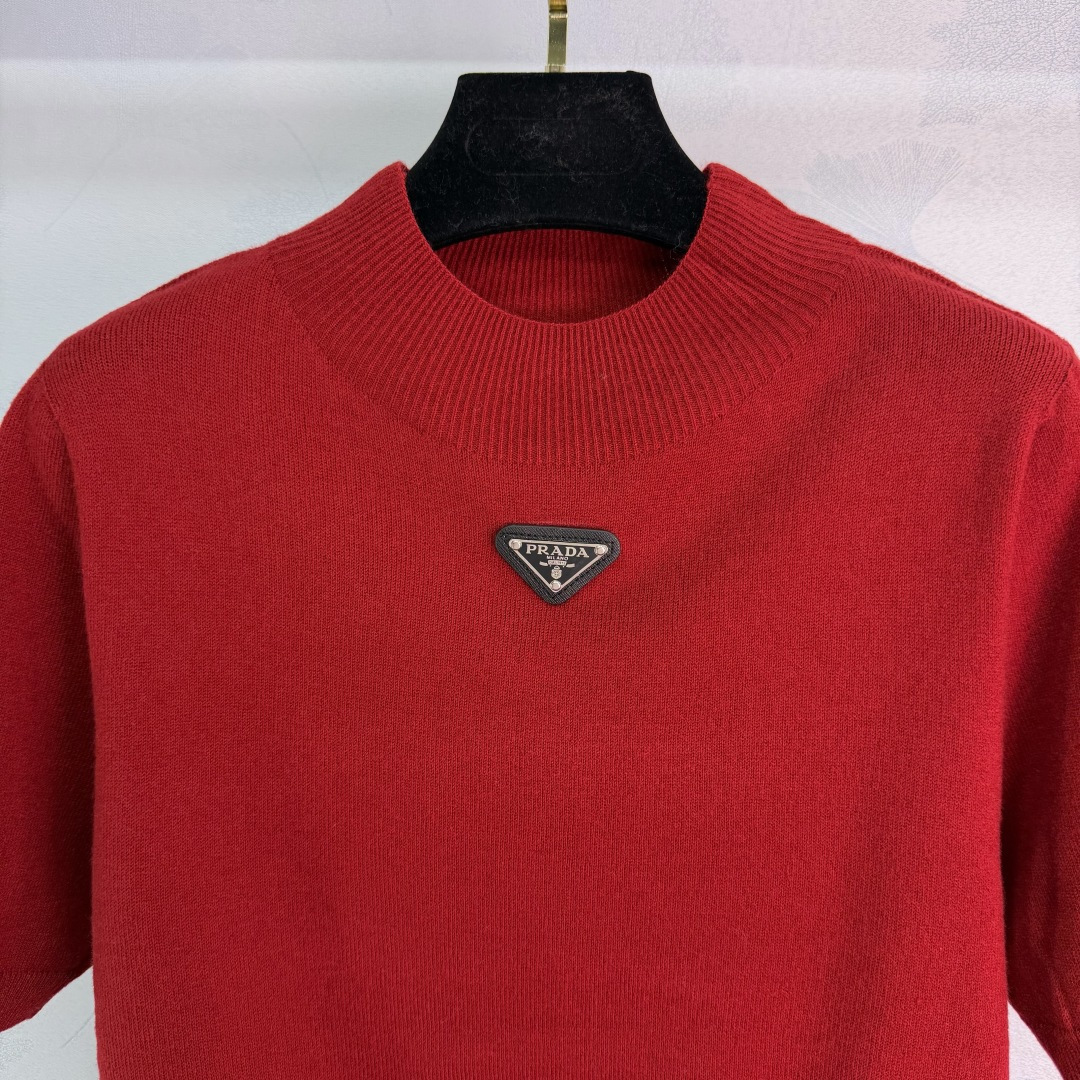 Details: Early Spring Plain Knit Short Sleeve with Triangle Logo, Elastic and Stylish