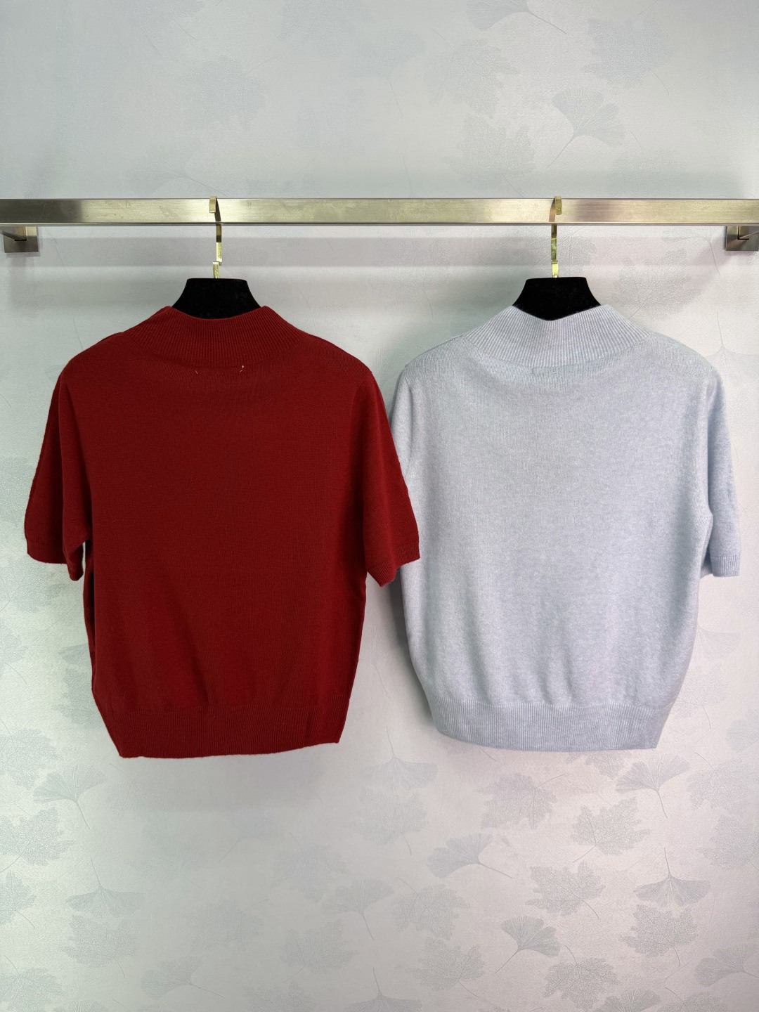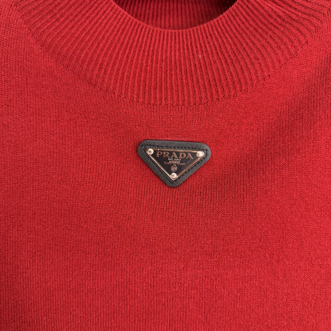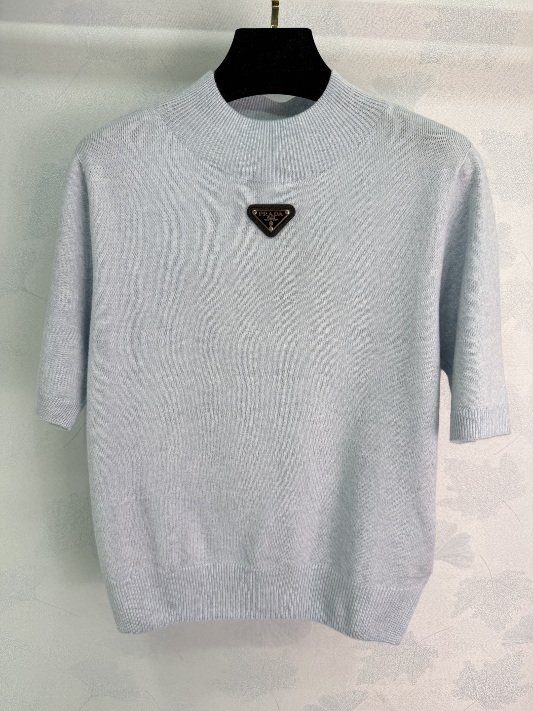 Details: Early Spring Plain Knit Short Sleeve with Triangle Logo, Elastic and Stylish