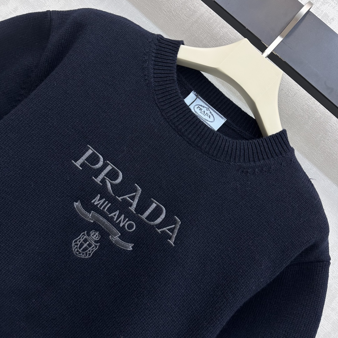 Details: Knit Top with Embroidered Logo, Imported Wool, Two Colors, High-end Customization, Fine Craftsmanship