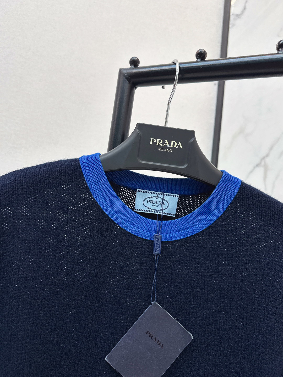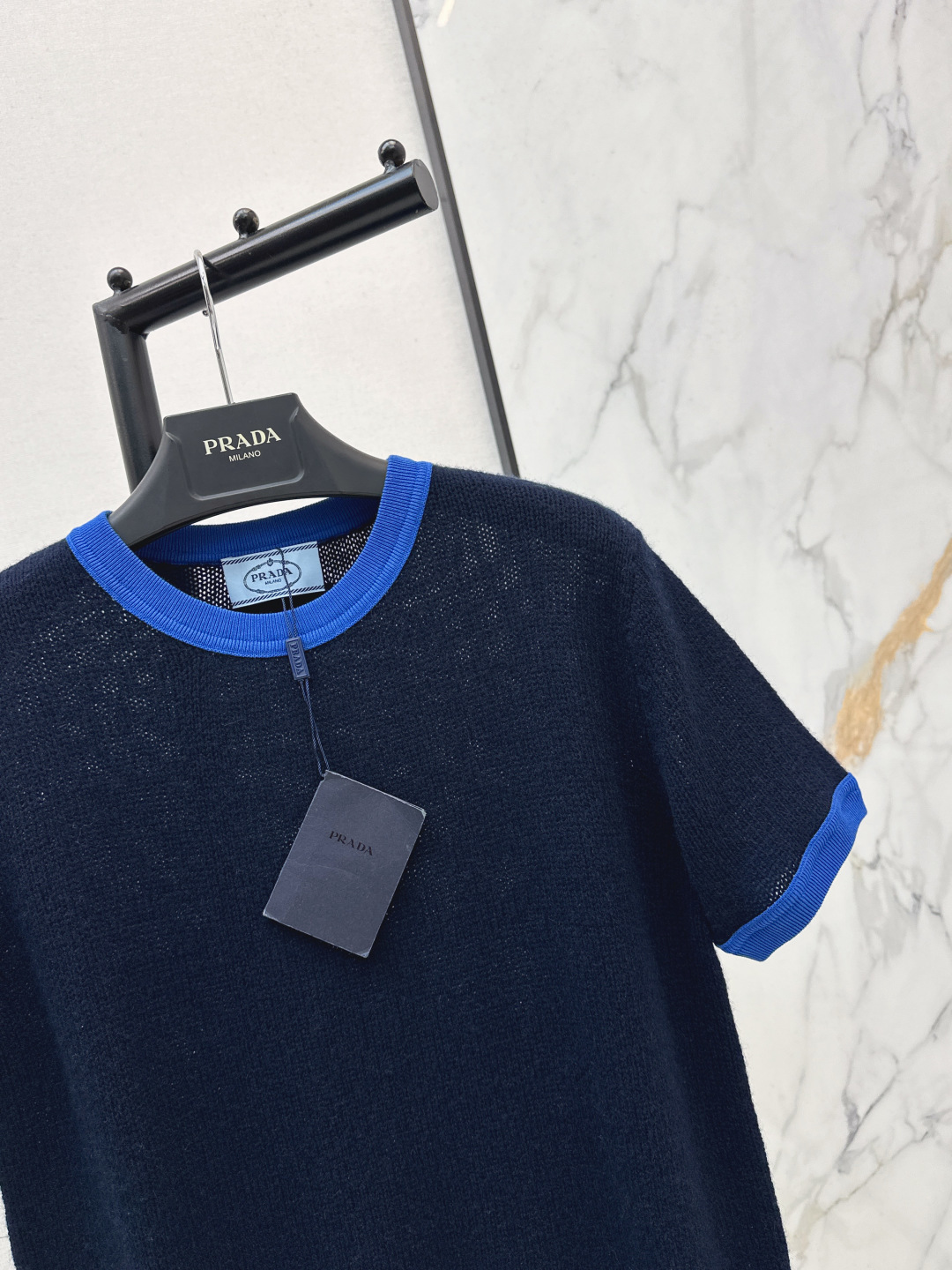 Details: Early spring color-blocked cashmere short-sleeved sweater, slimming and versatile.