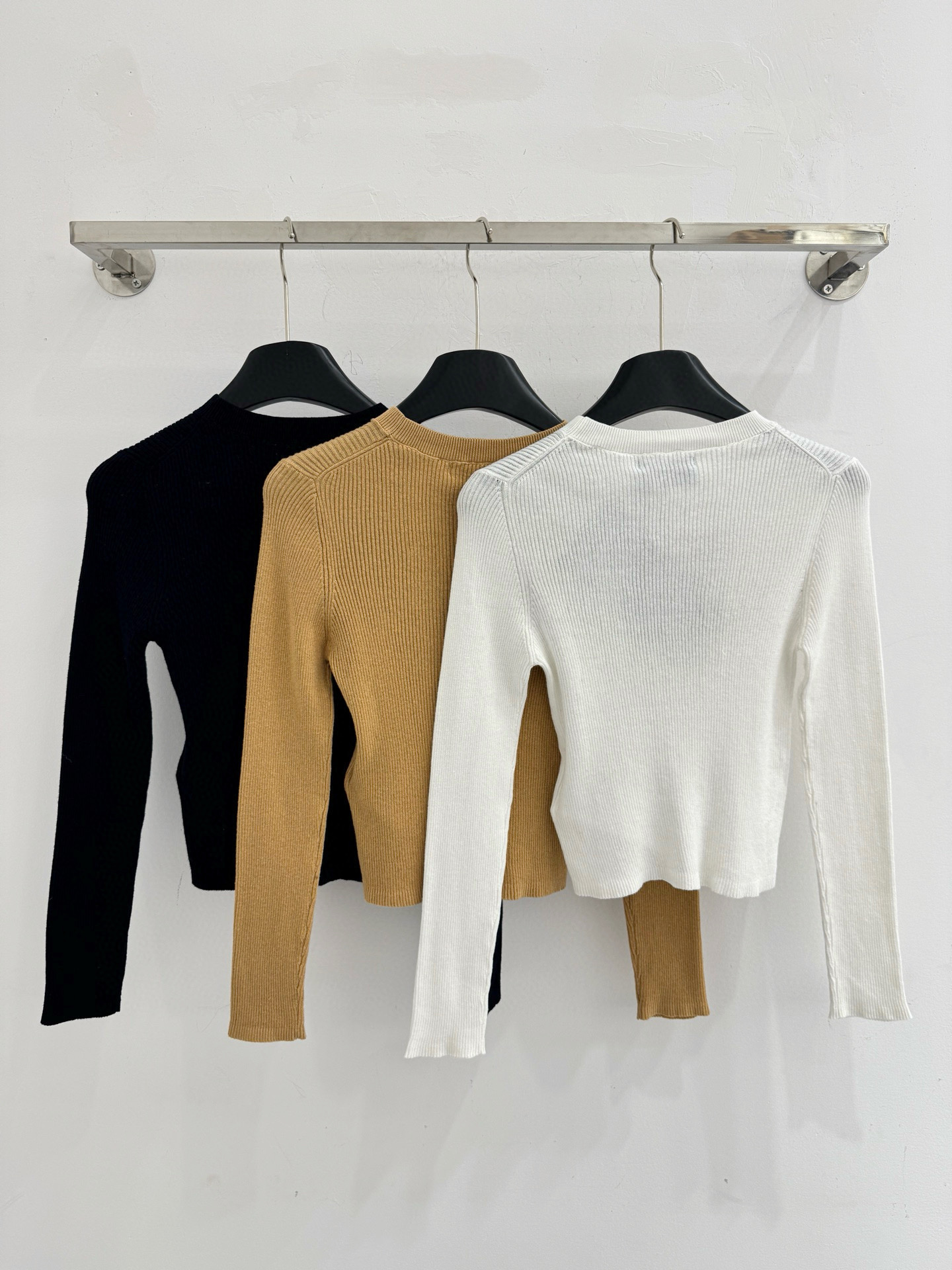 Details: New autumn and winter round - neck tops in sapphire, white and khaki, SML sizes.