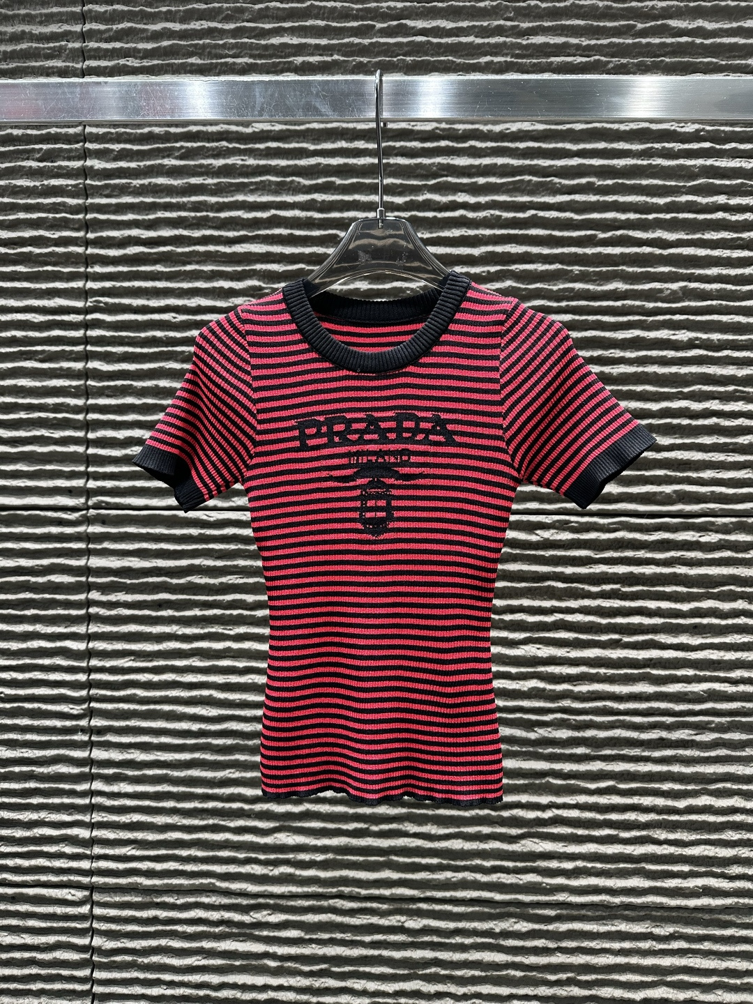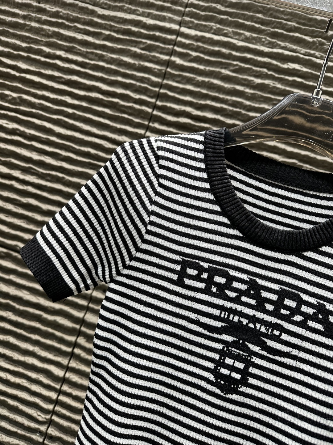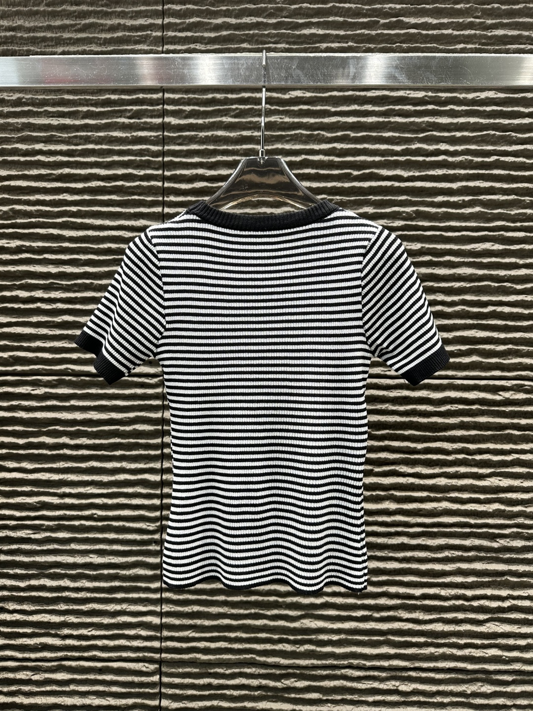 Details: Newly Arrived Jacquard Letter Stripe Knit Short-Sleeve Tops, High-end Custom, Fine Workmanship
