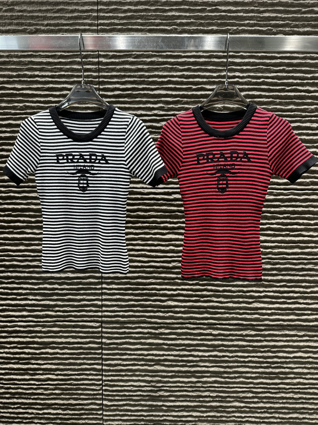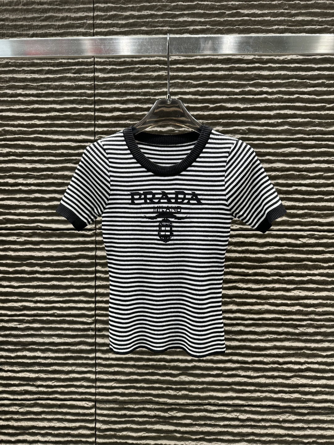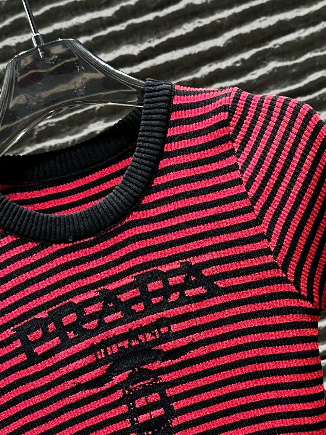 Details: Newly Arrived Jacquard Letter Stripe Knit Short-Sleeve Tops, High-end Custom, Fine Workmanship