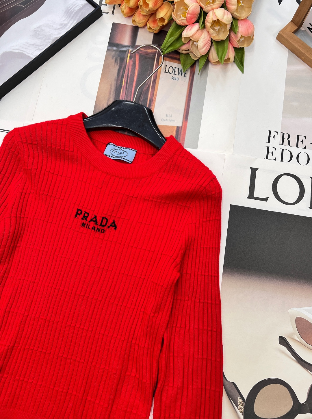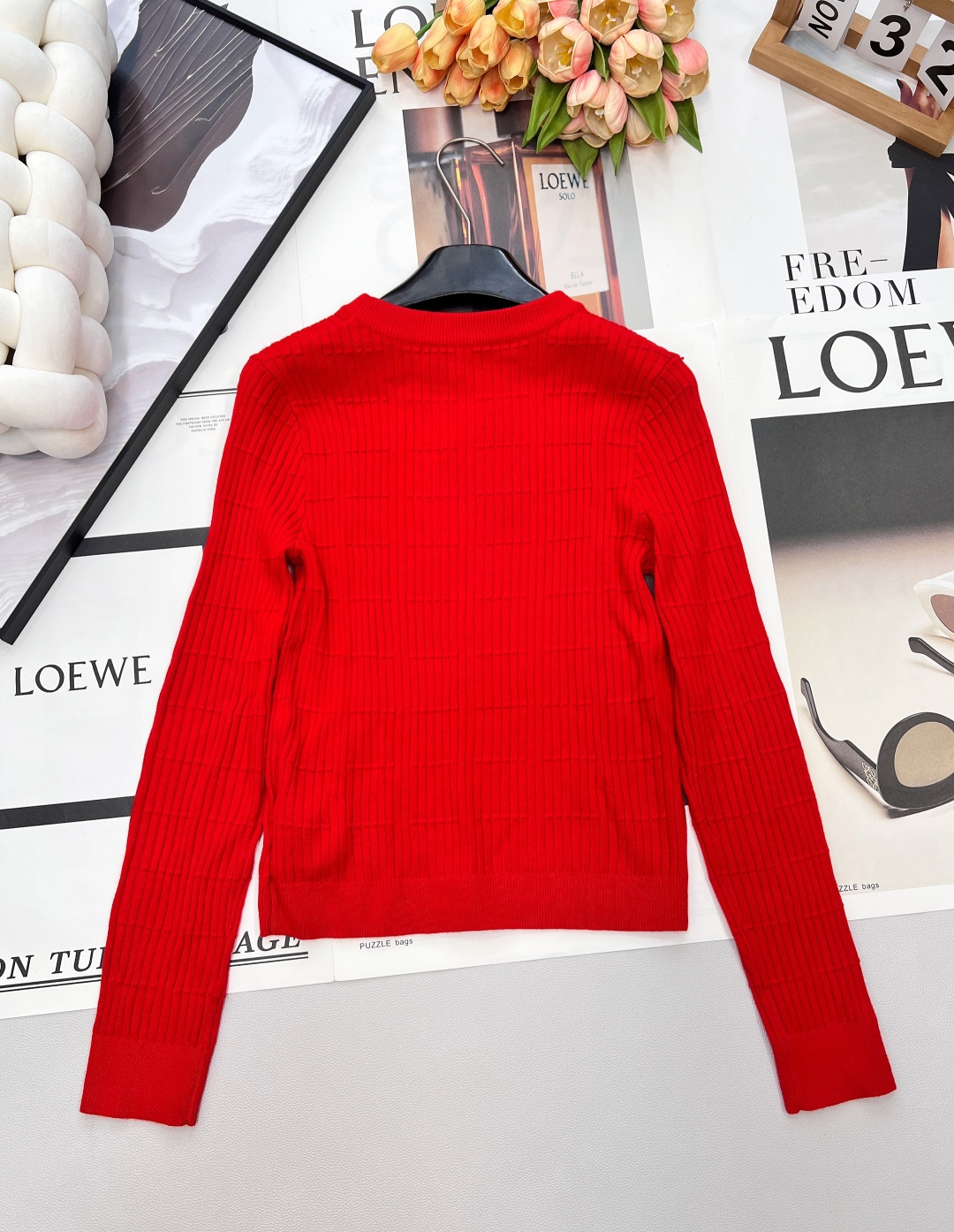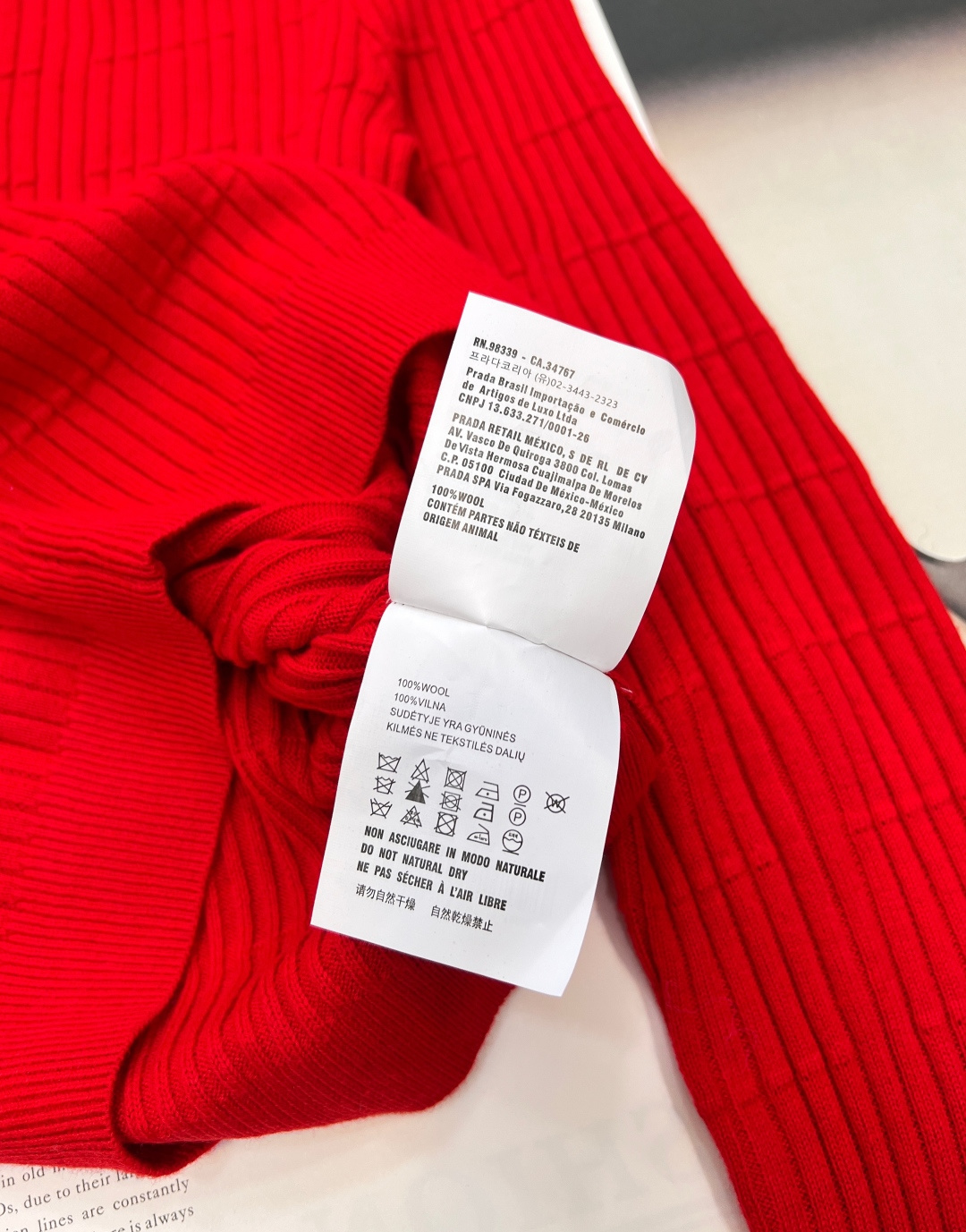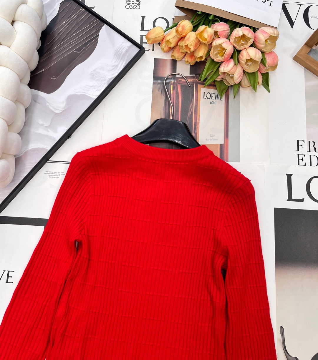 Details: Minimalist and luxurious red lettered knitted top with elastic wool, great for layering in autumn and winter.