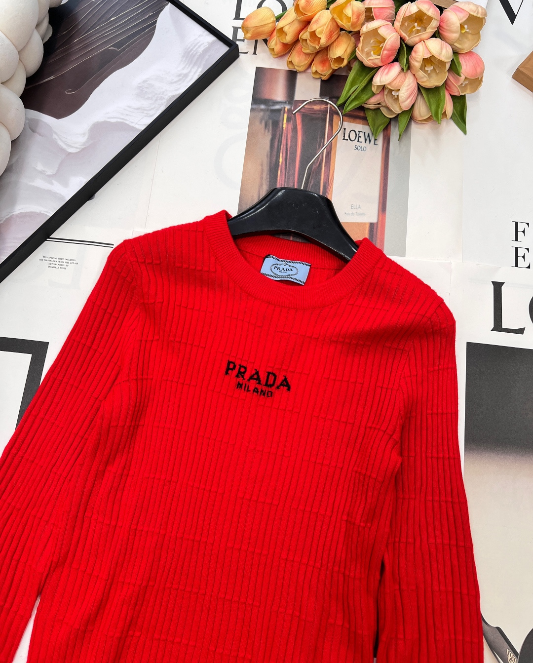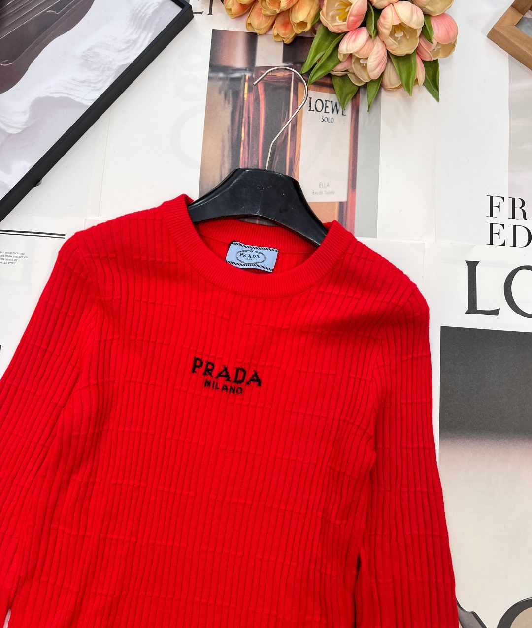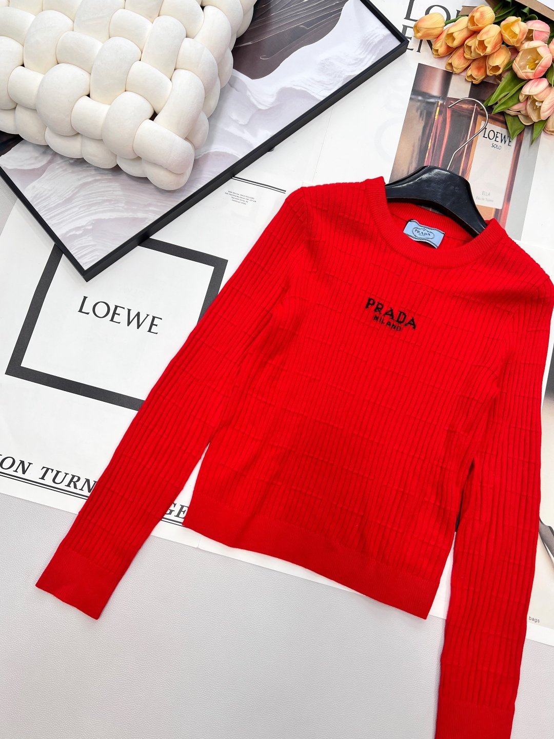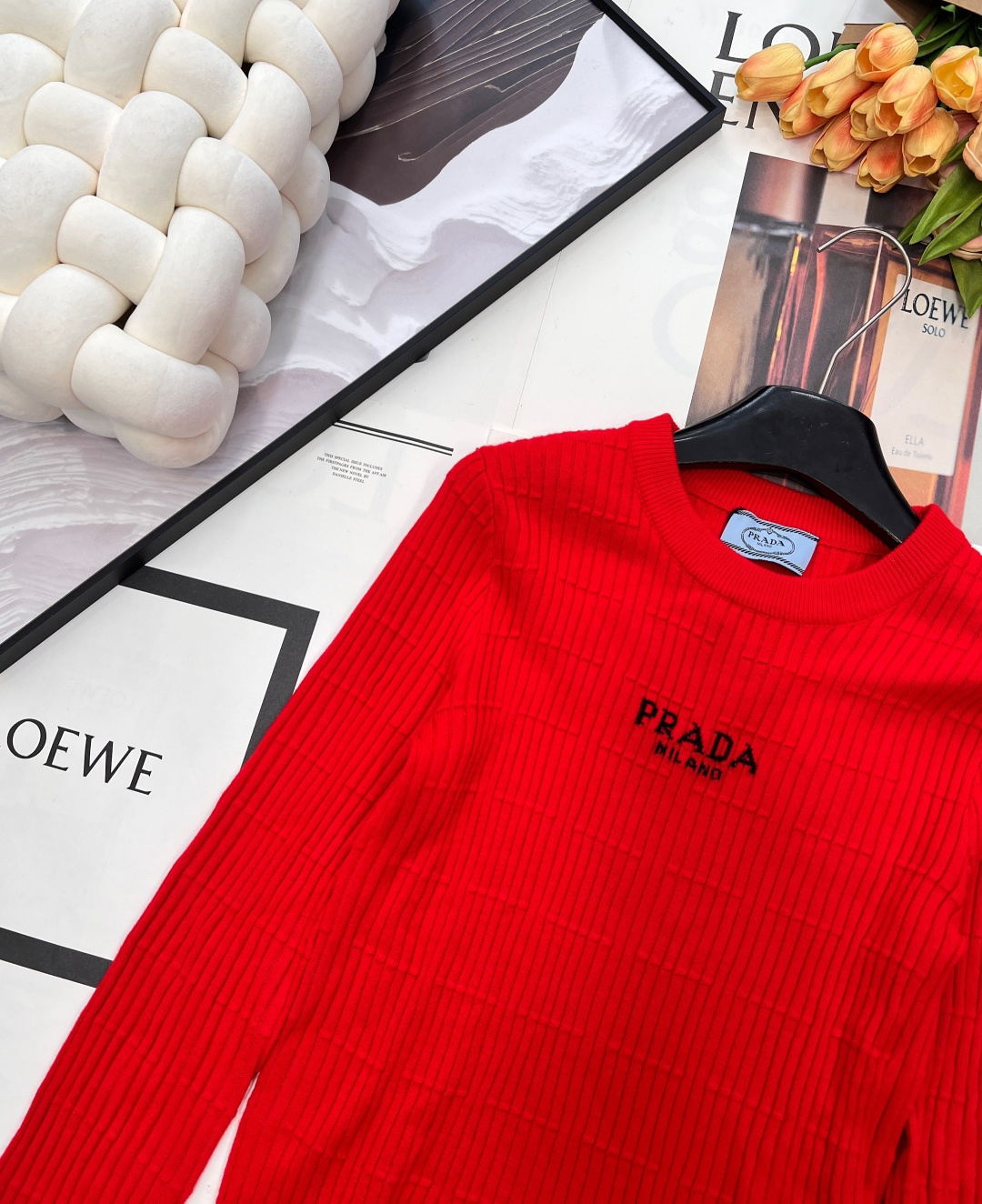 Details: Minimalist and luxurious red lettered knitted top with elastic wool, great for layering in autumn and winter.