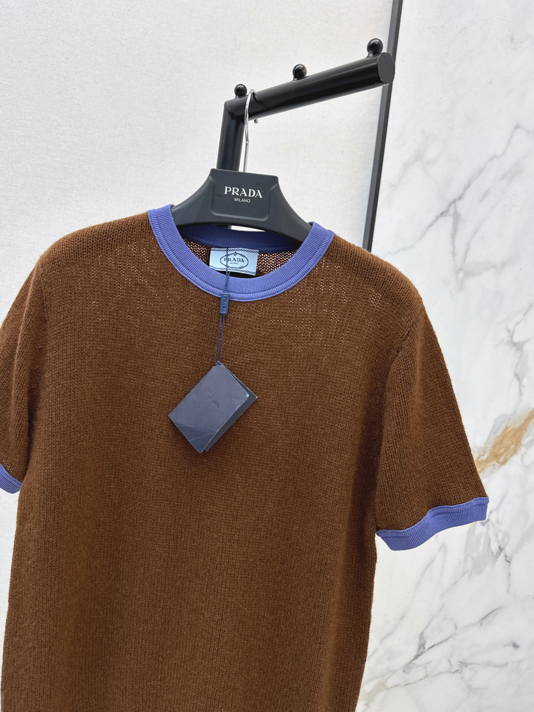 Details: Spring pure cashmere short-sleeved sweater with hand-made trims, simple yet elegant, designed to slim the figure, available in two colors.