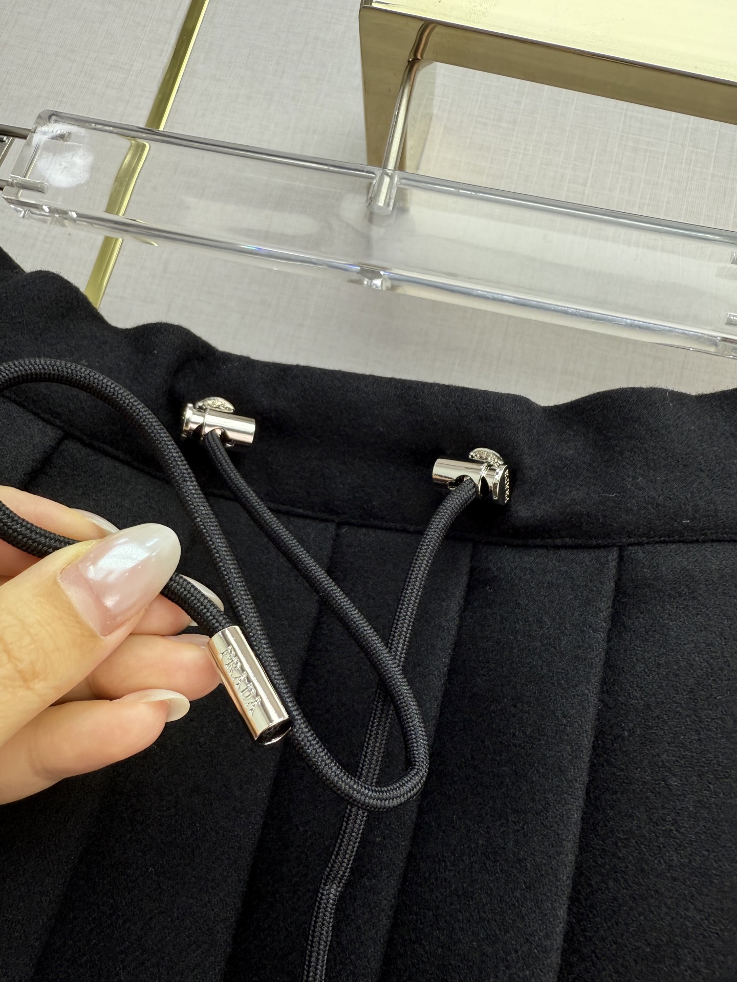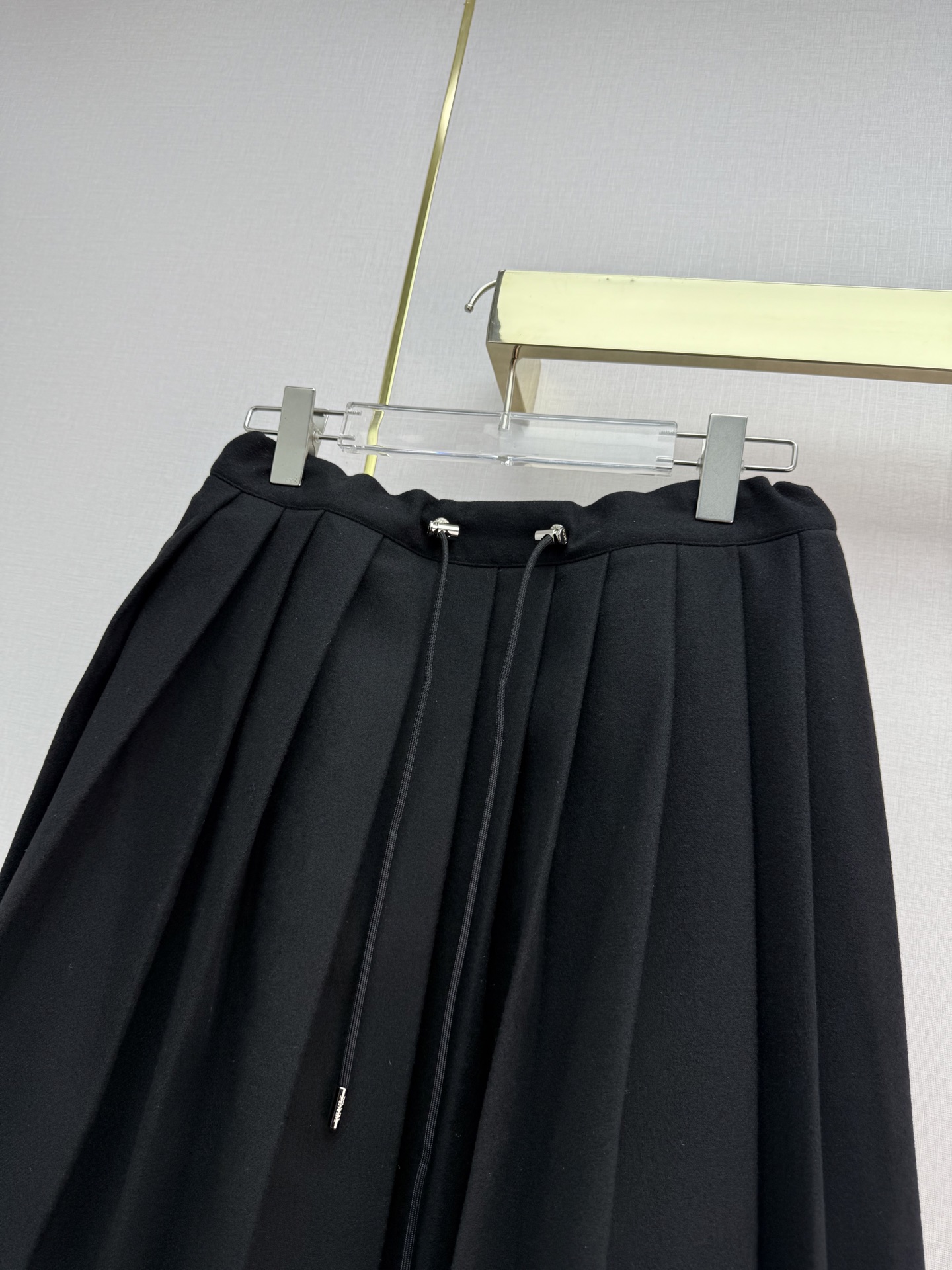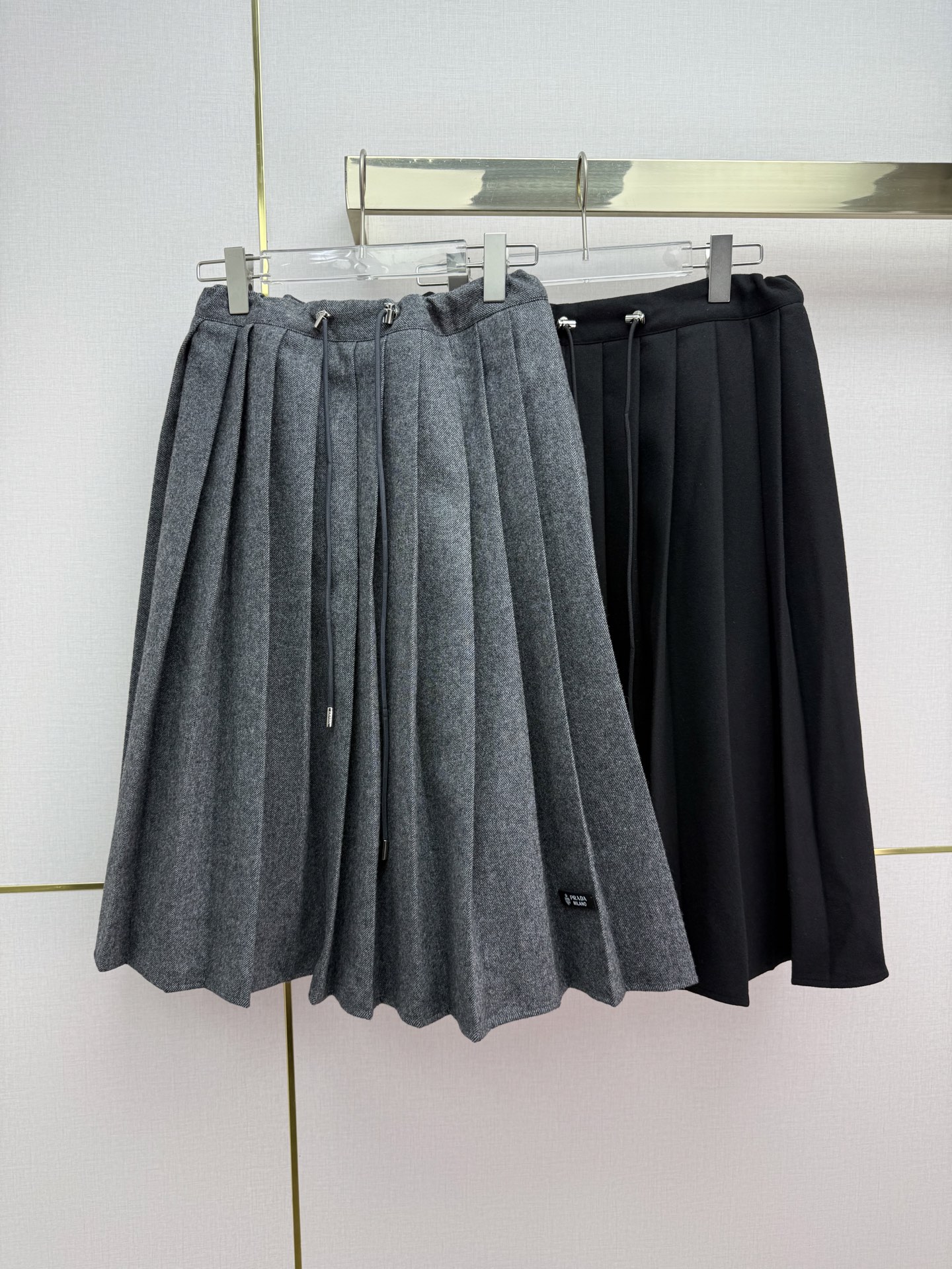 Details: New Fall/Winter pleated skirt with drawstring waist, wool blend, letter leather patch, two colors and three sizes, versatile and high-quality