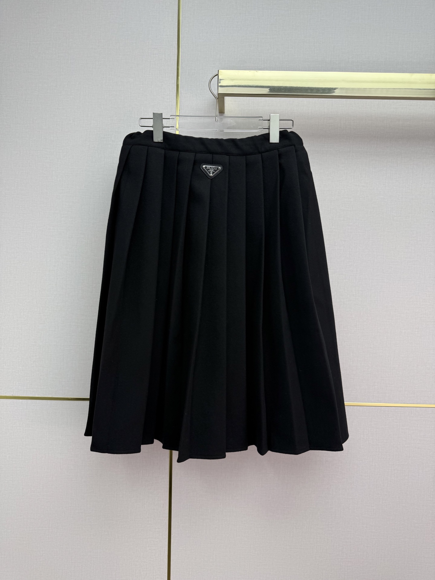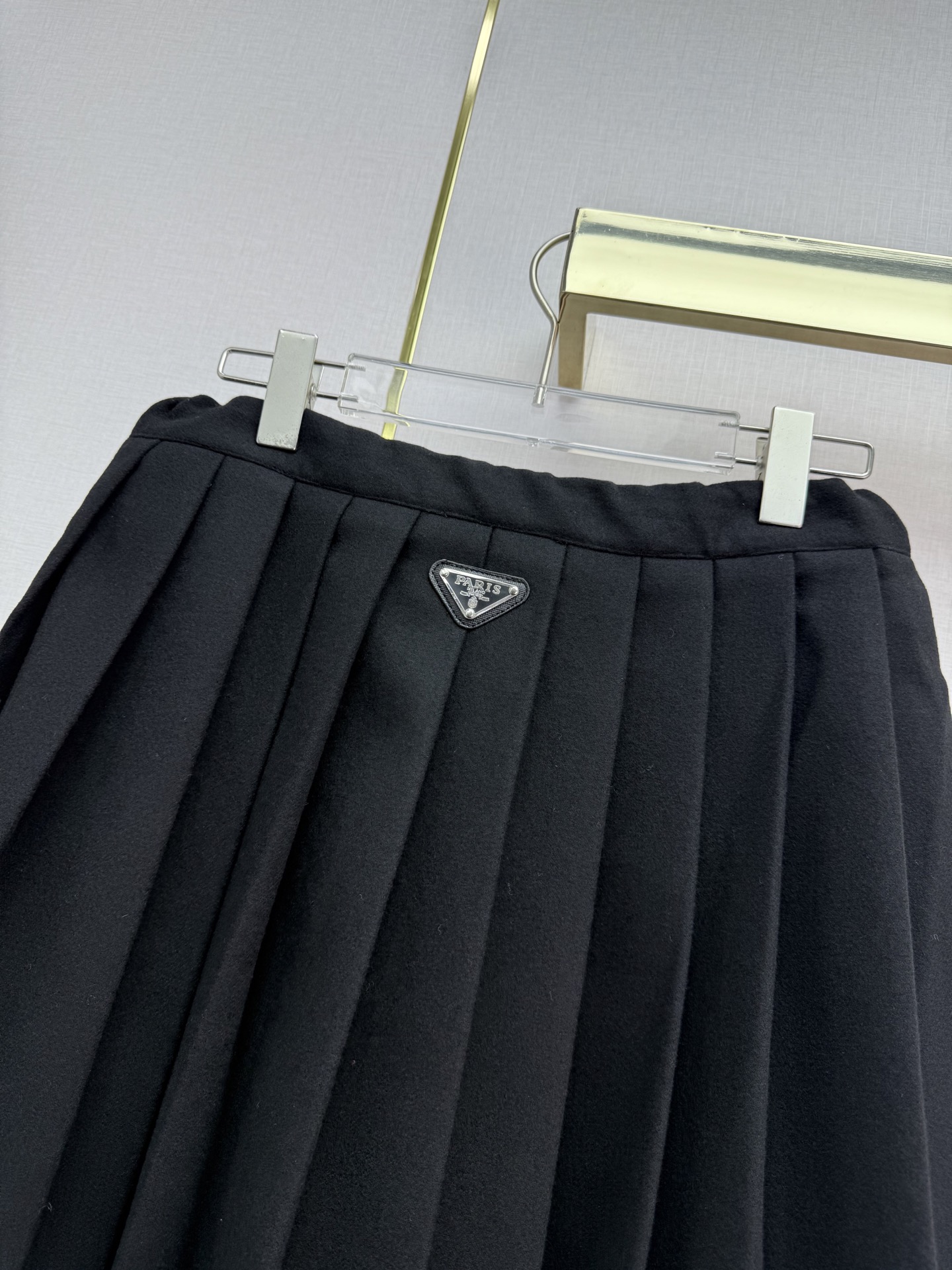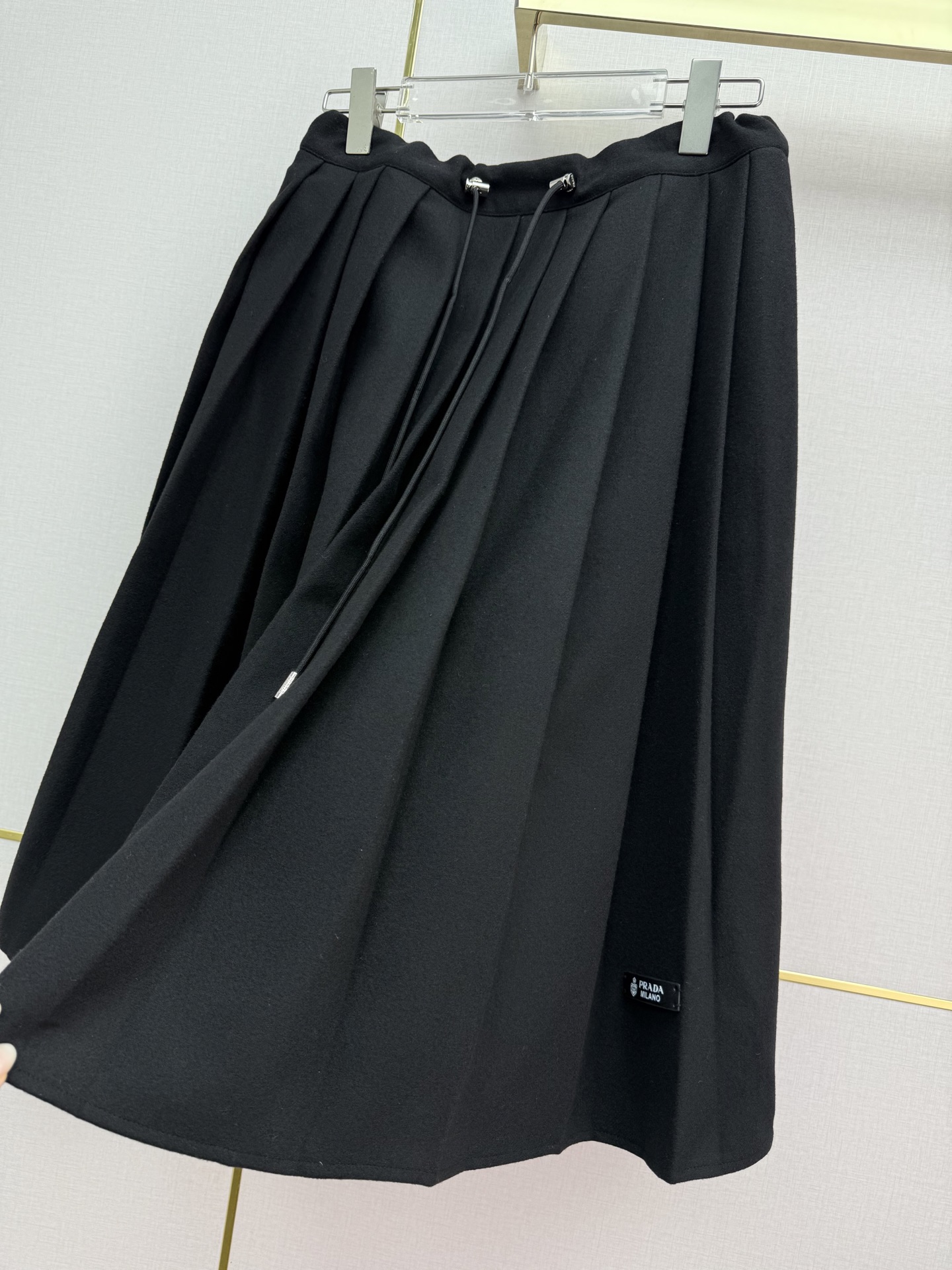 Details: New Fall/Winter pleated skirt with drawstring waist, wool blend, letter leather patch, two colors and three sizes, versatile and high-quality