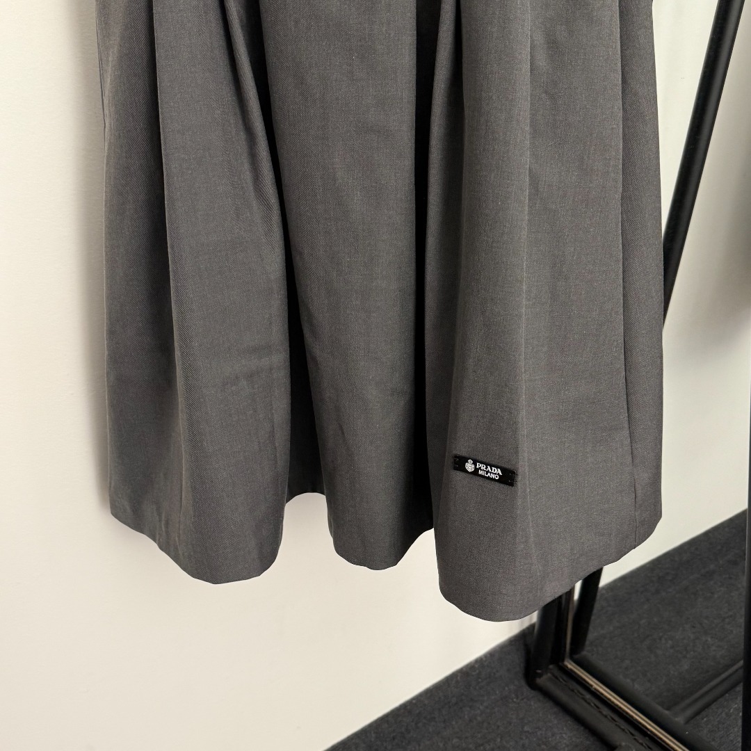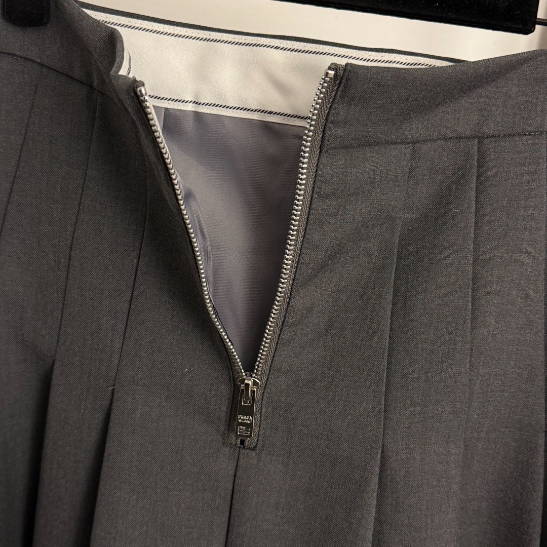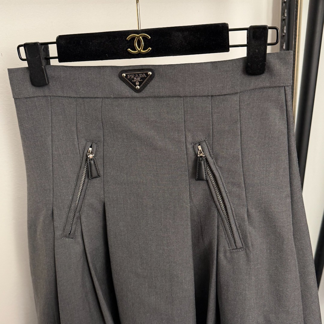 Details: New logo triangular-label zippered high-waisted suit skirt in gray and black, size M. High-end customization, fine workmanship