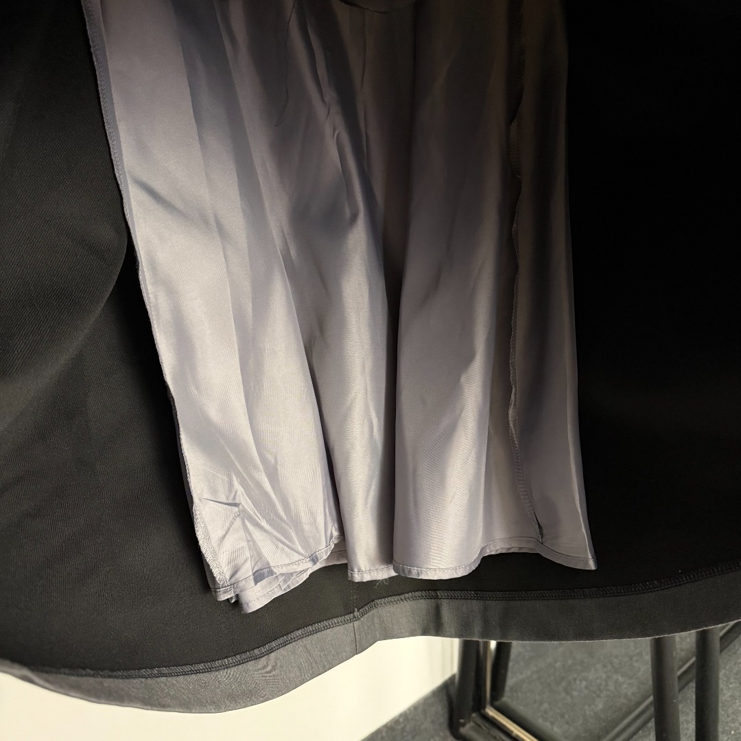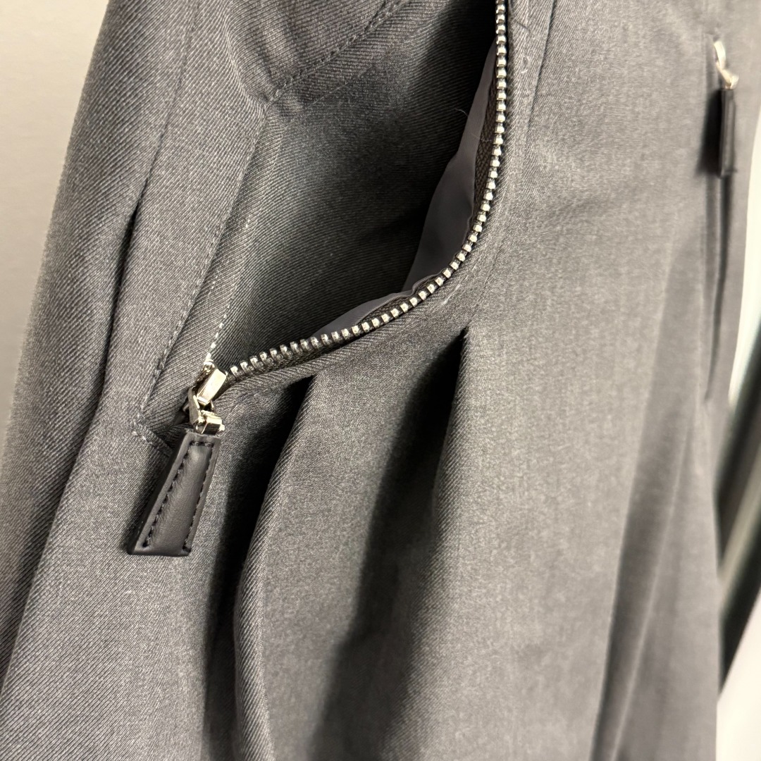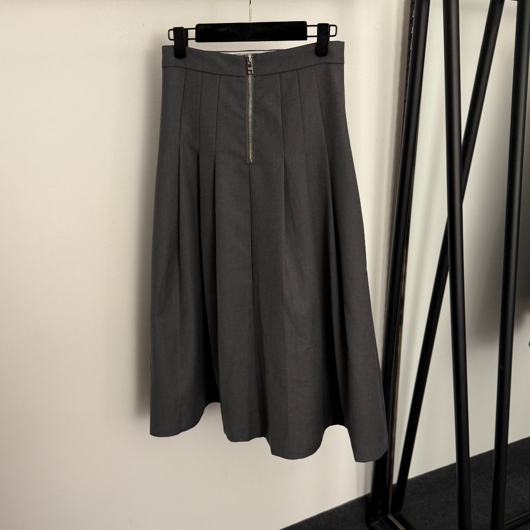 Details: New logo triangular-label zippered high-waisted suit skirt in gray and black, size M. High-end customization, fine workmanship