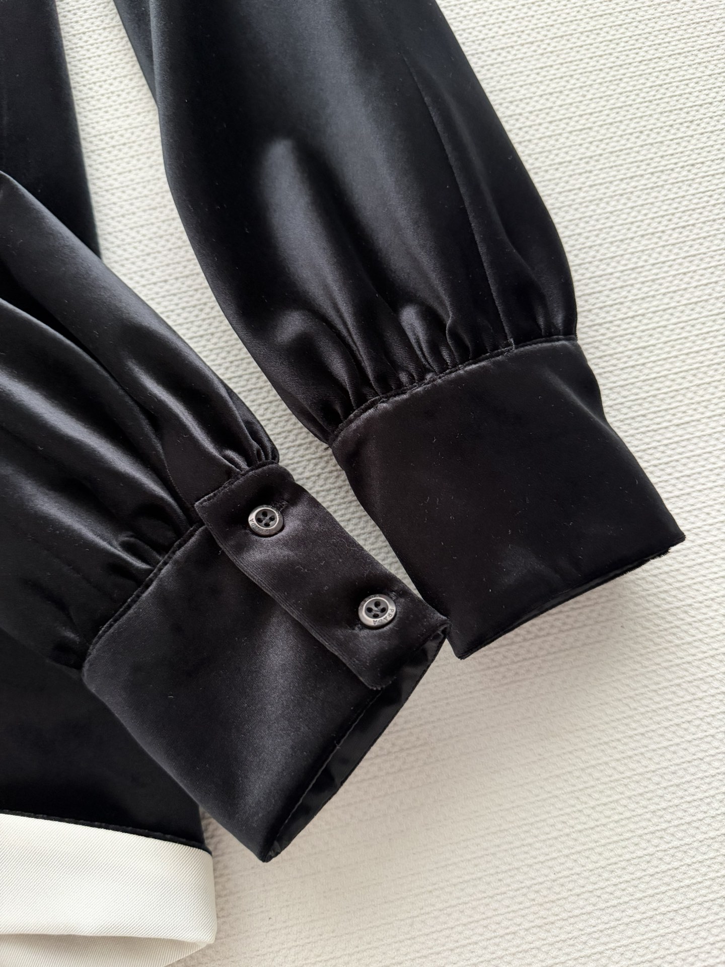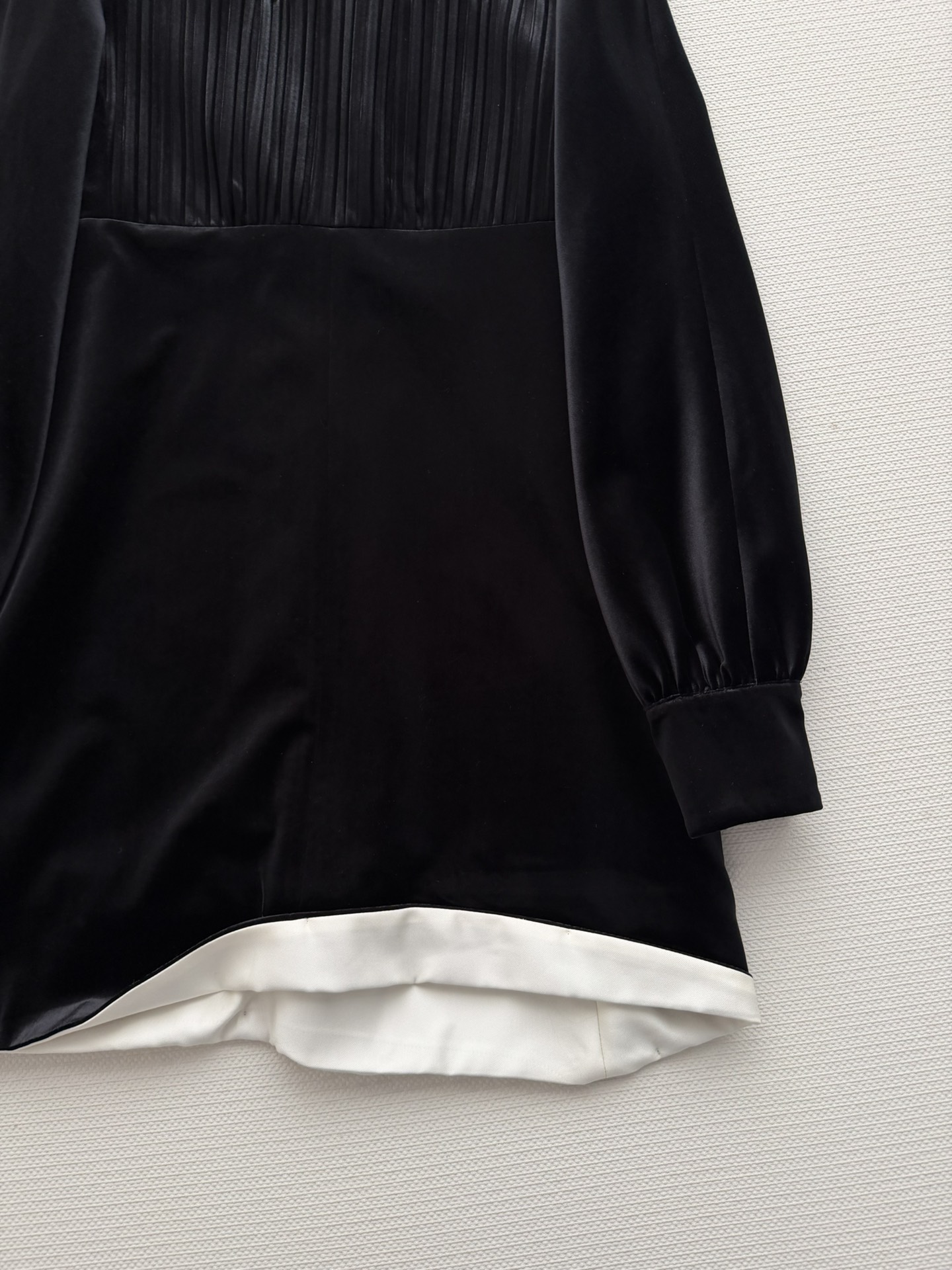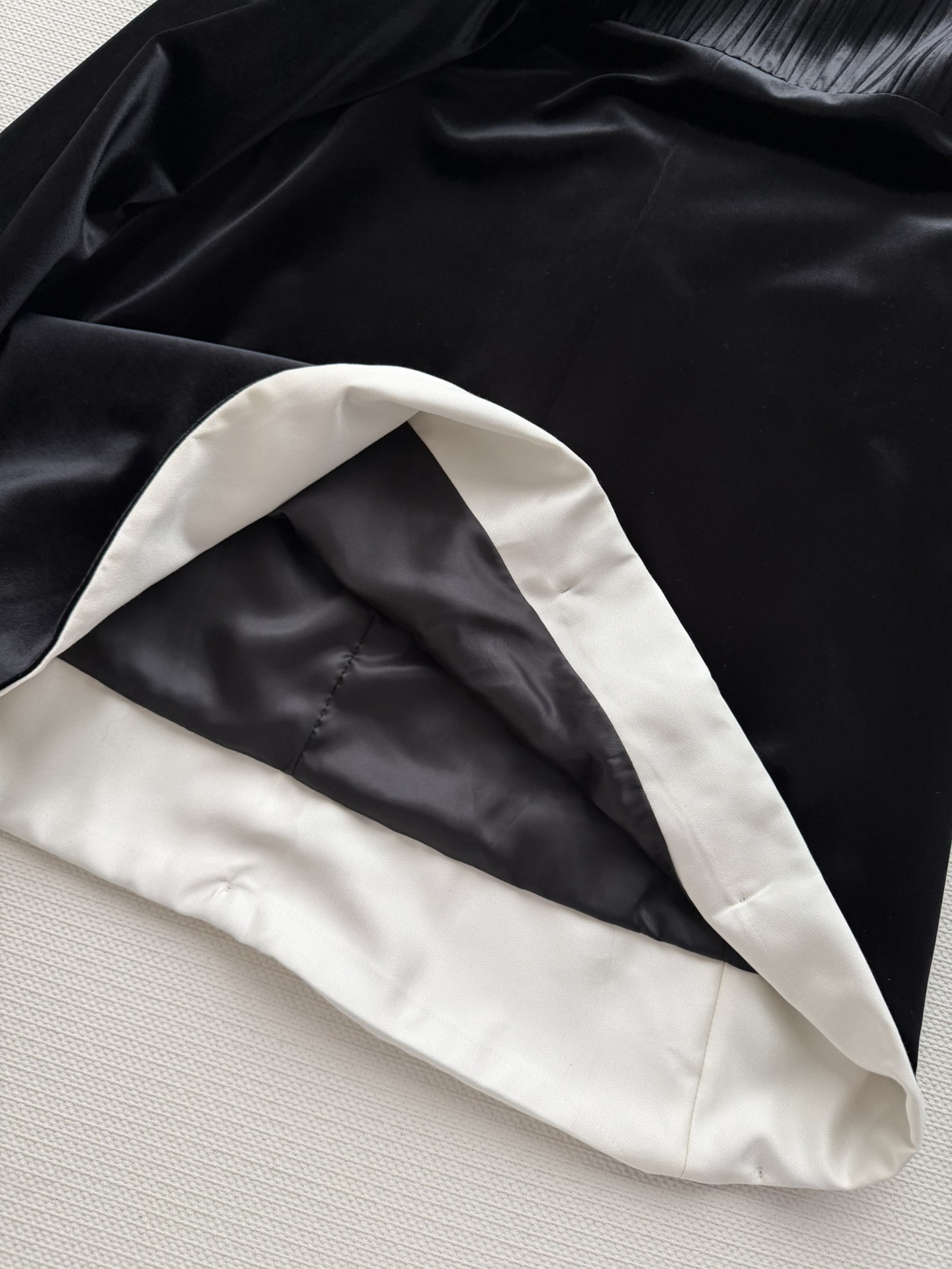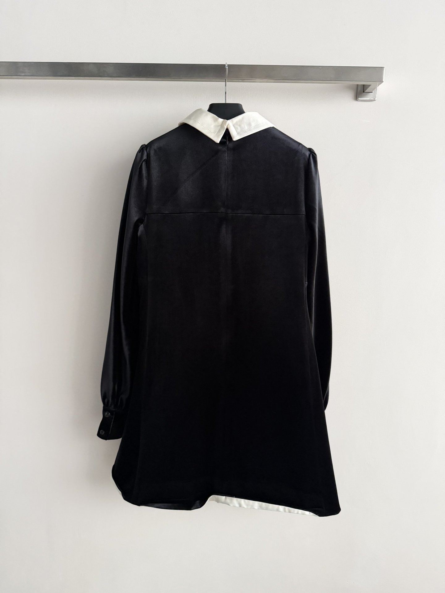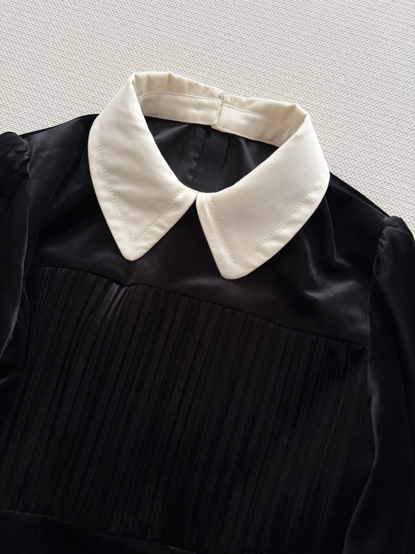 Details: A silk velvet dress with a white doll collar and a ruffled lining, elegant and suitable for formal events