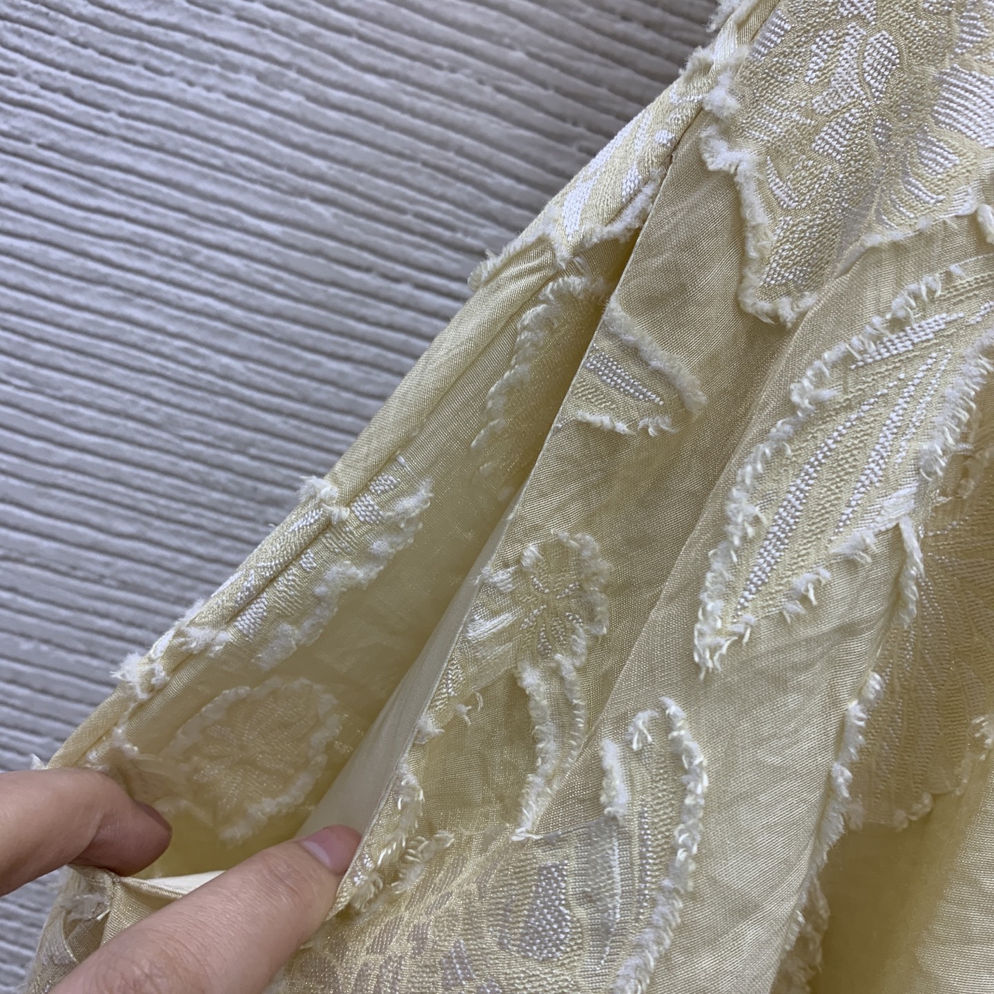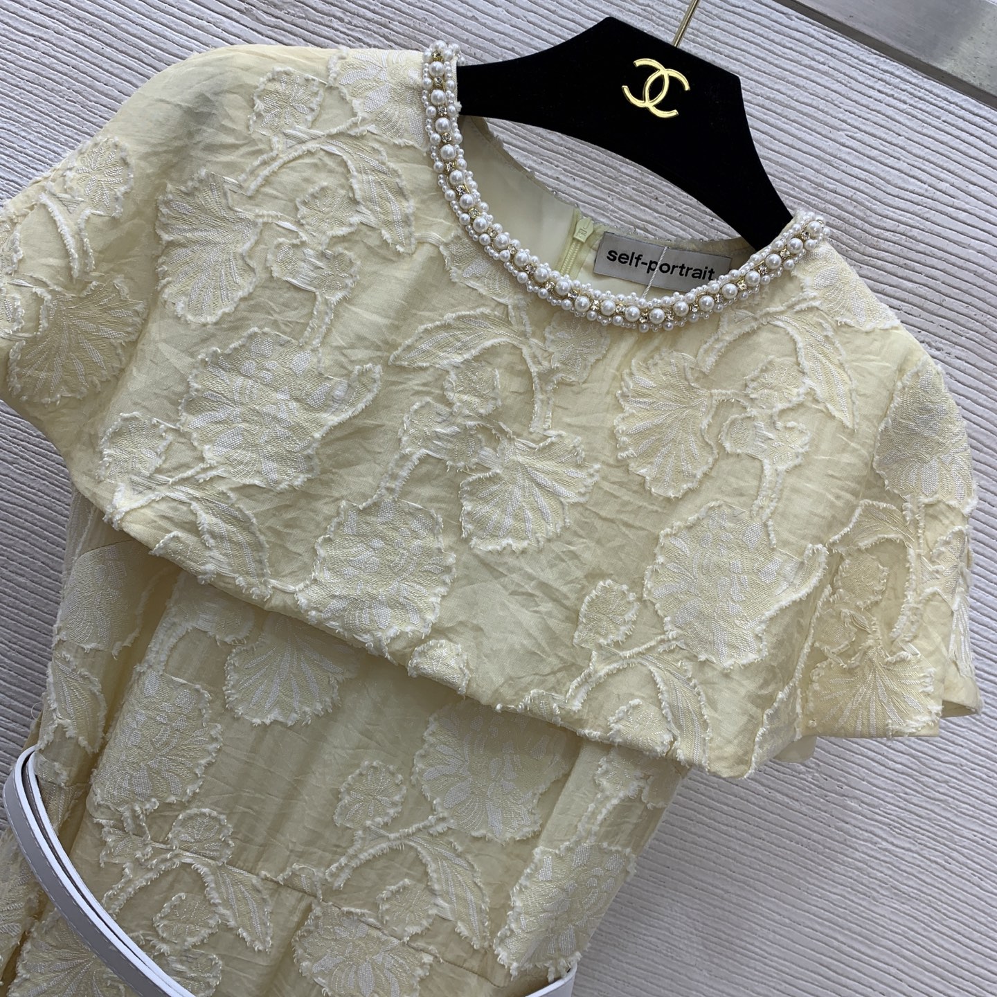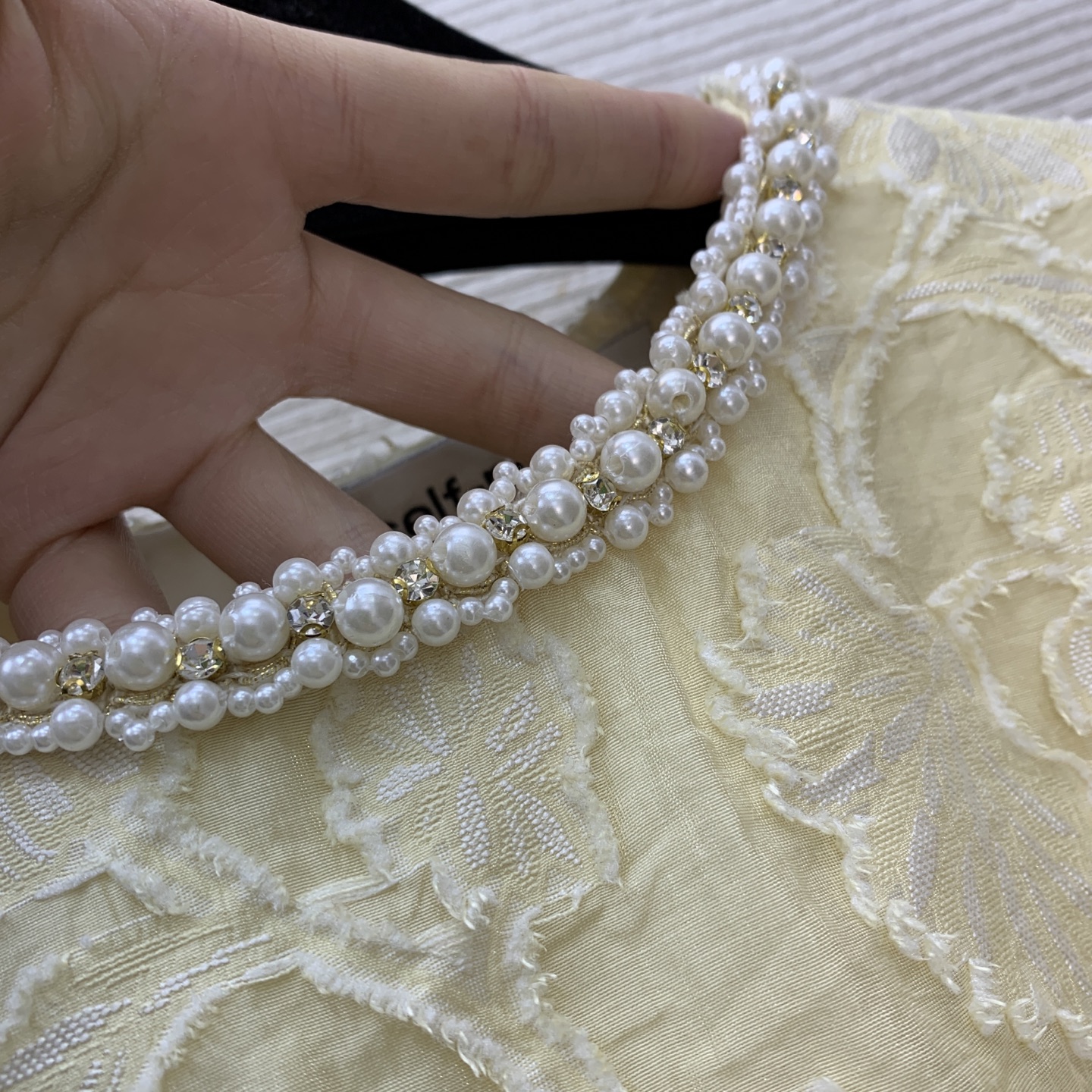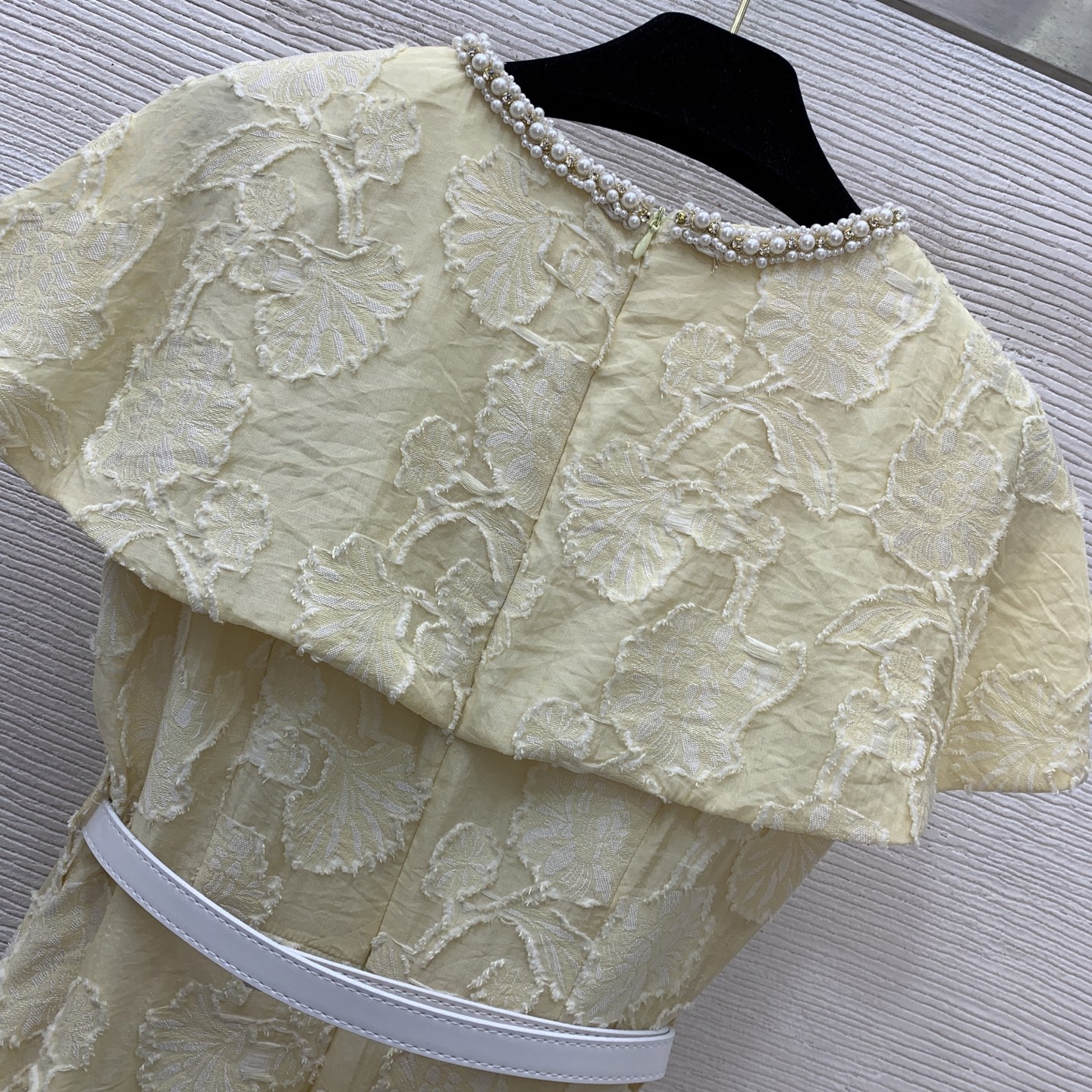 Details: New long dress in yellow & pink, size M. With a diamond - embellished collar and waist - cinching design.