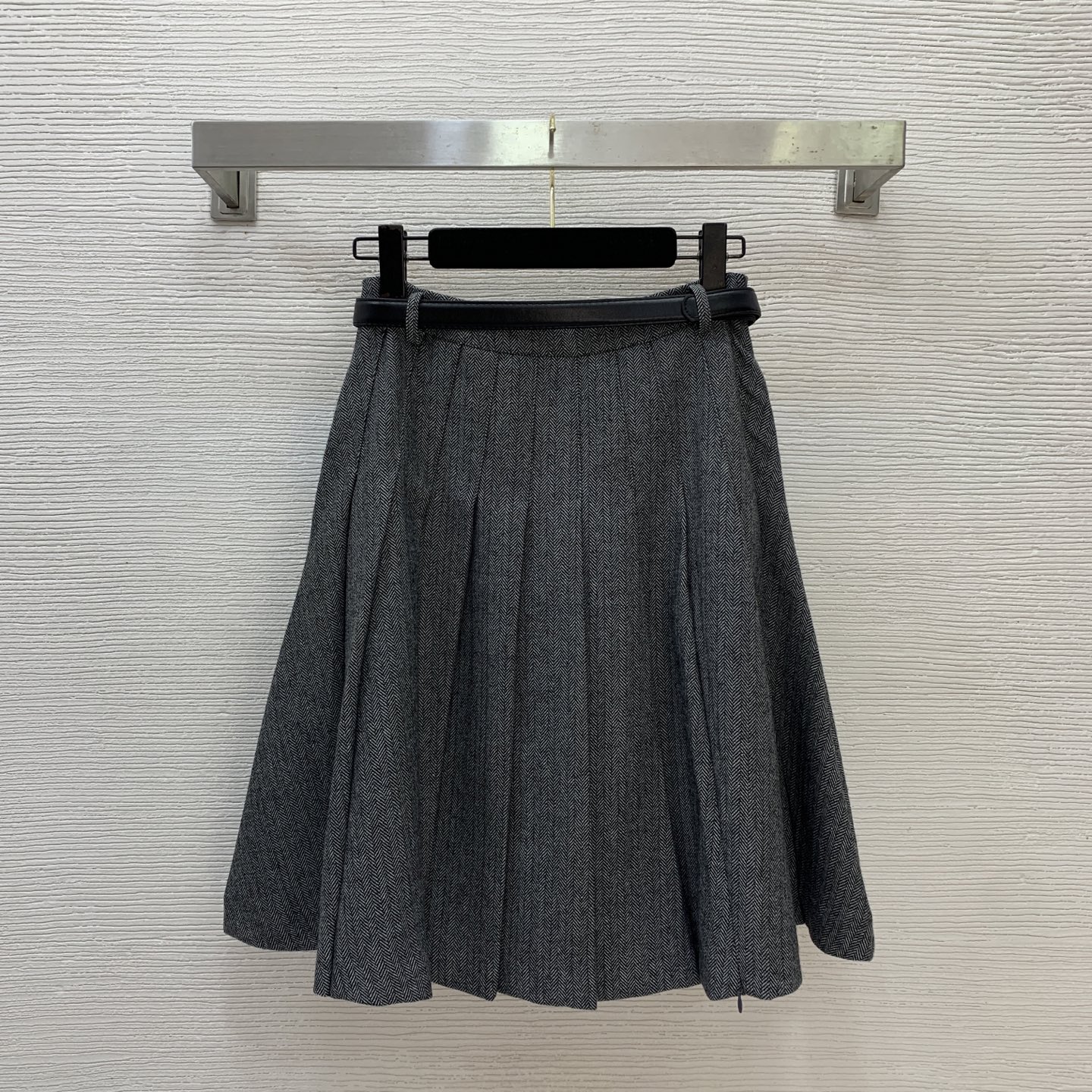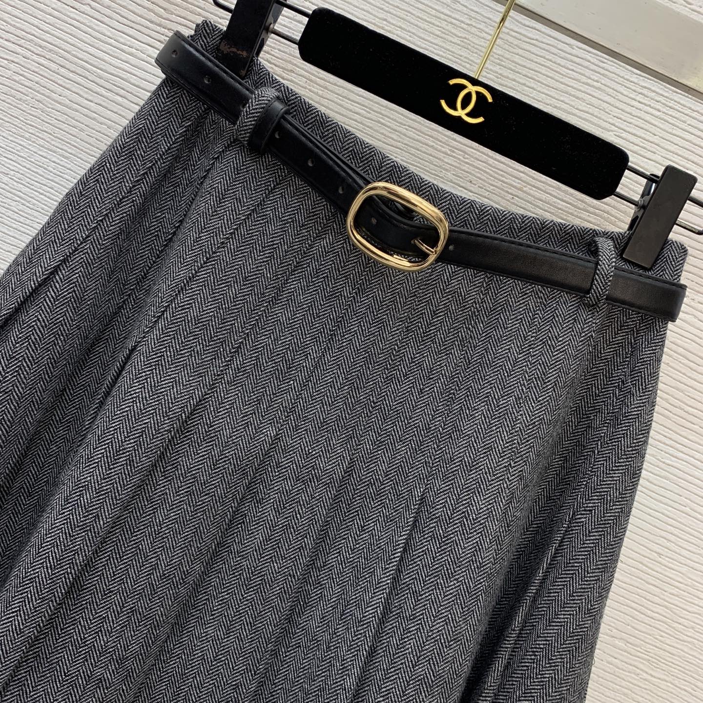 Details: Elegant mid-length pleated skirt with belt, size M. High-end custom, fine workmanship