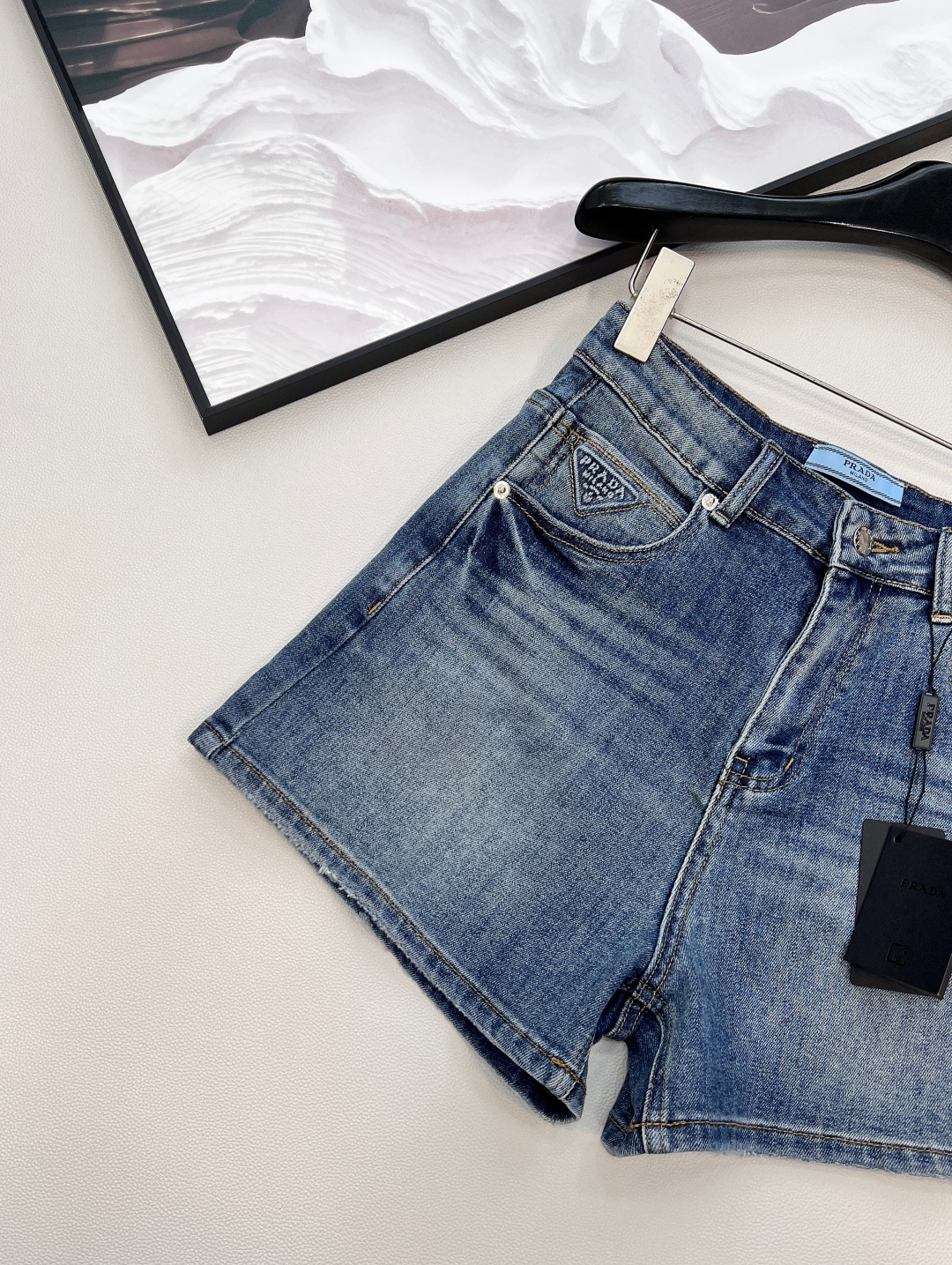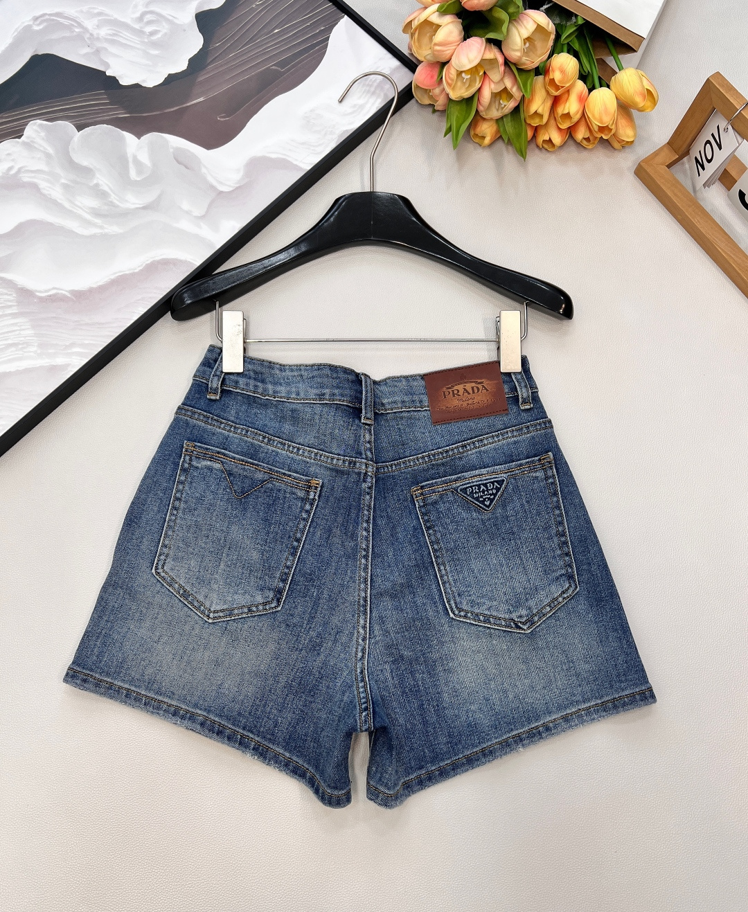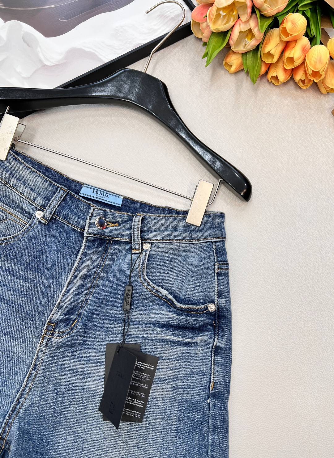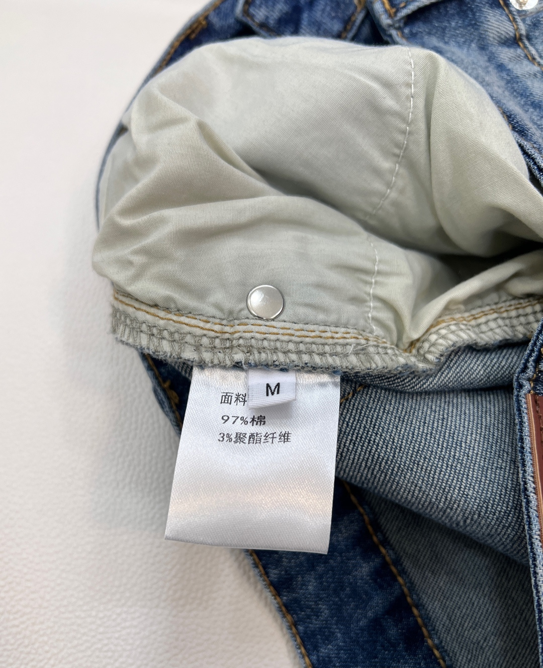 Details: Jeans with logo pocket and triangle mark, flattering fit, high - end customization, fine workmanship