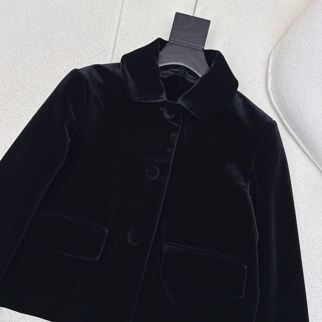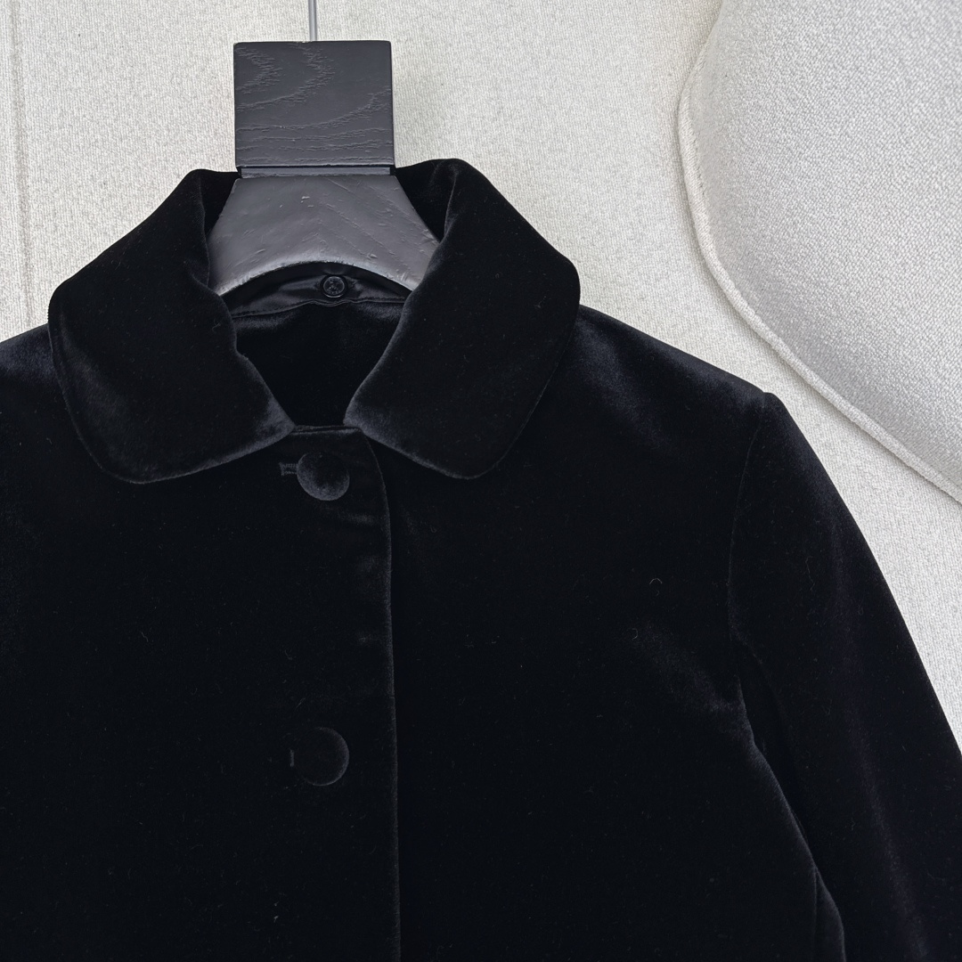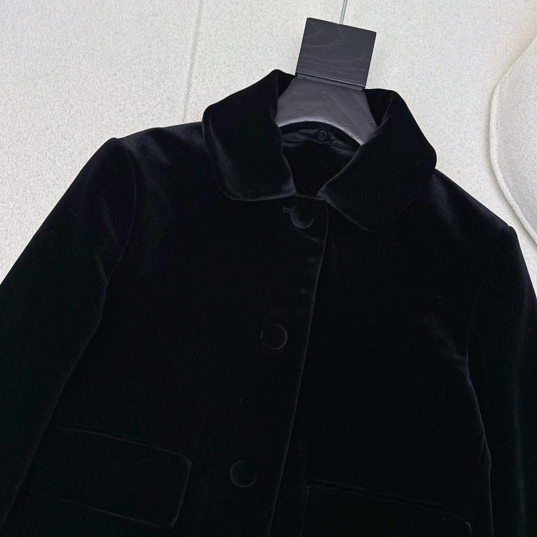 Details: Fashionable and warm velvet coat with a charming doll collar. Elegant design that flatters the figure, crafted from high-quality fabric.