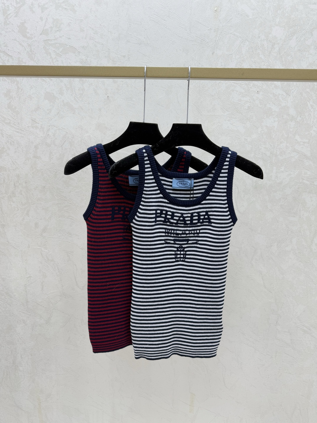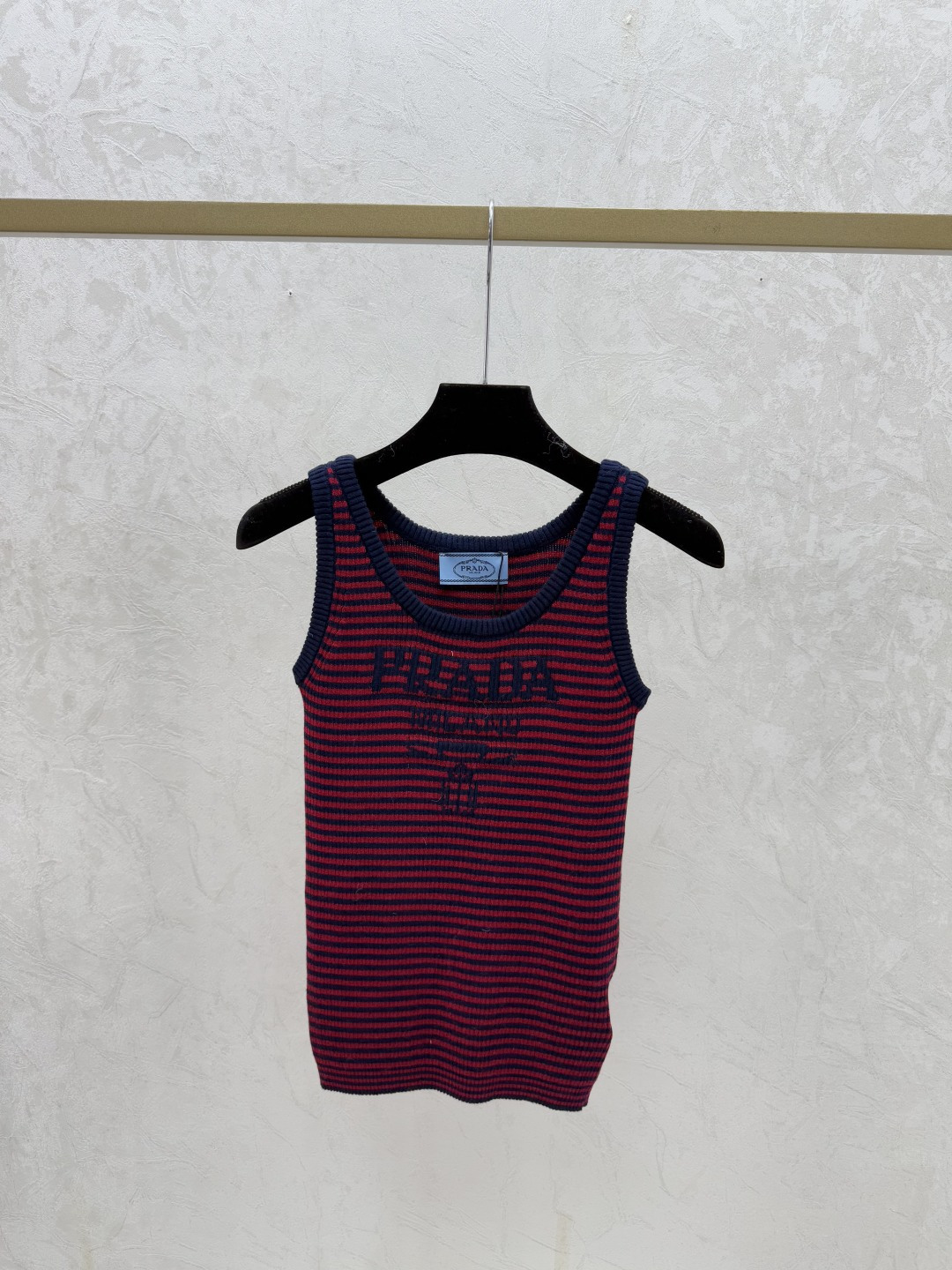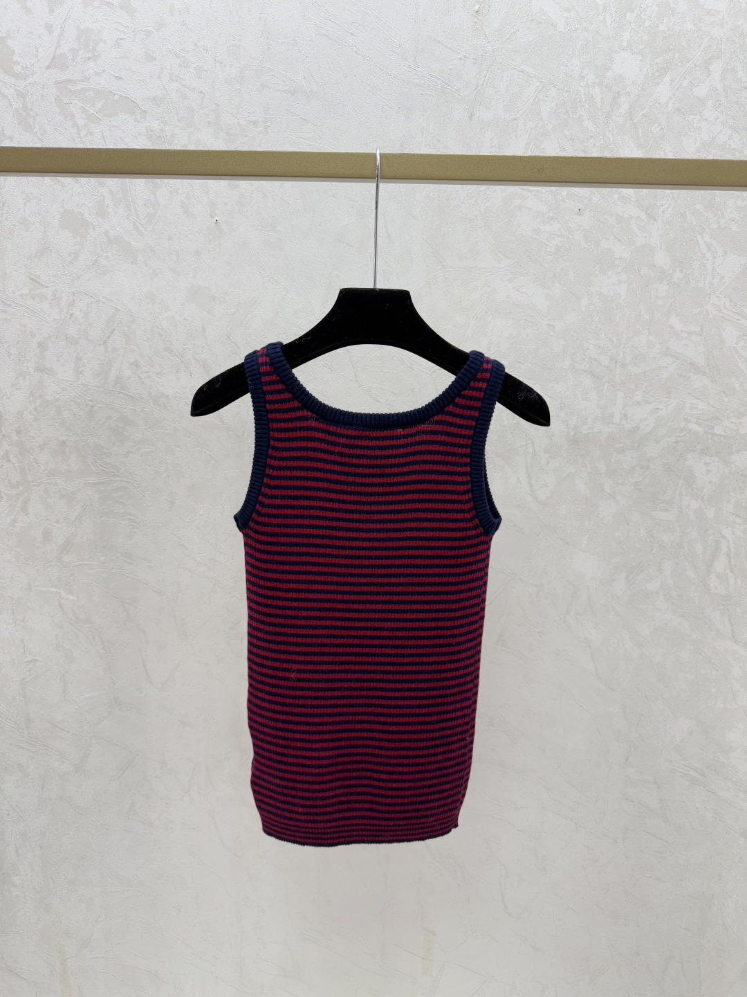 Details: Early Spring Striped Round-neck Knitted Vest with Color Blocks in Royal Blue and Red.