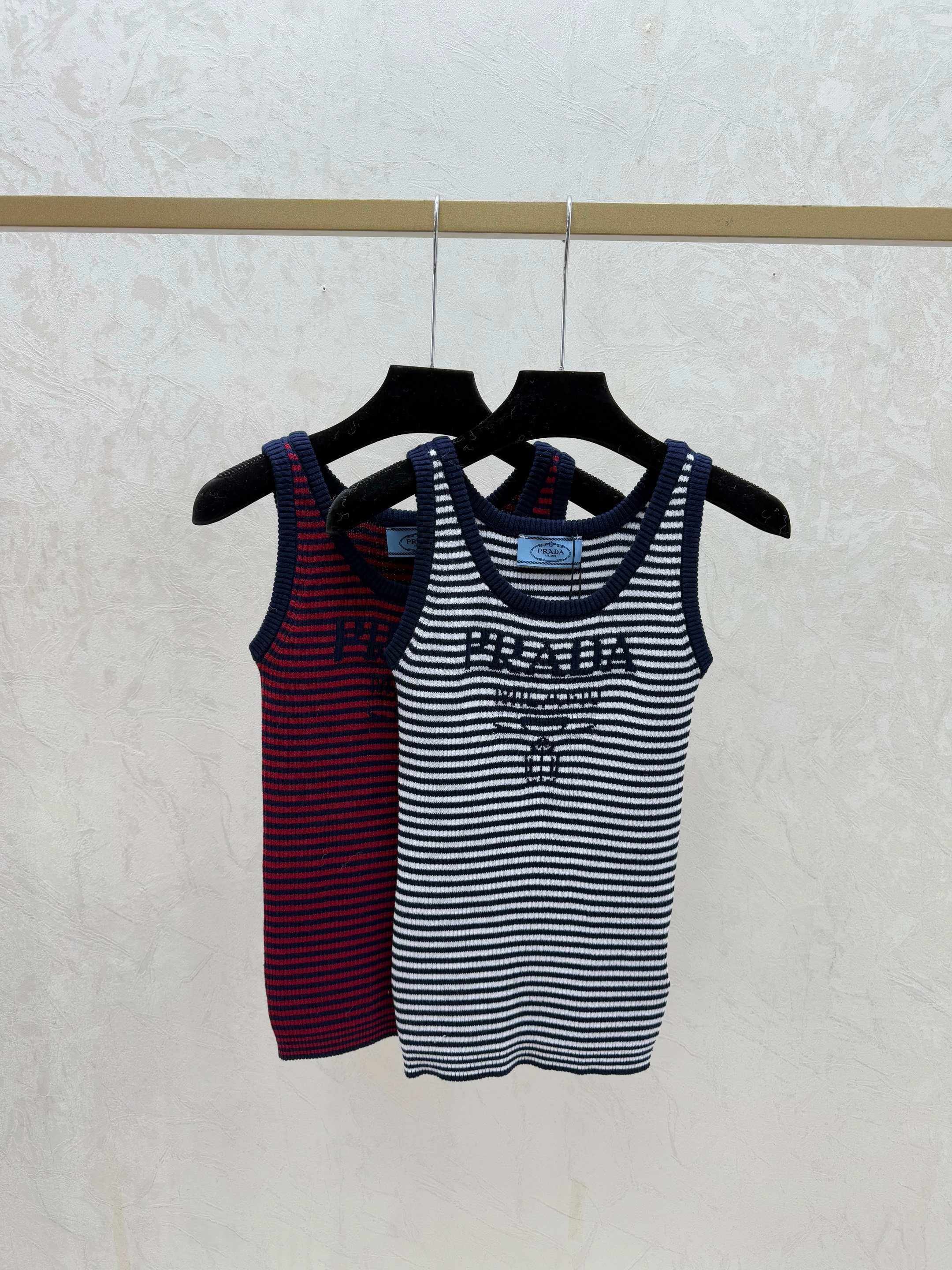 Details: Early Spring New Style: Color-block Striped Round-neck Knitted Vest in Royal Blue and Red.