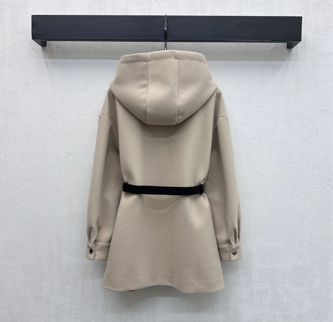 Details: Hooded Belted Woolen Coat, Elegant, Suitable for Commute. High-end Custom, Fine Workmanship