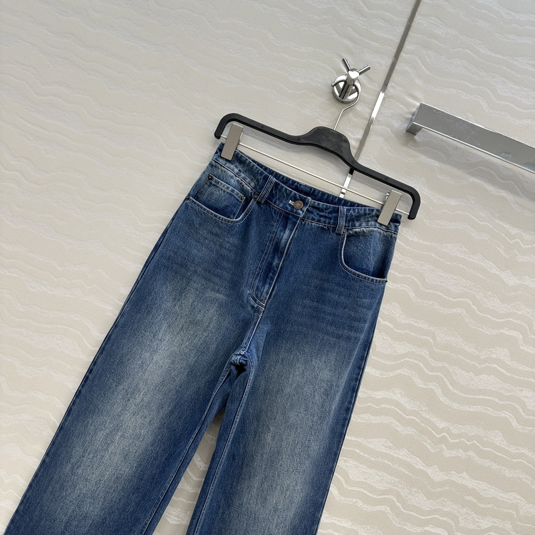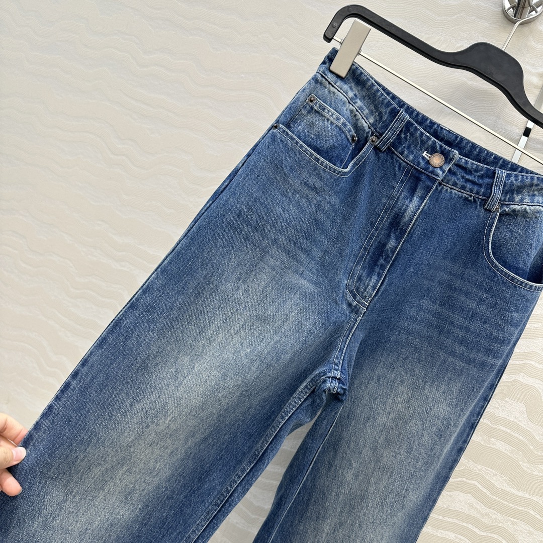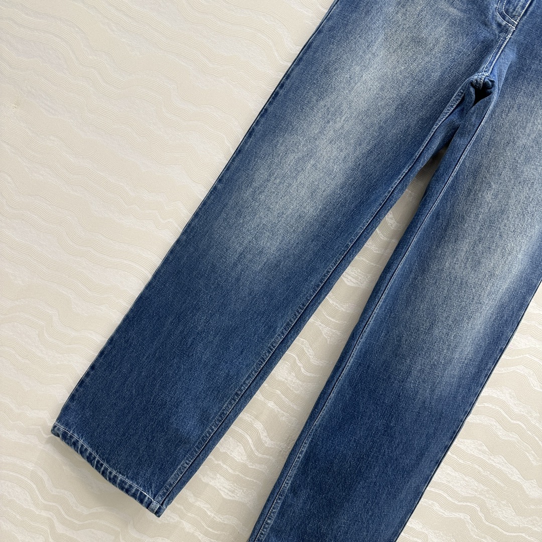 Details: Exclusive denim pants, enzyme-washed, straight-leg, lengthening and slimming. High-end customization, fine workmanship