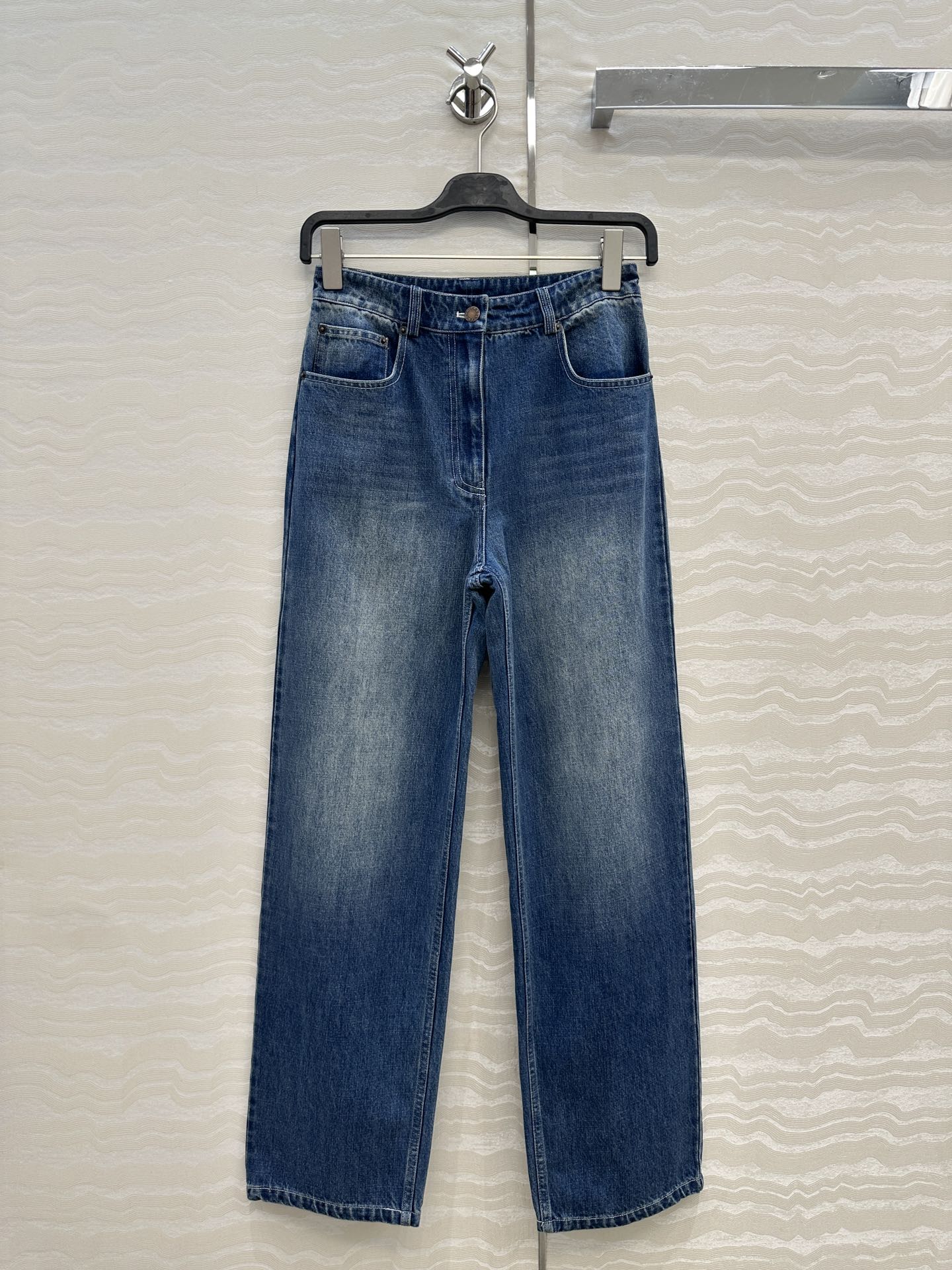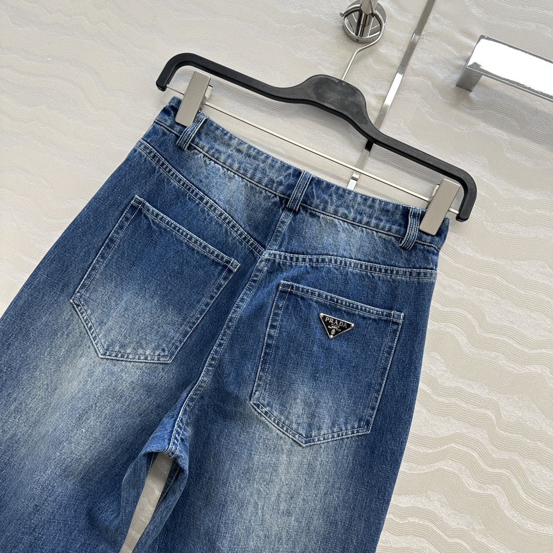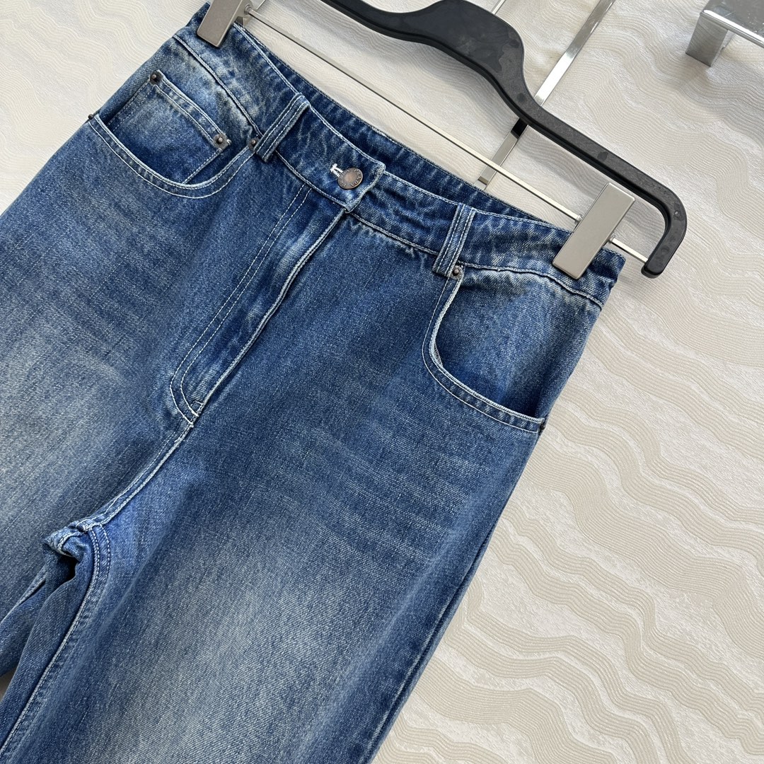 Details: Exclusive denim pants, enzyme-washed, straight-leg, lengthening and slimming. High-end customization, fine workmanship