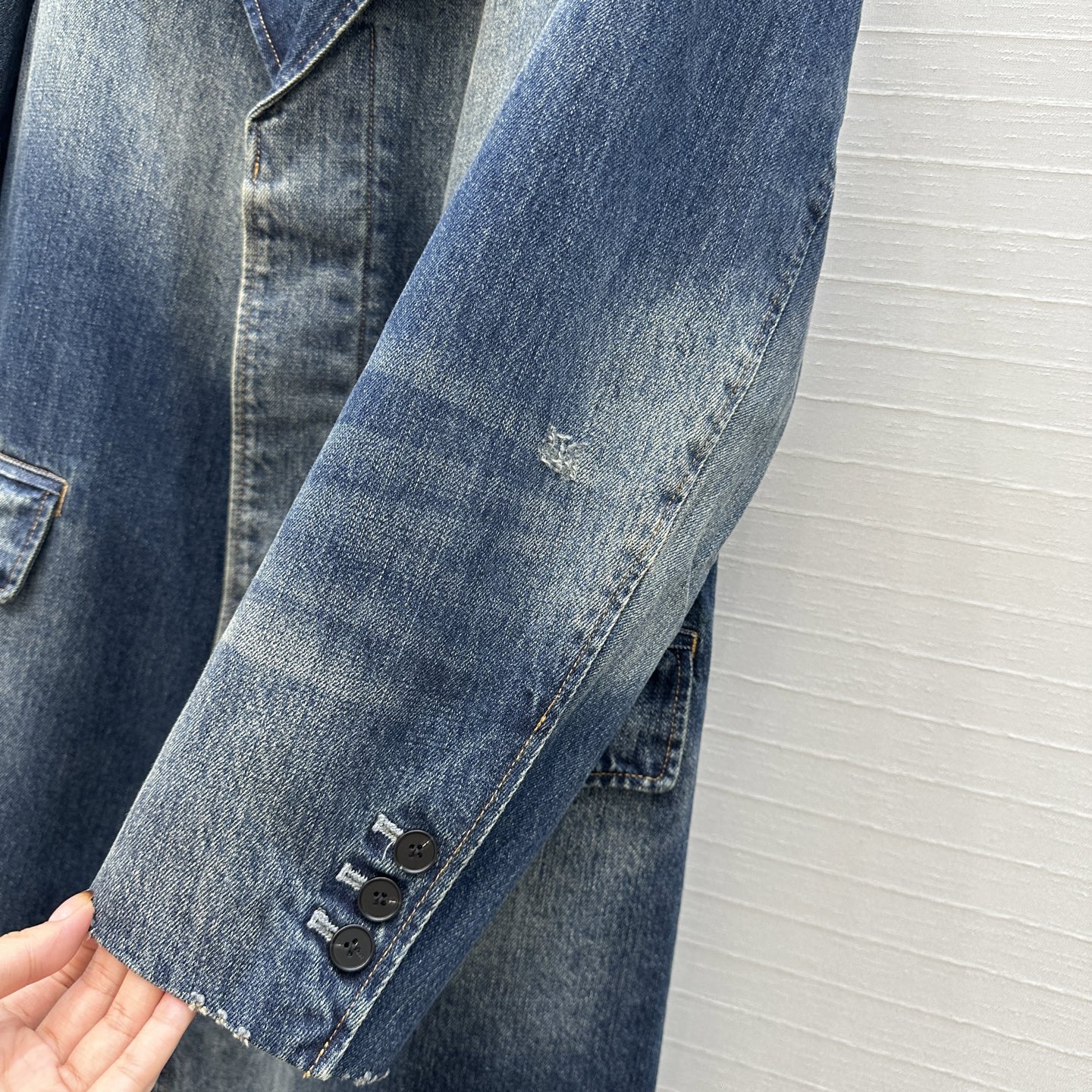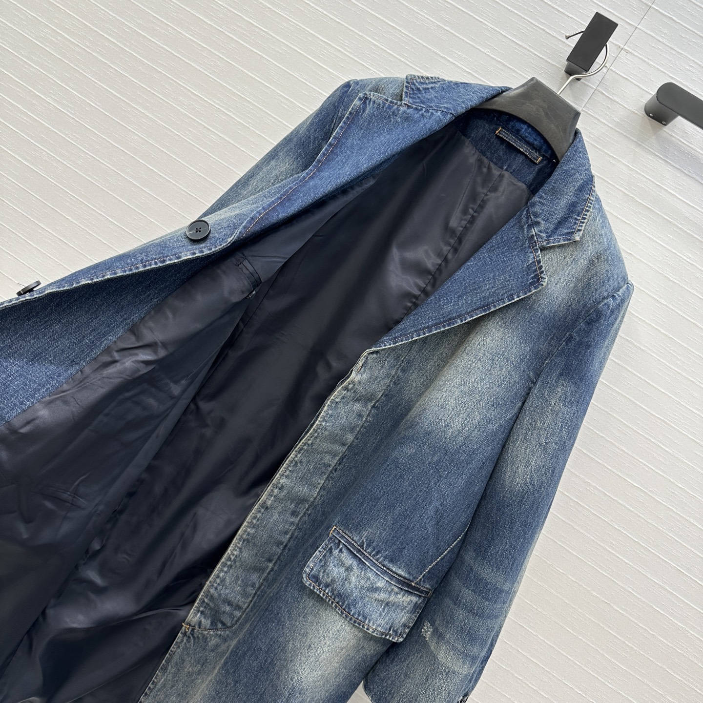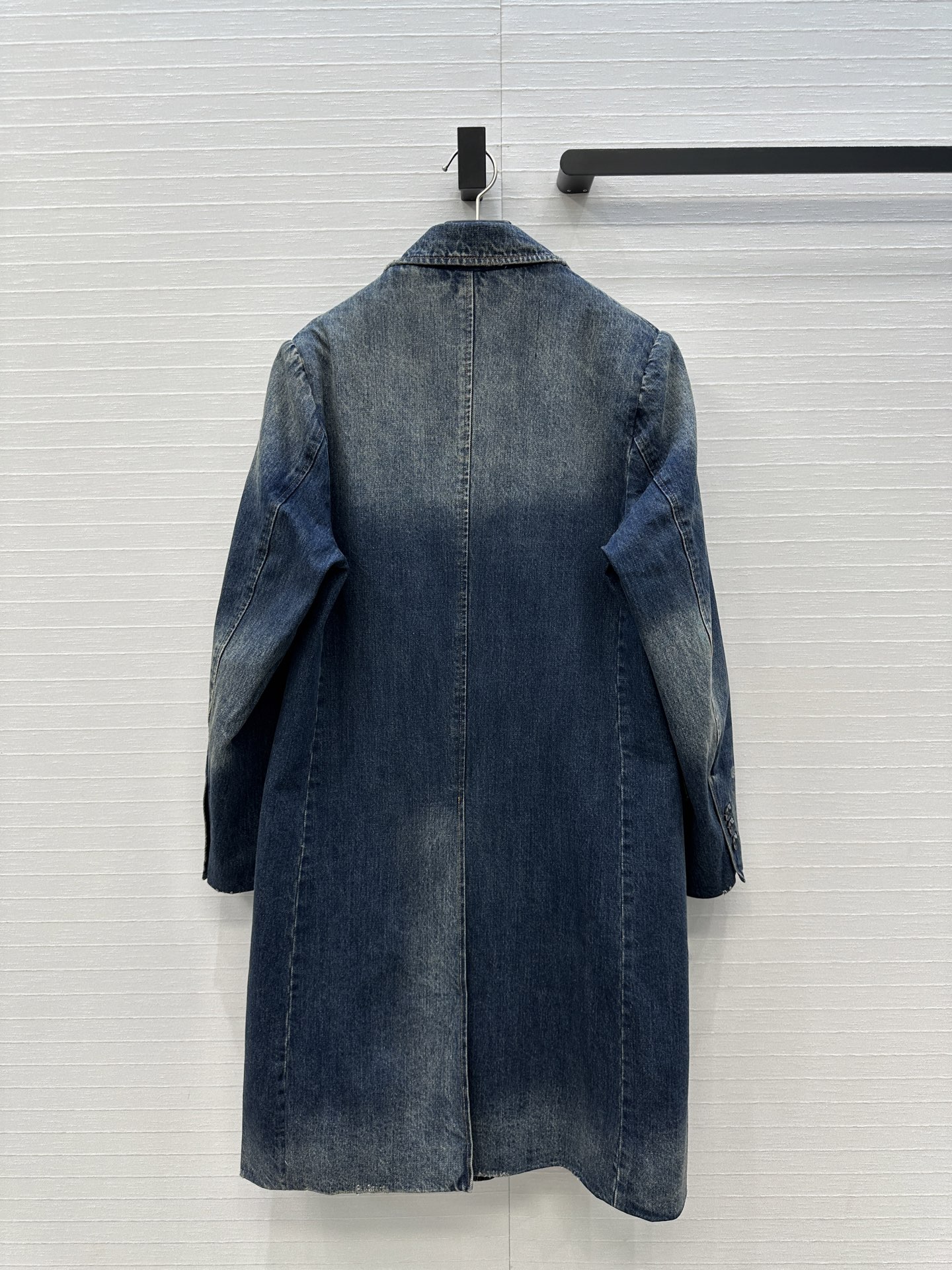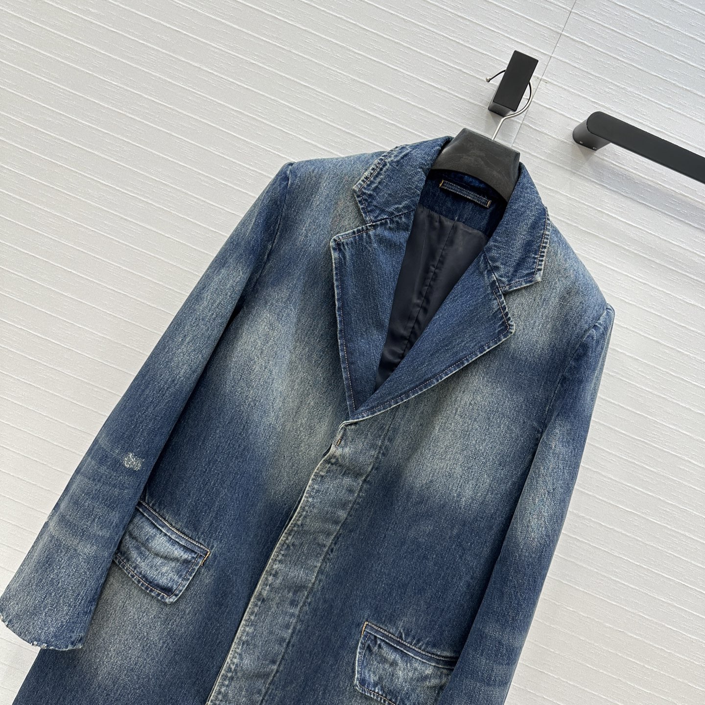 Details: Long denim blazer, H - shape, 3D cut, imported denim, sleek and fashionable