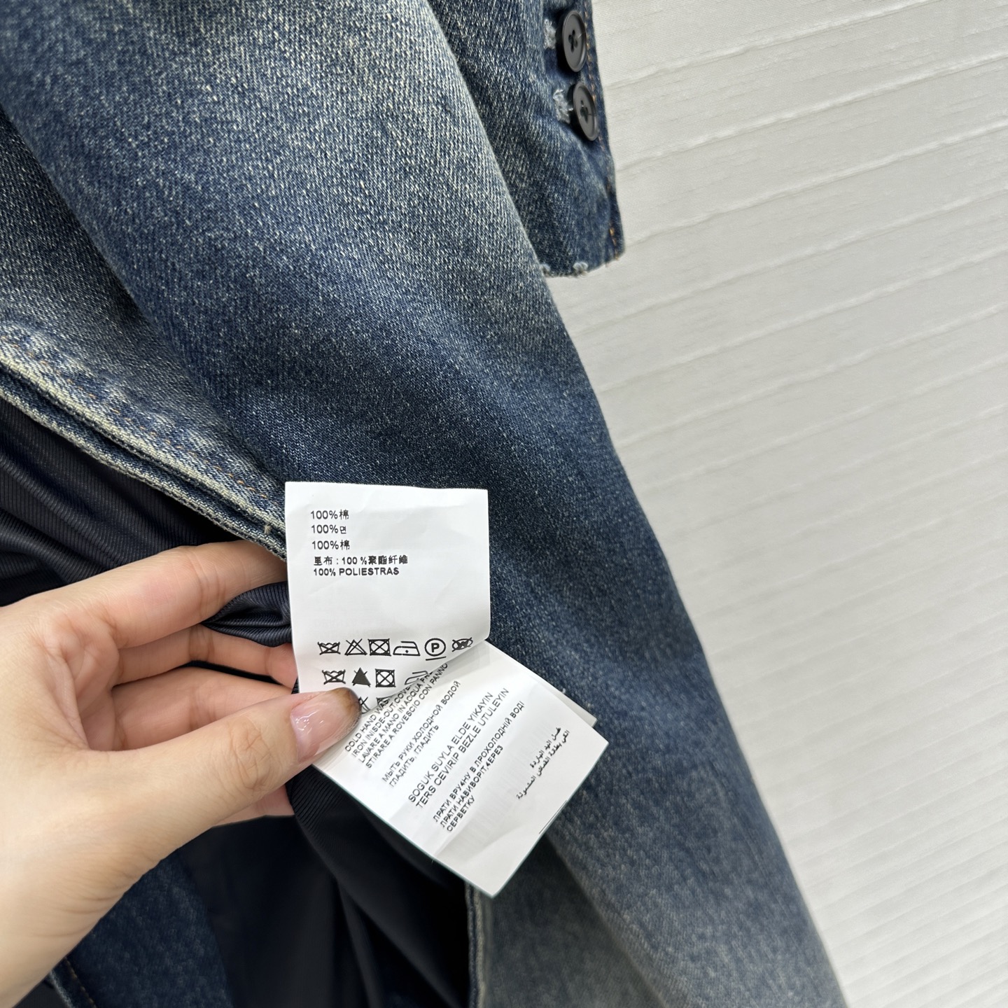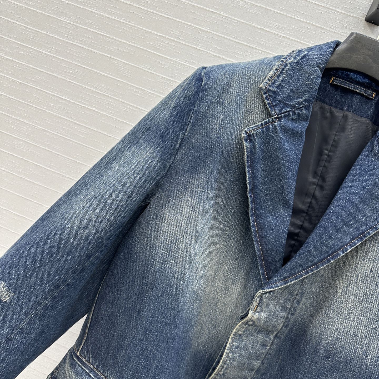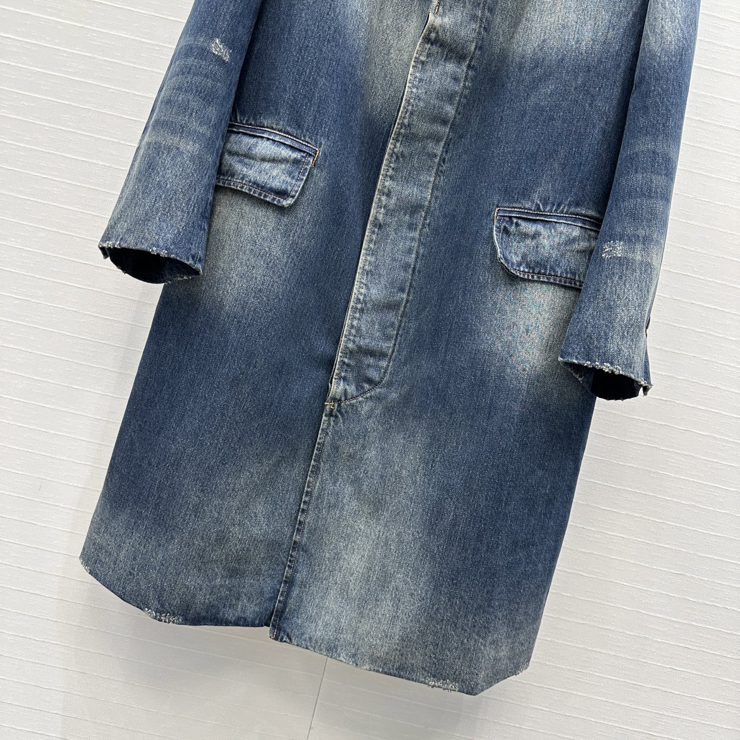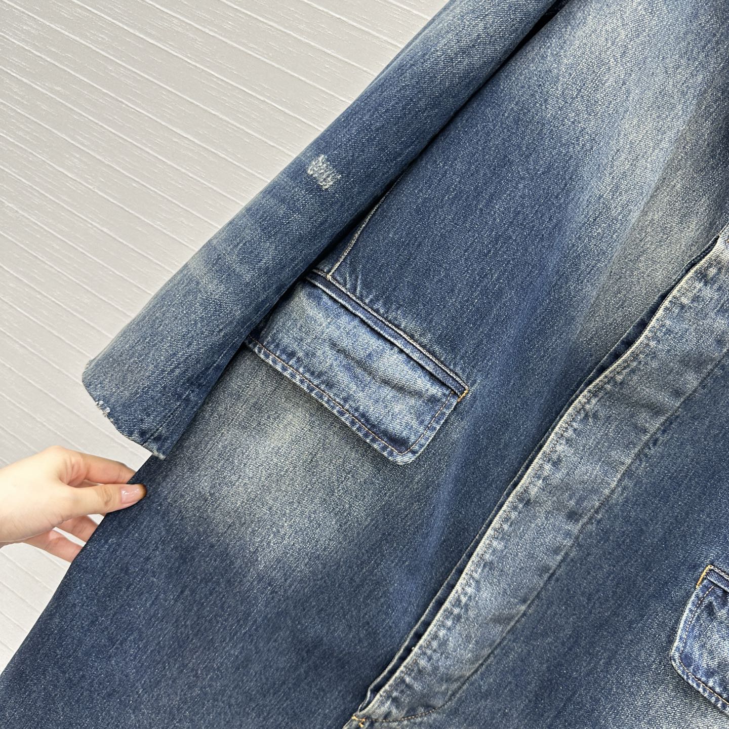 Details: Long denim blazer, H - shape, 3D cut, imported denim, sleek and fashionable