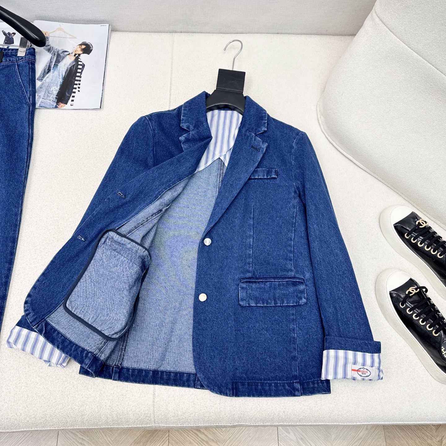 Prada Denim Suit with Leather Belt Decoration